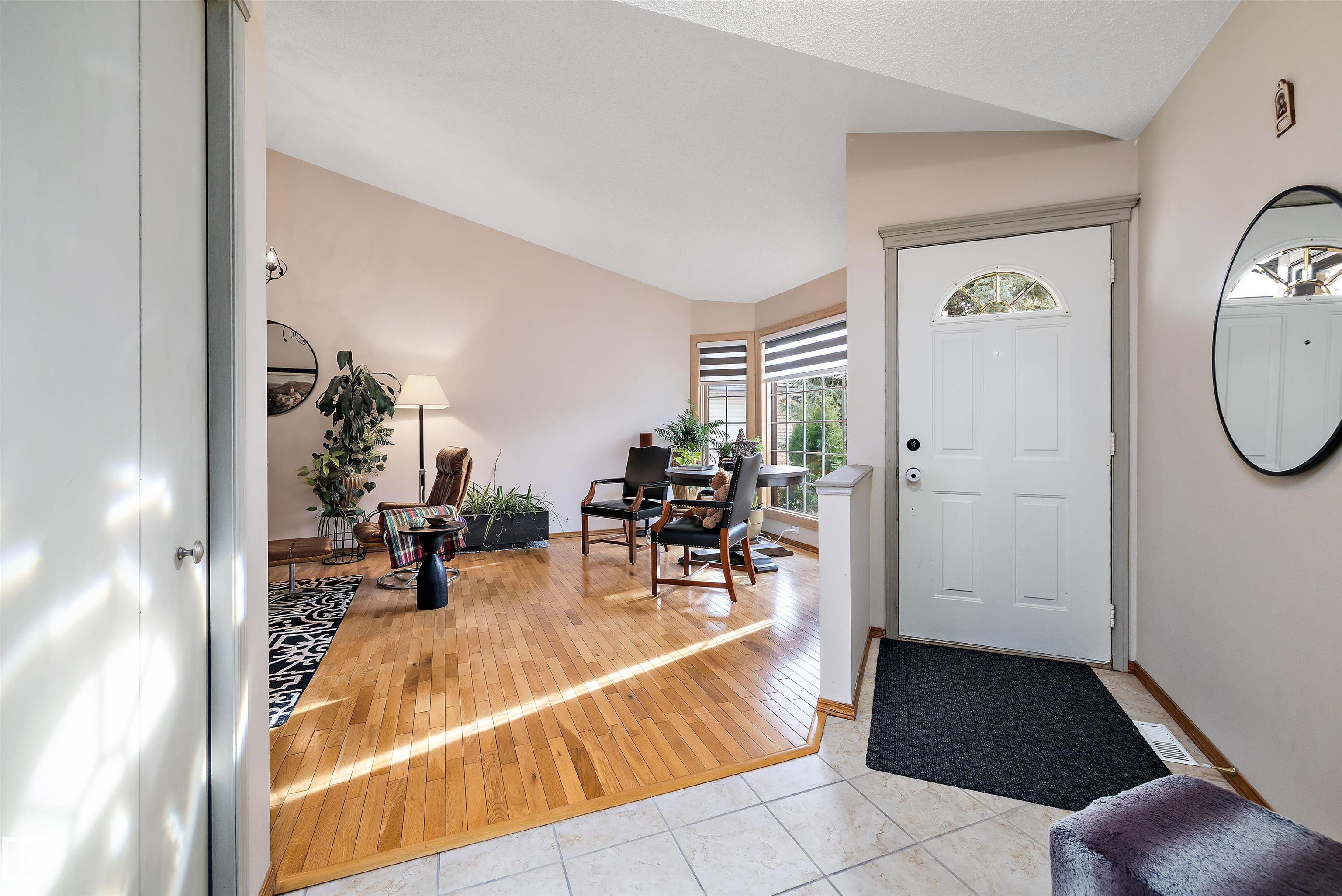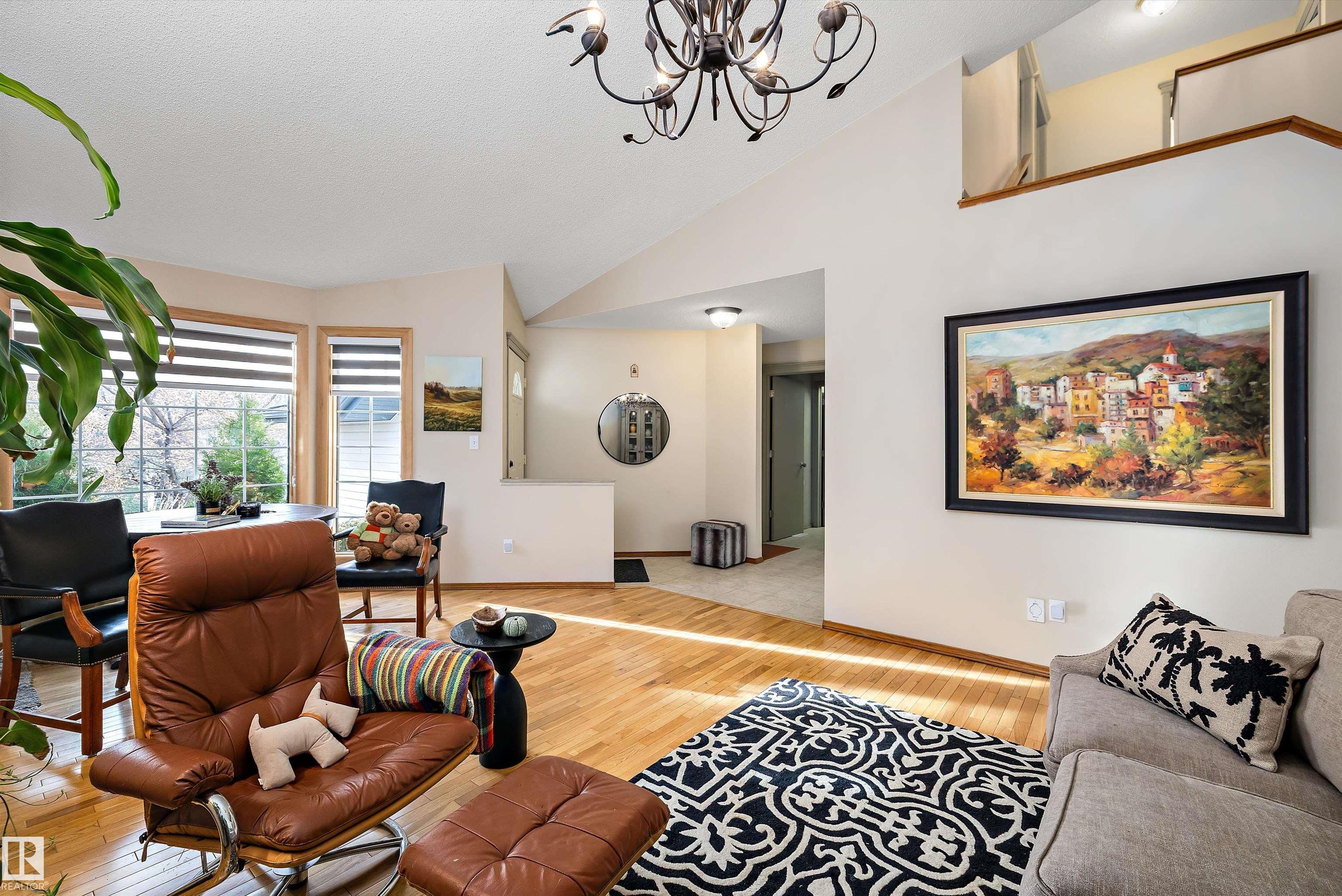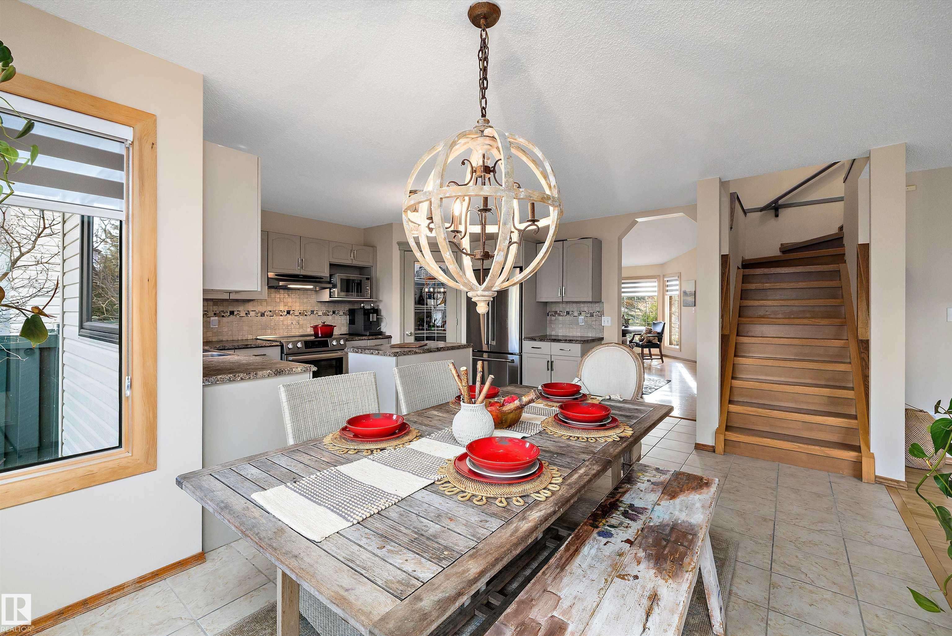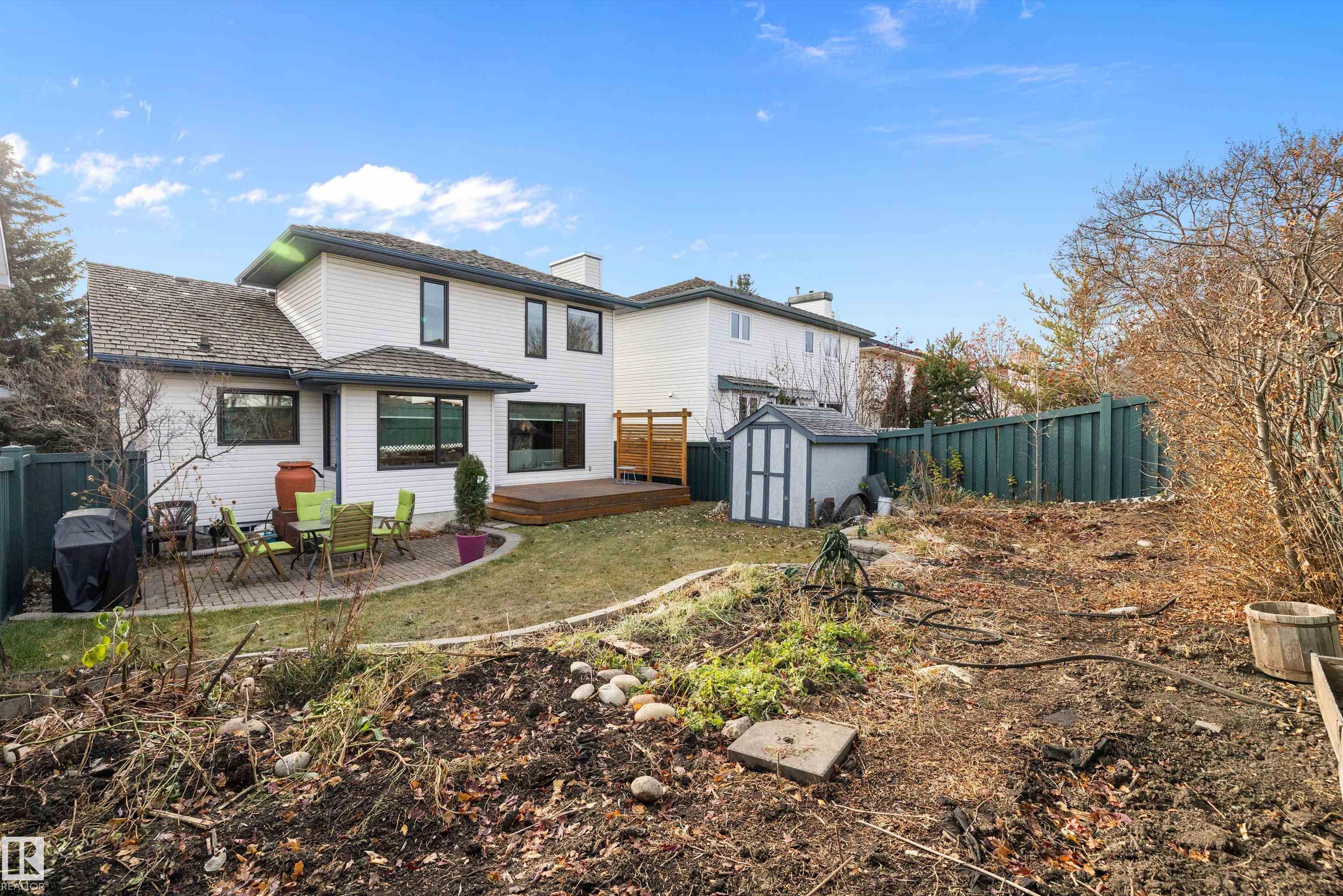 RARE OPPORTUNITY IN WEDGEWOOD! Elegant 2-storey, 4-bedroom home with timeless design, abundant natural light, a serene setting in a safe no-thru-traffic community near the Henday. Vaulted ceilings and new windows brighten living and dining areas; kitchen features updated cabinetry and SS appliances overlooking a cozy family room with a heart of the house gas fireplace. Upstairs: primary suite with his & hers walk-in closets and 4-pc ensuite, two bedrooms and full bath. Finished basement offers a large rec area, guest bedroom, and 3-pc bath. Outdoors: mature trees, newer cedar deck with pergola, cobblestone patio, and stone landscaping. Upgrades include Lux aluminum fir clad triple-pane windows (22k 2024), Fireplace Xtrordinair w/ cast-ironed doors (9k 2020), cedar deck (2022), granite countertops in bathrooms (2022), fridge (2024), and HWT (2017). Steps to Wedgewood Ravine and central park with courts, playgrounds, and trails--a well-cared-for home in one of SW Edmonton's most desirable communities!