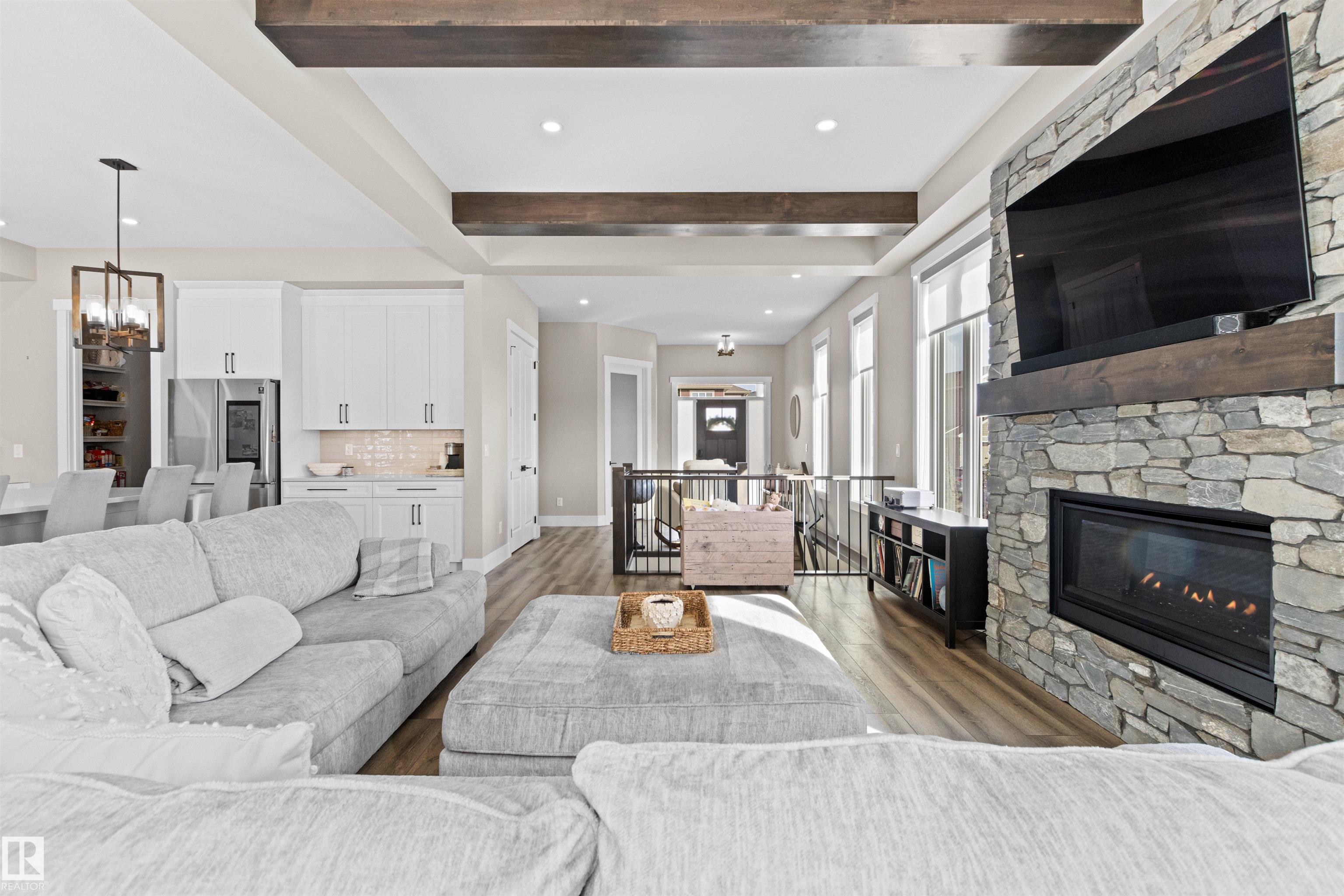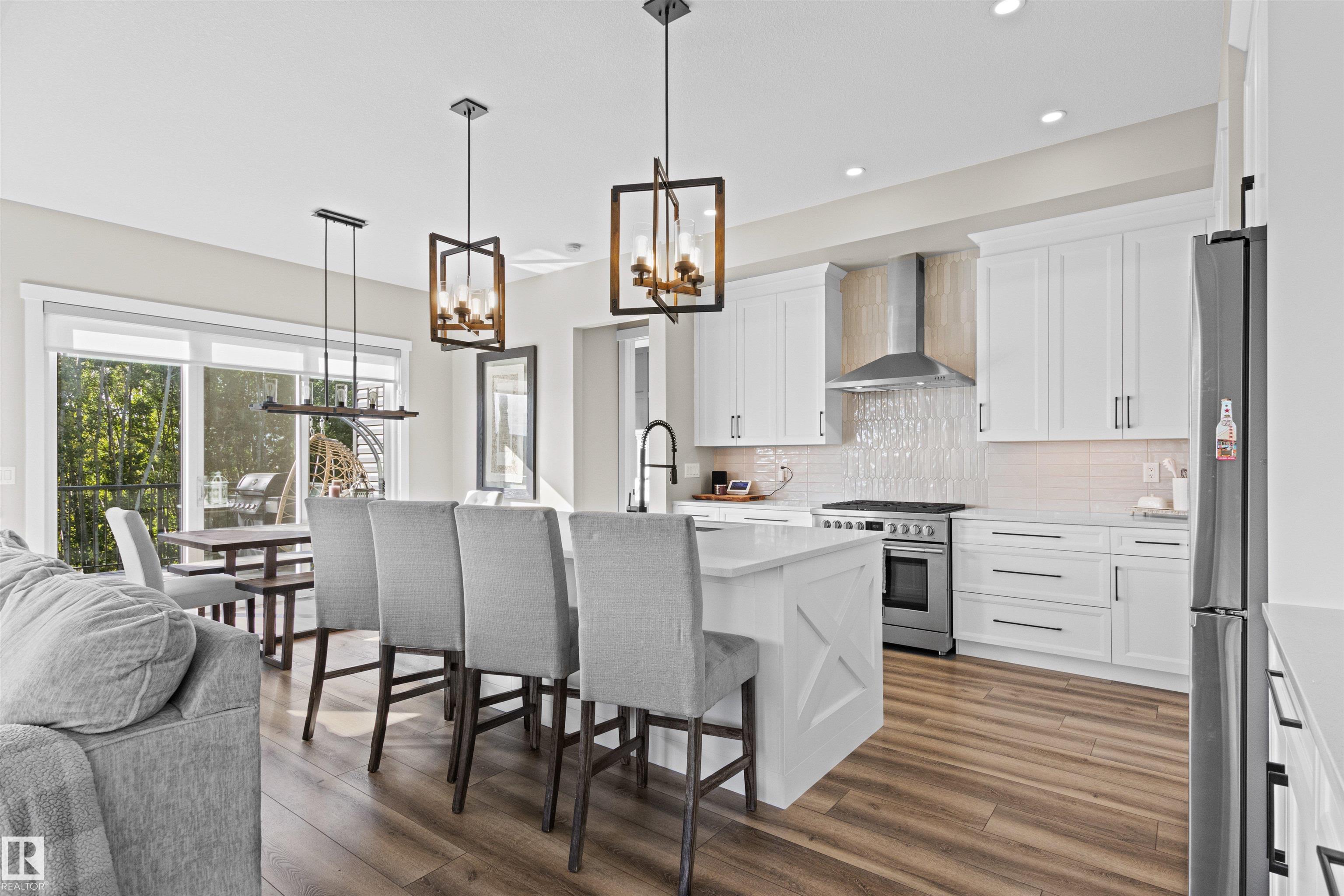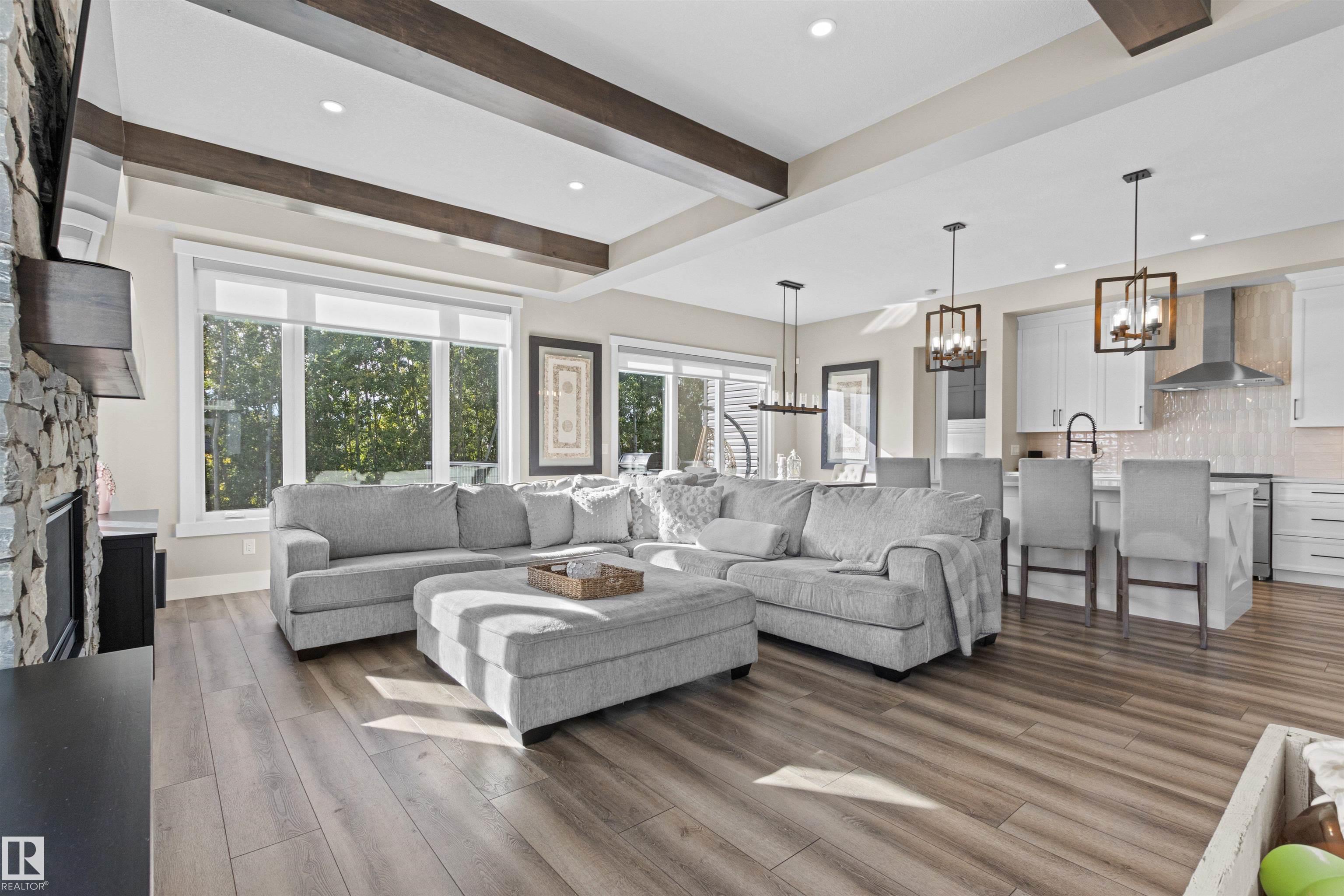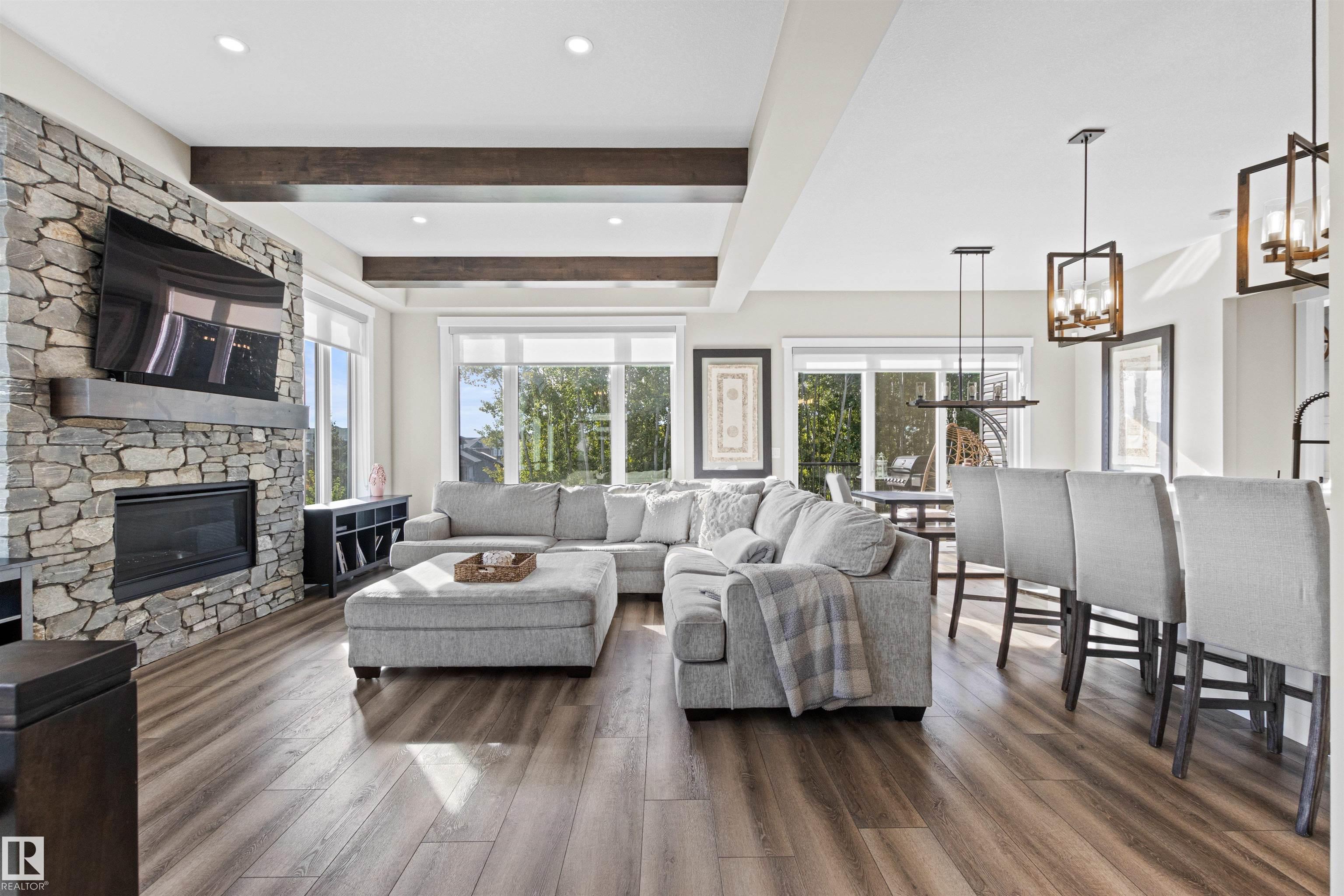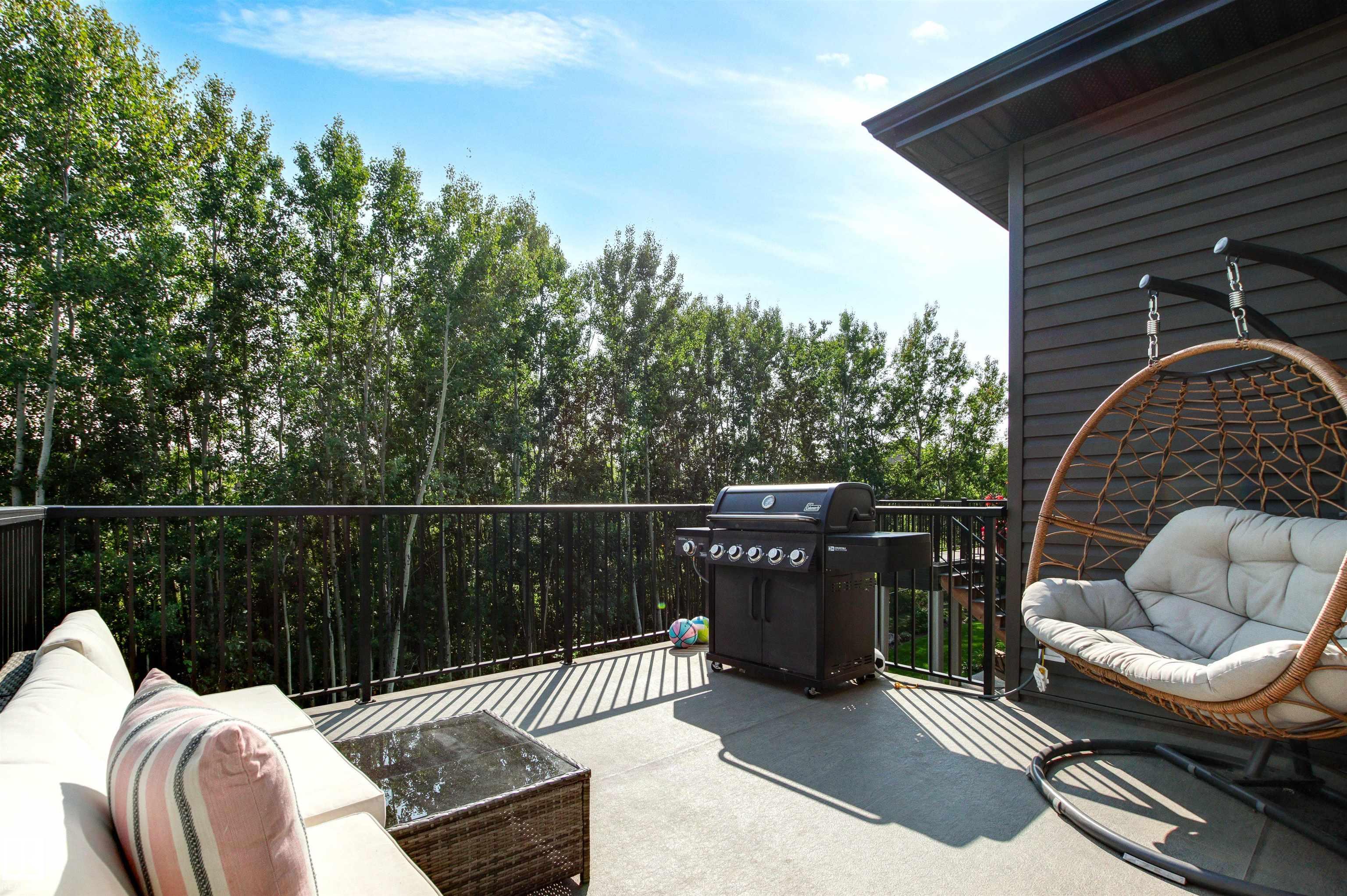 Spectacular WALK-OUT bungalow backing on private greenspace & siding walking trail. This 4 yr old home was masterfully built by AR Homes. The open concept Living/Dining/Kitchen offers soaring 10ft ceilings & is flooded w/ natural light from all the windows from the South & East - not to mention the stunning private views. The exquisite kitchen features large eat-up island, quartz counters, abundance of white cabinetry, undercabinet lighting, showstopper 36" gas range plus huge walk-through pantry with standup freezer & microwave. The main level also boasts a stunning Primary Suite w/ an ensuite anyone can relax in. You can also enjoy the added convenience of access to the laundry room through the walk-through closet plus an additional den. The lower level features in-floor heating, 9ft ceilings, a huge rec room with another gas fireplace plus wetbar, 2 large bedrooms, another full bath & den/flex room. The triple attached garage is heated, has polyaspartic floors, drain & cold water faucet. Shows 10+