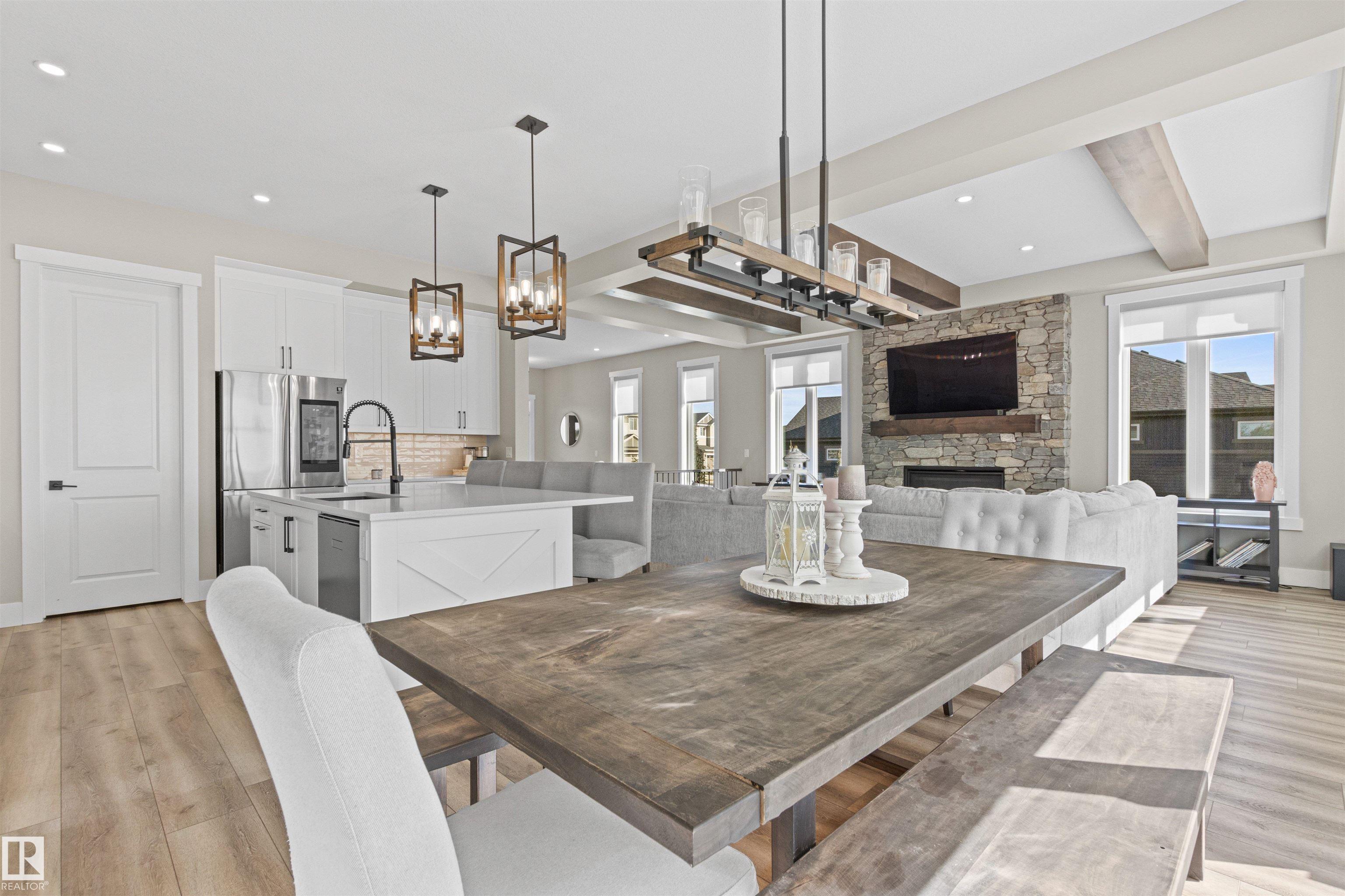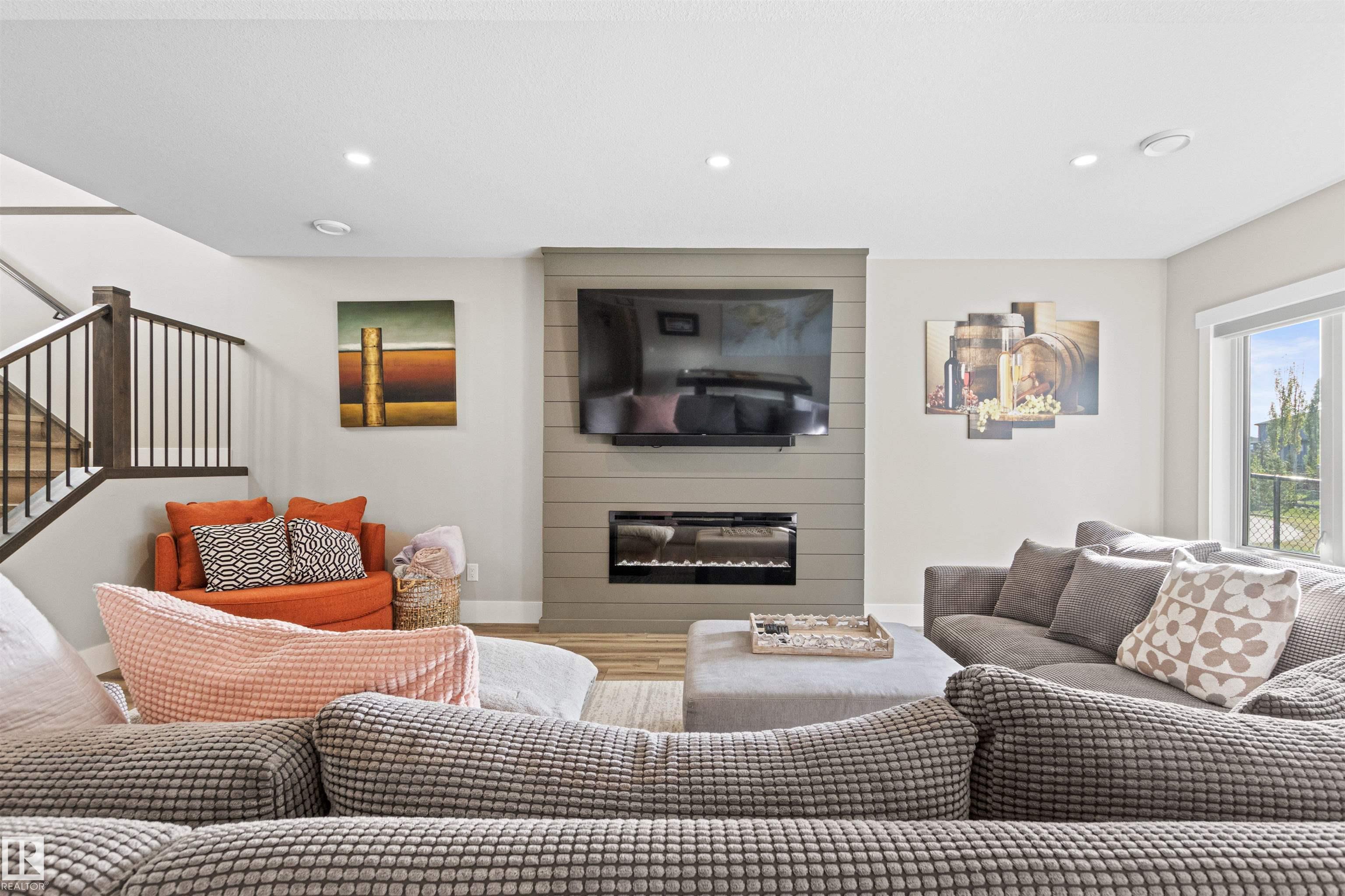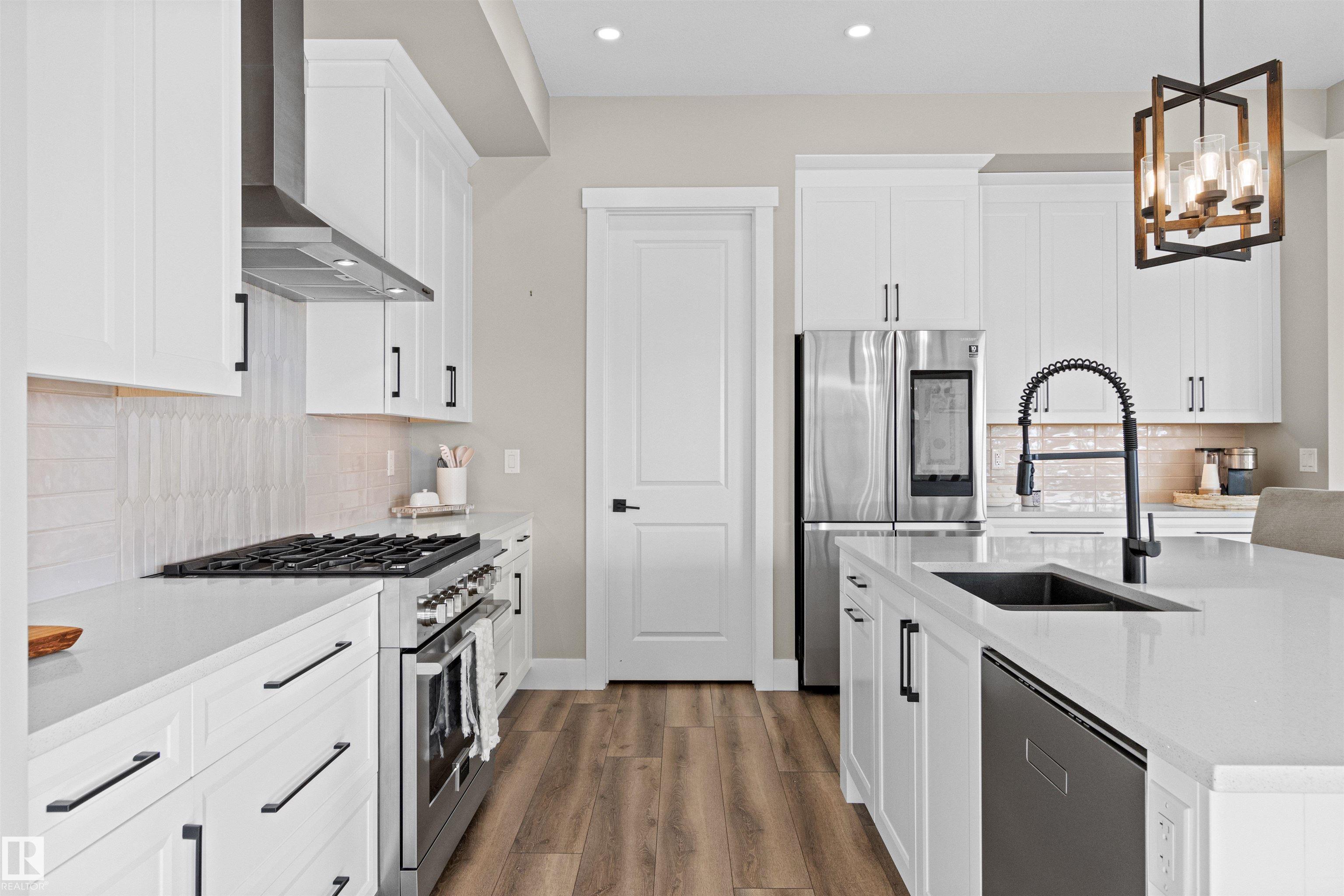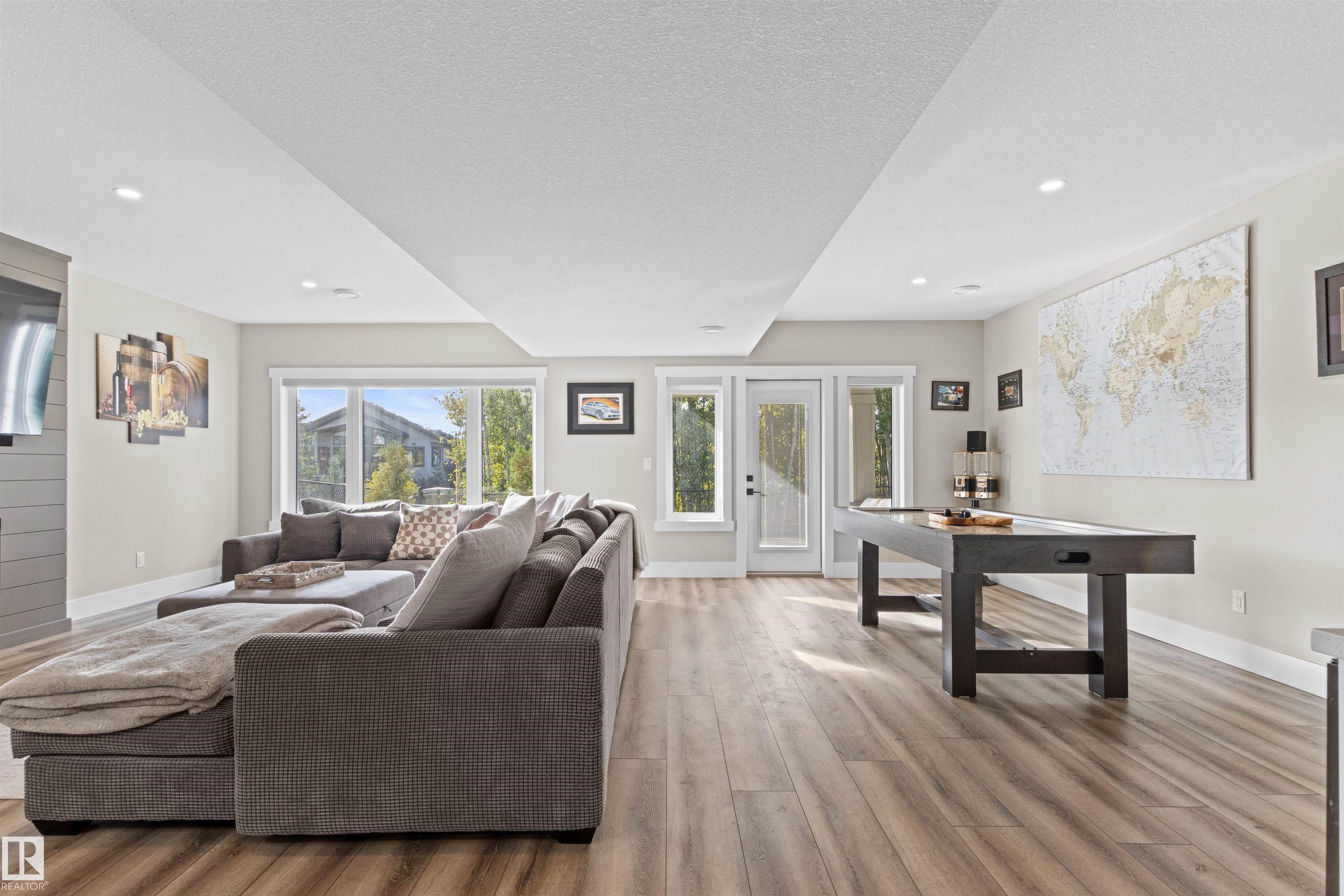 Spectacular WALK-OUT bungalow backing on private greenspace & siding walking trail. This 4 yr old home was masterfully built by AR Homes. The open concept Living/Dining/Kitchen offers soaring 10ft ceilings & is flooded w/ natural light from all the windows from the South & East - not to mention the stunning private views. The exquisite kitchen features large eat-up island, quartz counters, abundance of white cabinetry, undercabinet lighting, showstopper 36" gas range plus huge walk-through pantry with standup freezer & microwave. The main level also boasts a stunning Primary Suite w/ an ensuite anyone can relax in. You can also enjoy the added convenience of access to the laundry room through the walk-through closet plus an additional den. The lower level features in-floor heating, 9ft ceilings, a huge rec room with another gas fireplace plus wetbar, 2 large bedrooms, another full bath & den/flex room. The triple attached garage is heated, has polyaspartic floors, drain & cold water faucet. Shows 10+