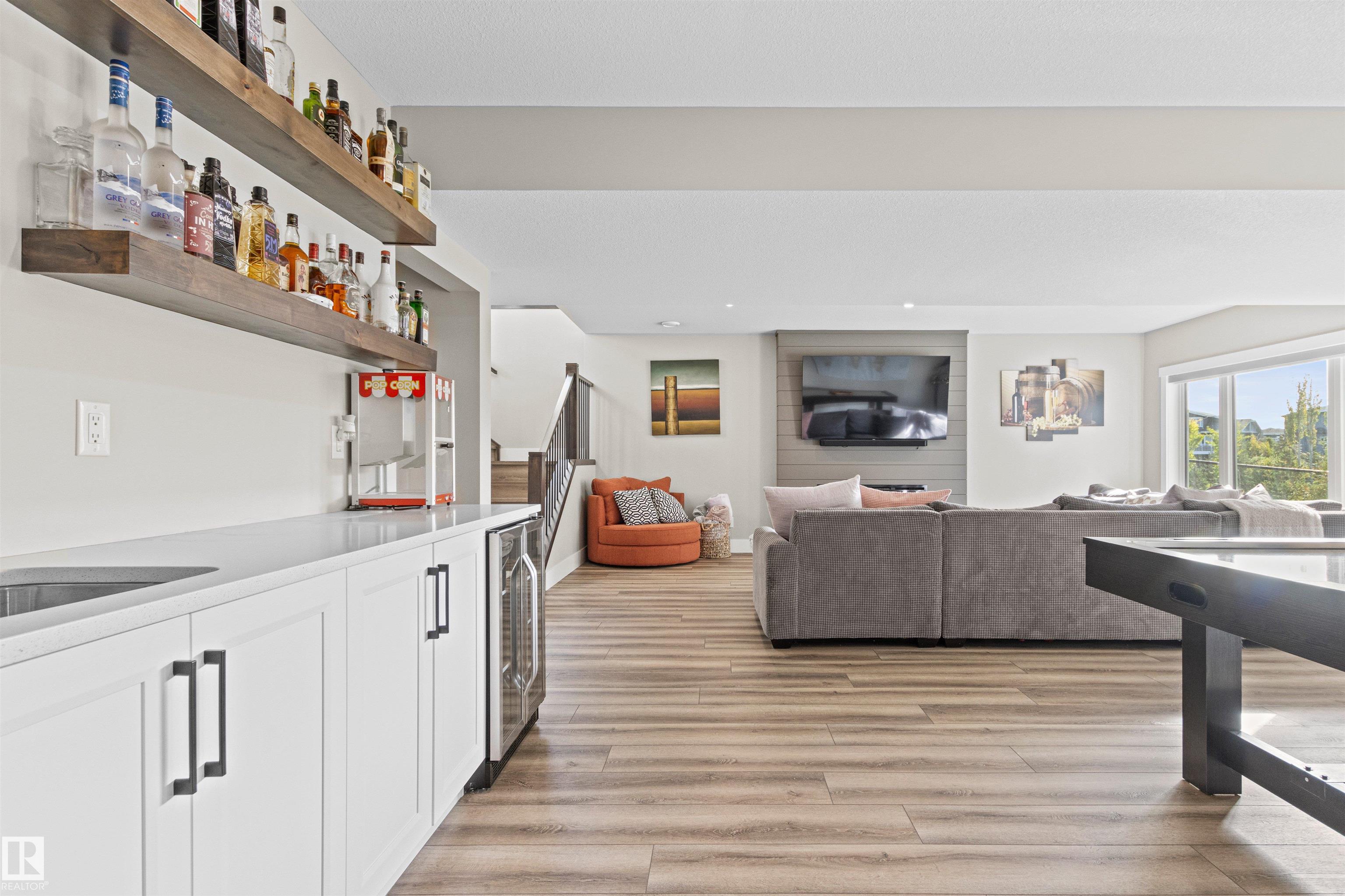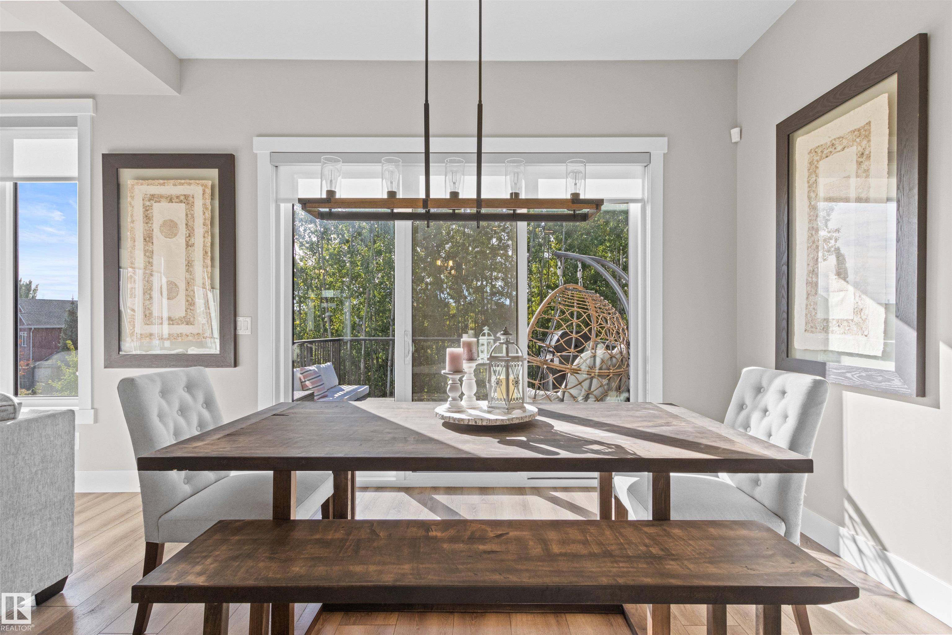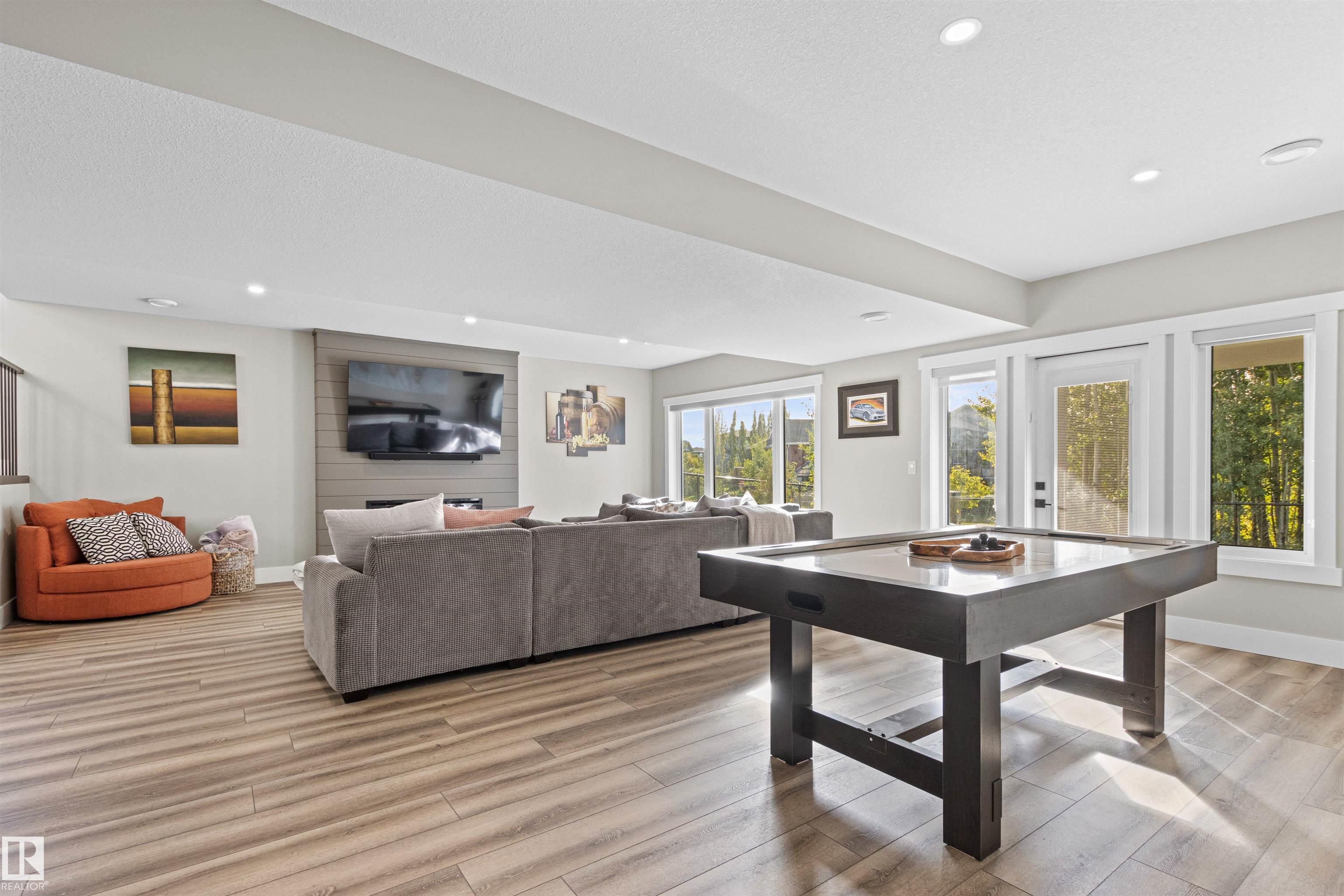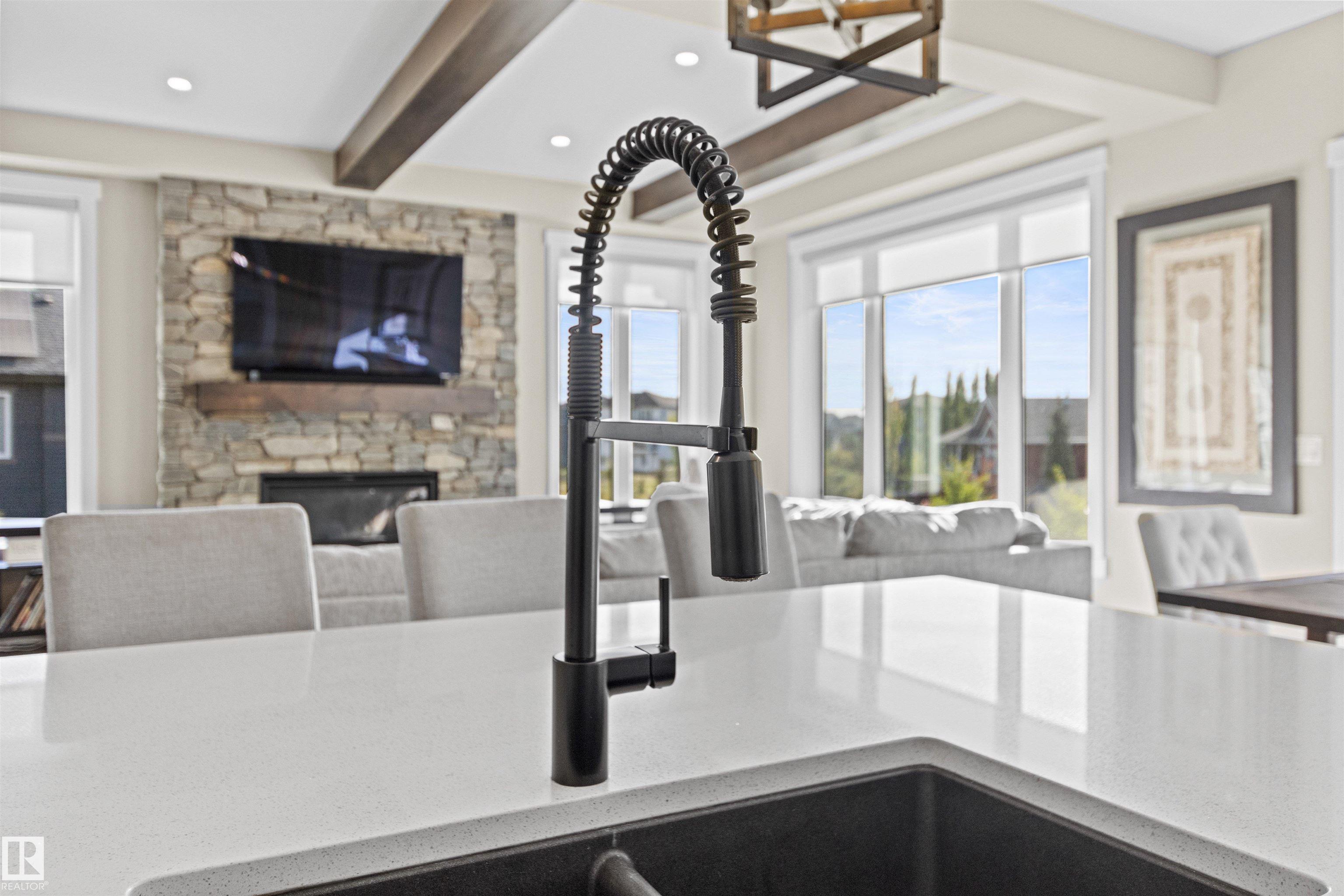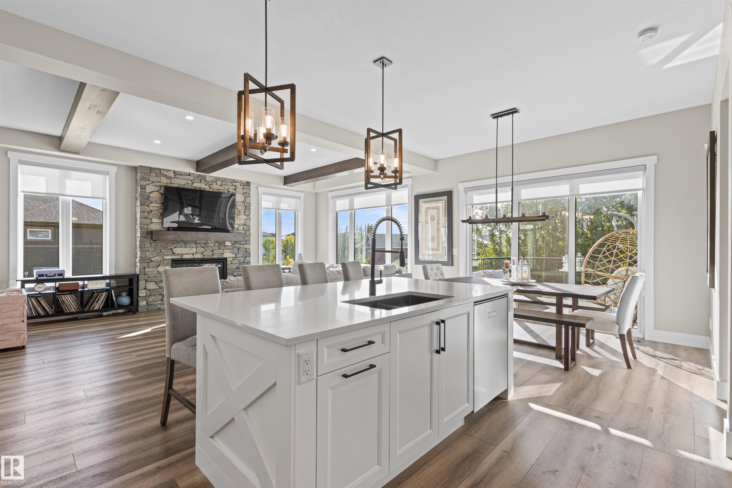 Spectacular WALK-OUT bungalow backing on private greenspace & siding walking trail. This 4 yr old home was masterfully built by AR Homes. The open concept Living/Dining/Kitchen offers soaring 10ft ceilings & is flooded w/ natural light from all the windows from the South & East - not to mention the stunning private views. The exquisite kitchen features large eat-up island, quartz counters, abundance of white cabinetry, undercabinet lighting, showstopper 36" gas range plus huge walk-through pantry with standup freezer & microwave. The main level also boasts a stunning Primary Suite w/ an ensuite anyone can relax in. You can also enjoy the added convenience of access to the laundry room through the walk-through closet plus an additional den. The lower level features in-floor heating, 9ft ceilings, a huge rec room with another gas fireplace plus wetbar, 2 large bedrooms, another full bath & den/flex room. The triple attached garage is heated, has polyaspartic floors, drain & cold water faucet. Shows 10+