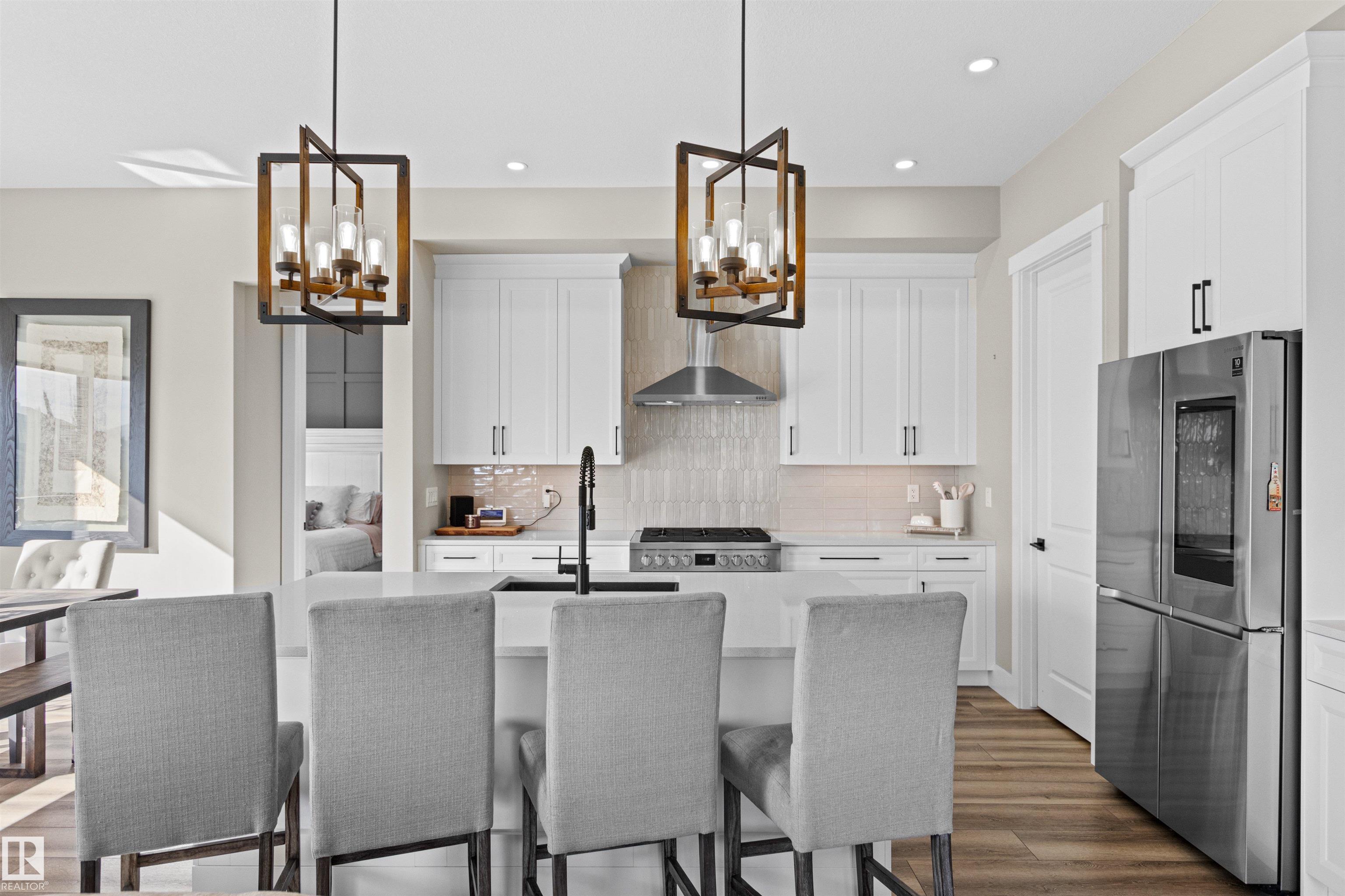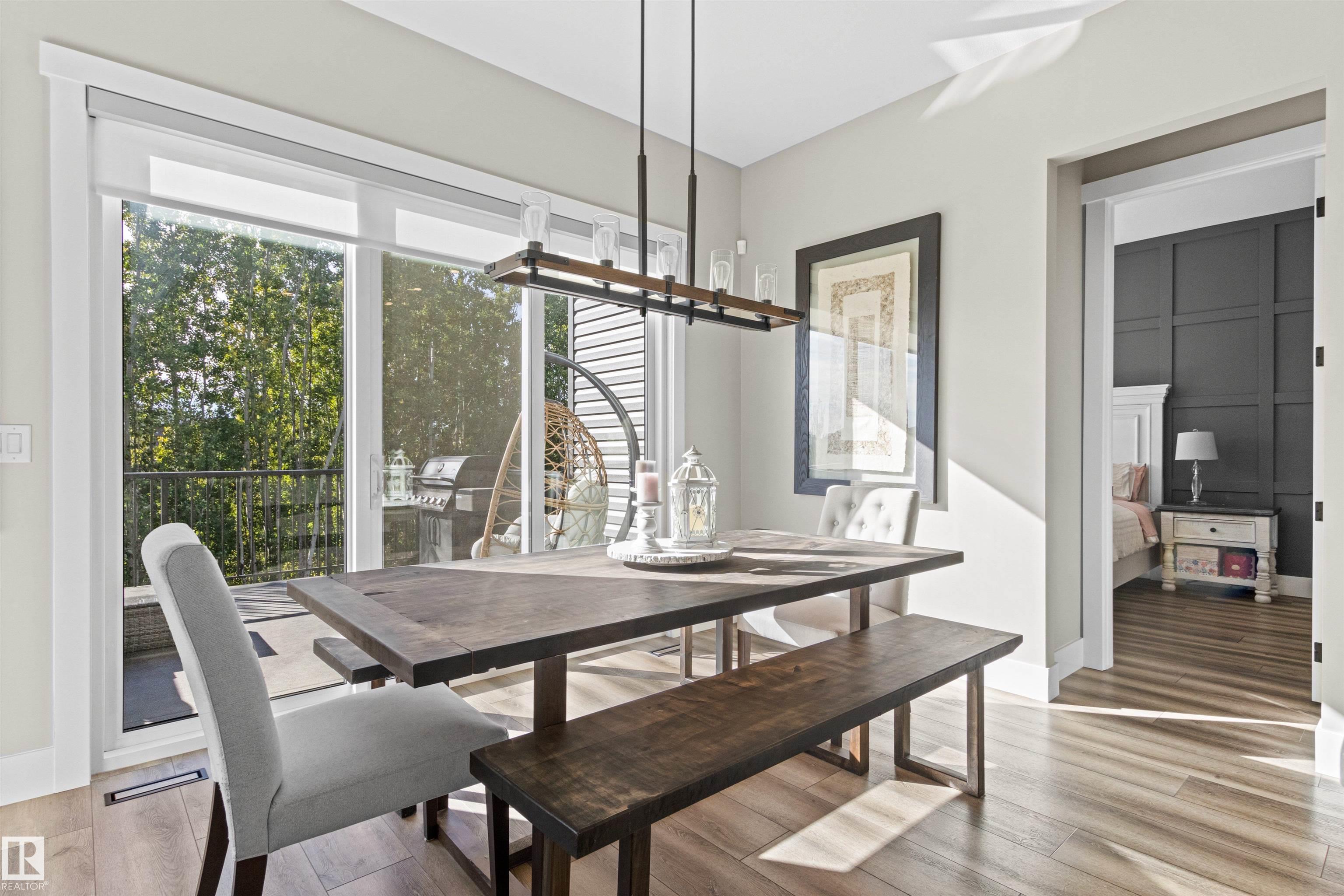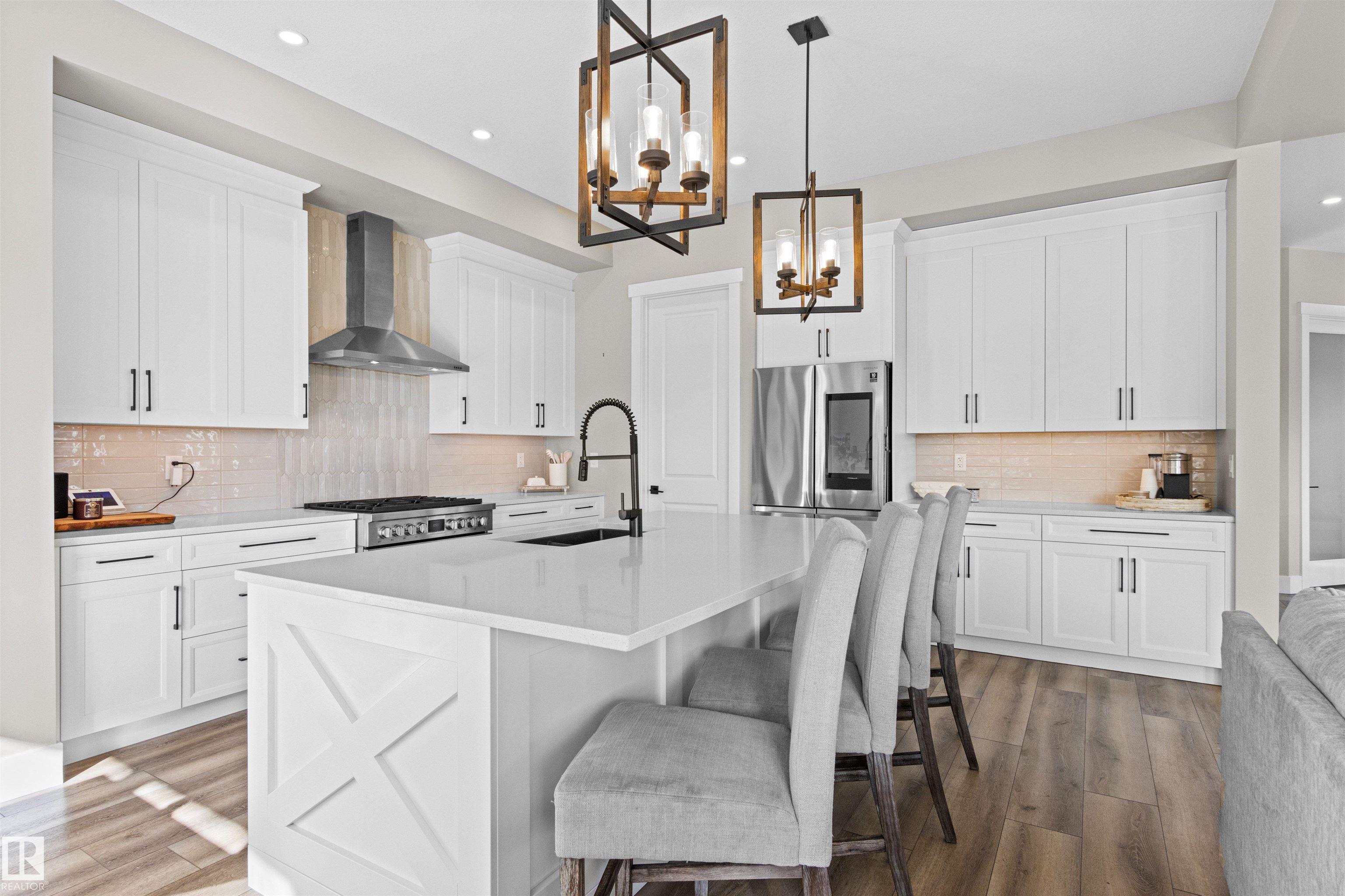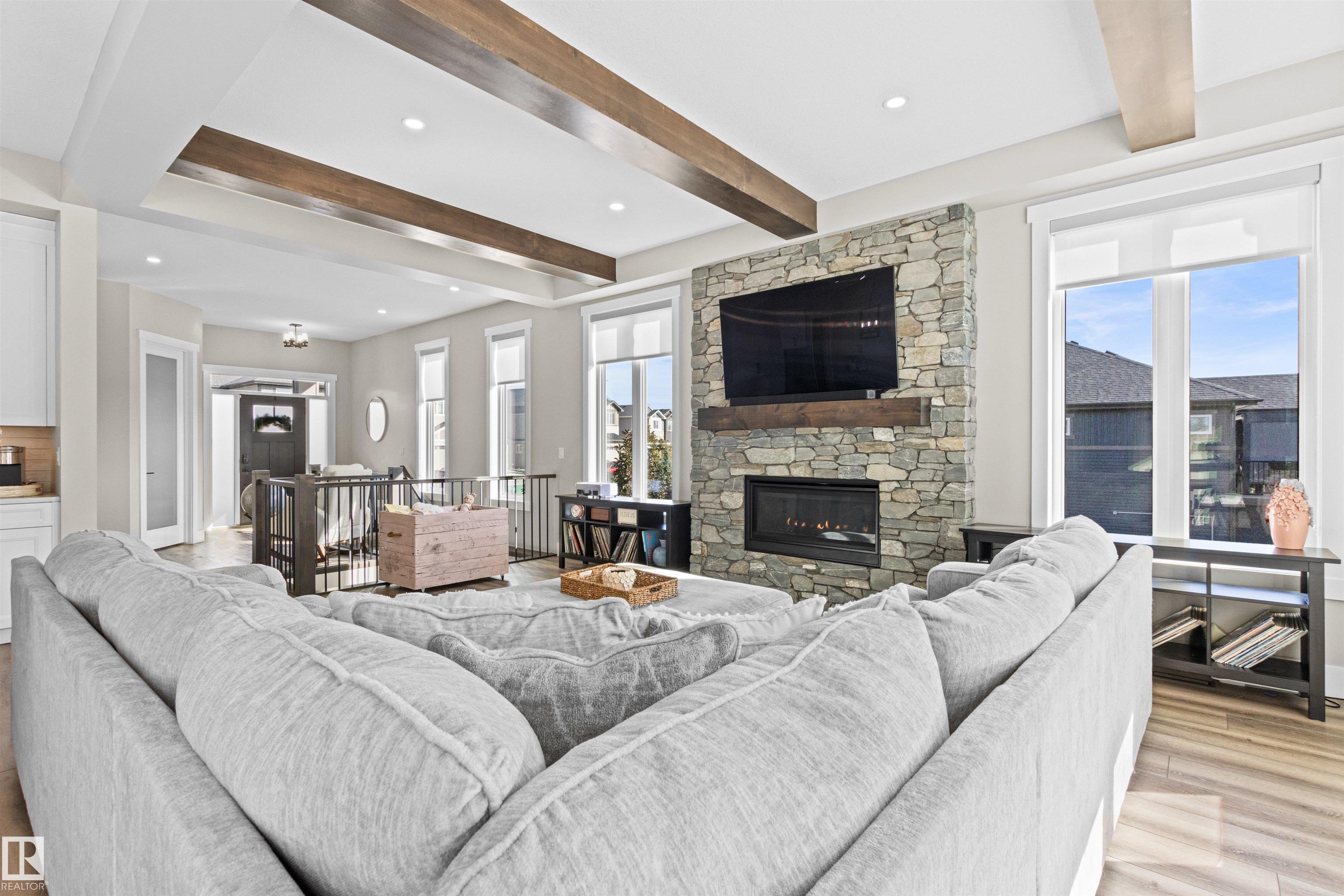 Spectacular WALK-OUT bungalow backing on private greenspace & siding walking trail. This 4 yr old home was masterfully built by AR Homes. The open concept Living/Dining/Kitchen offers soaring 10ft ceilings & is flooded w/ natural light from all the windows from the South & East - not to mention the stunning private views. The exquisite kitchen features large eat-up island, quartz counters, abundance of white cabinetry, undercabinet lighting, showstopper 36" gas range plus huge walk-through pantry with standup freezer & microwave. The main level also boasts a stunning Primary Suite w/ an ensuite anyone can relax in. You can also enjoy the added convenience of access to the laundry room through the walk-through closet plus an additional den. The lower level features in-floor heating, 9ft ceilings, a huge rec room with another gas fireplace plus wetbar, 2 large bedrooms, another full bath & den/flex room. The triple attached garage is heated, has polyaspartic floors, drain & cold water faucet. Shows 10+