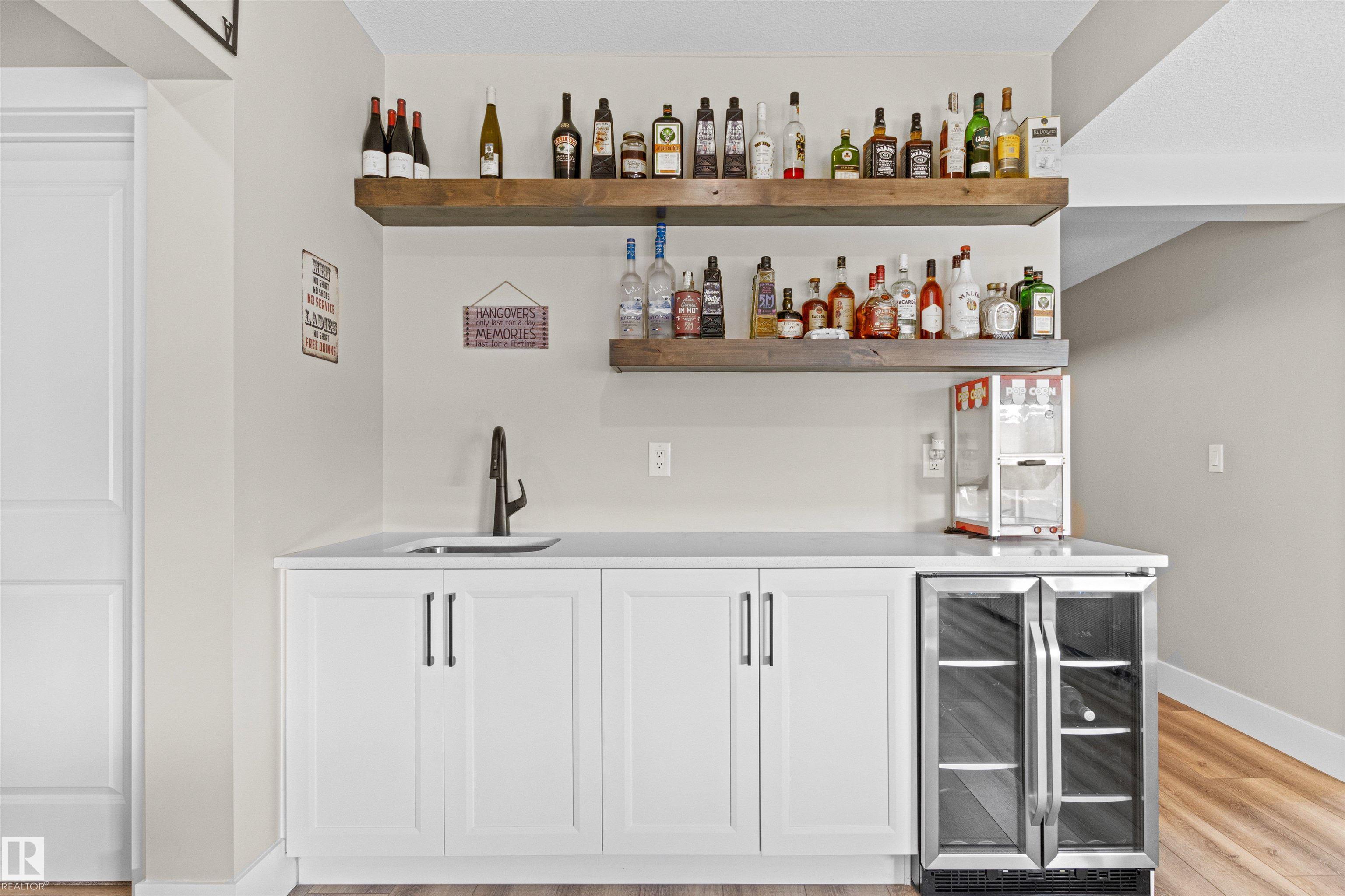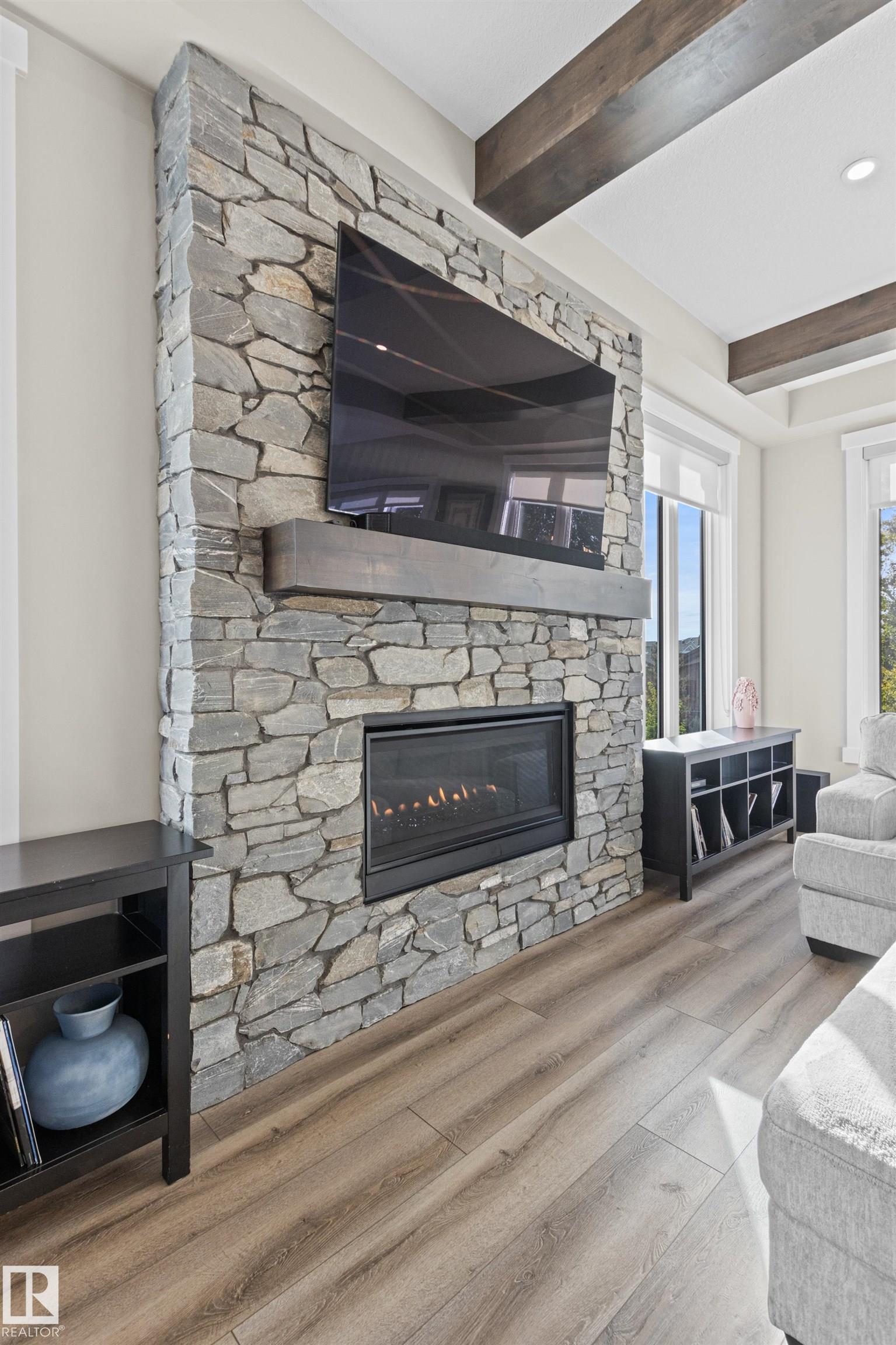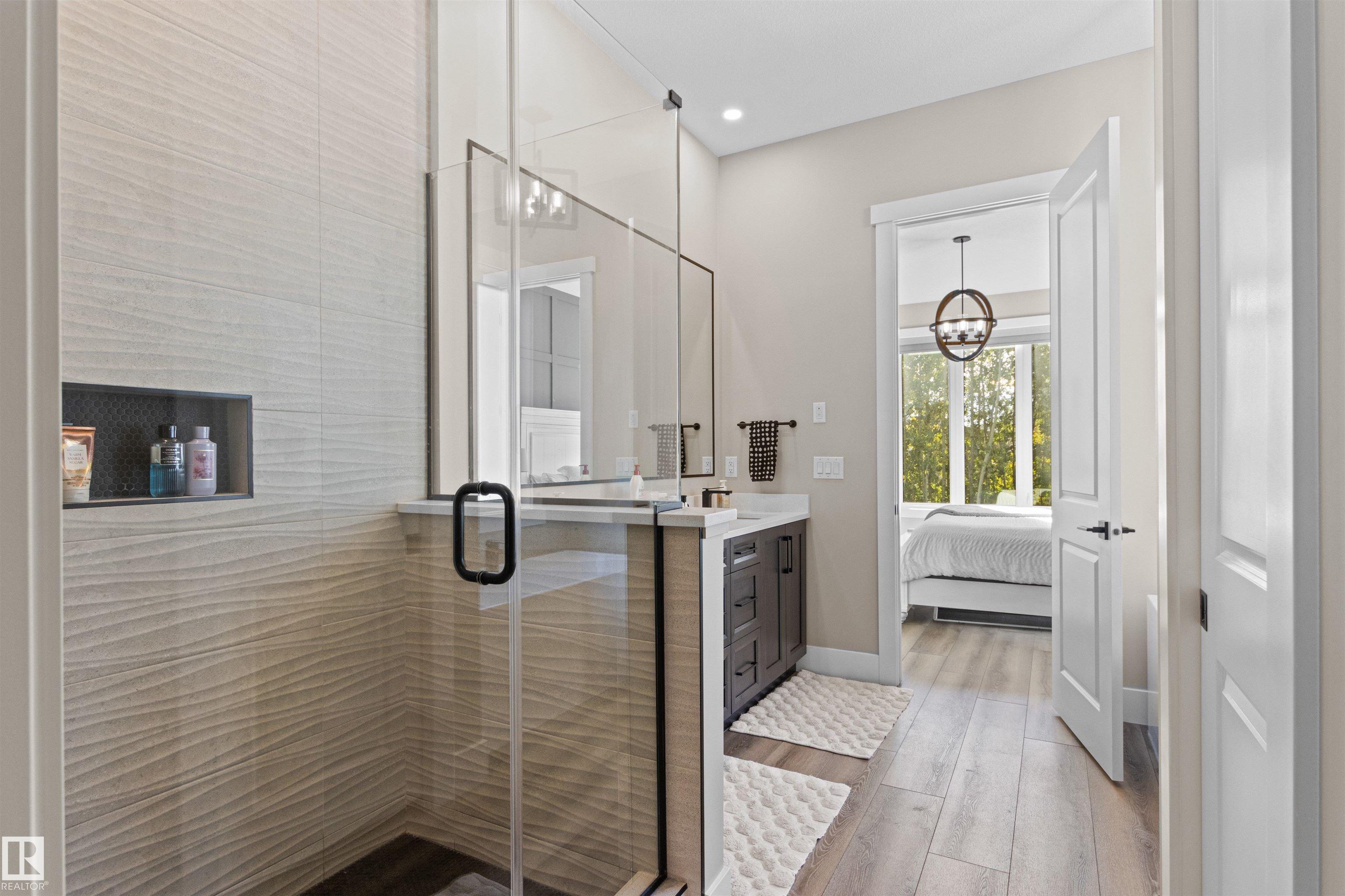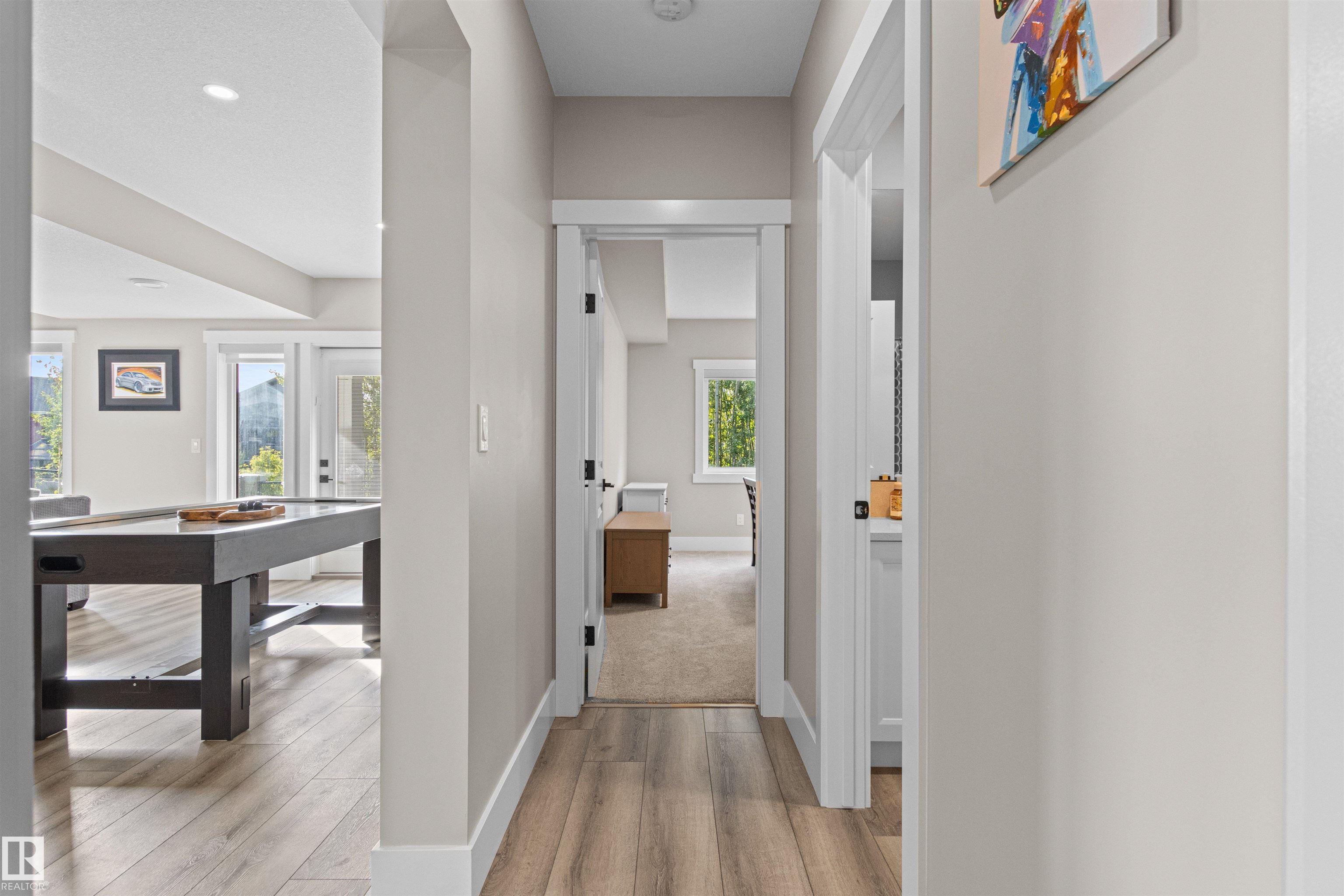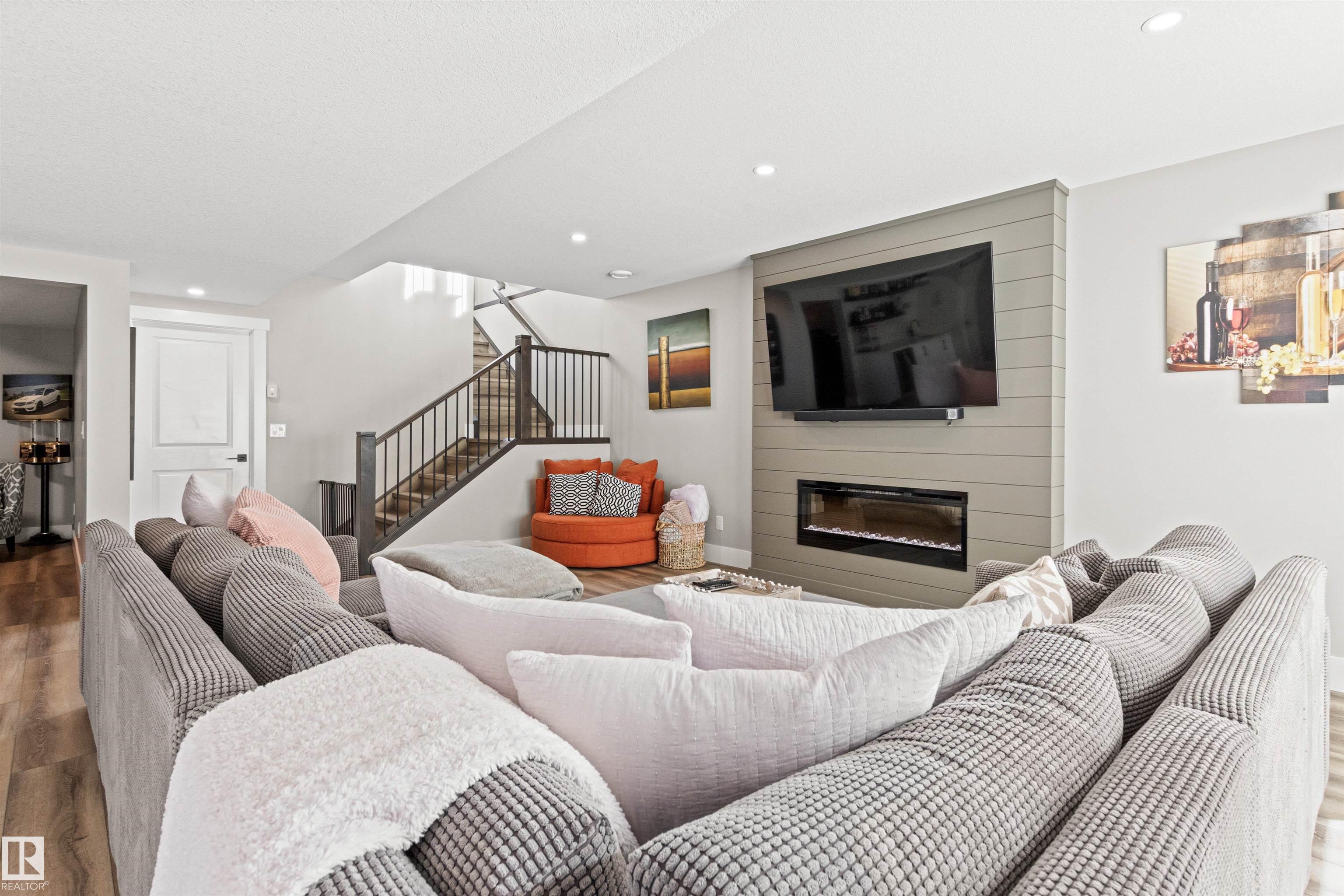Spectacular WALK-OUT bungalow backing on private greenspace & siding walking trail. This 4 yr old home was masterfully built by AR Homes. The open concept Living/Dining/Kitchen offers soaring 10ft ceilings & is flooded w/ natural light from all the windows from the South & East - not to mention the stunning private views. The exquisite kitchen features large eat-up island, quartz counters, abundance of white cabinetry, undercabinet lighting, showstopper 36" gas range plus huge walk-through pantry with standup freezer & microwave. The main level also boasts a stunning Primary Suite w/ an ensuite anyone can relax in. You can also enjoy the added convenience of access to the laundry room through the walk-through closet plus an additional den. The lower level features in-floor heating, 9ft ceilings, a huge rec room with another gas fireplace plus wetbar, 2 large bedrooms, another full bath & den/flex room. The triple attached garage is heated, has polyaspartic floors, drain & cold water faucet. Shows 10+