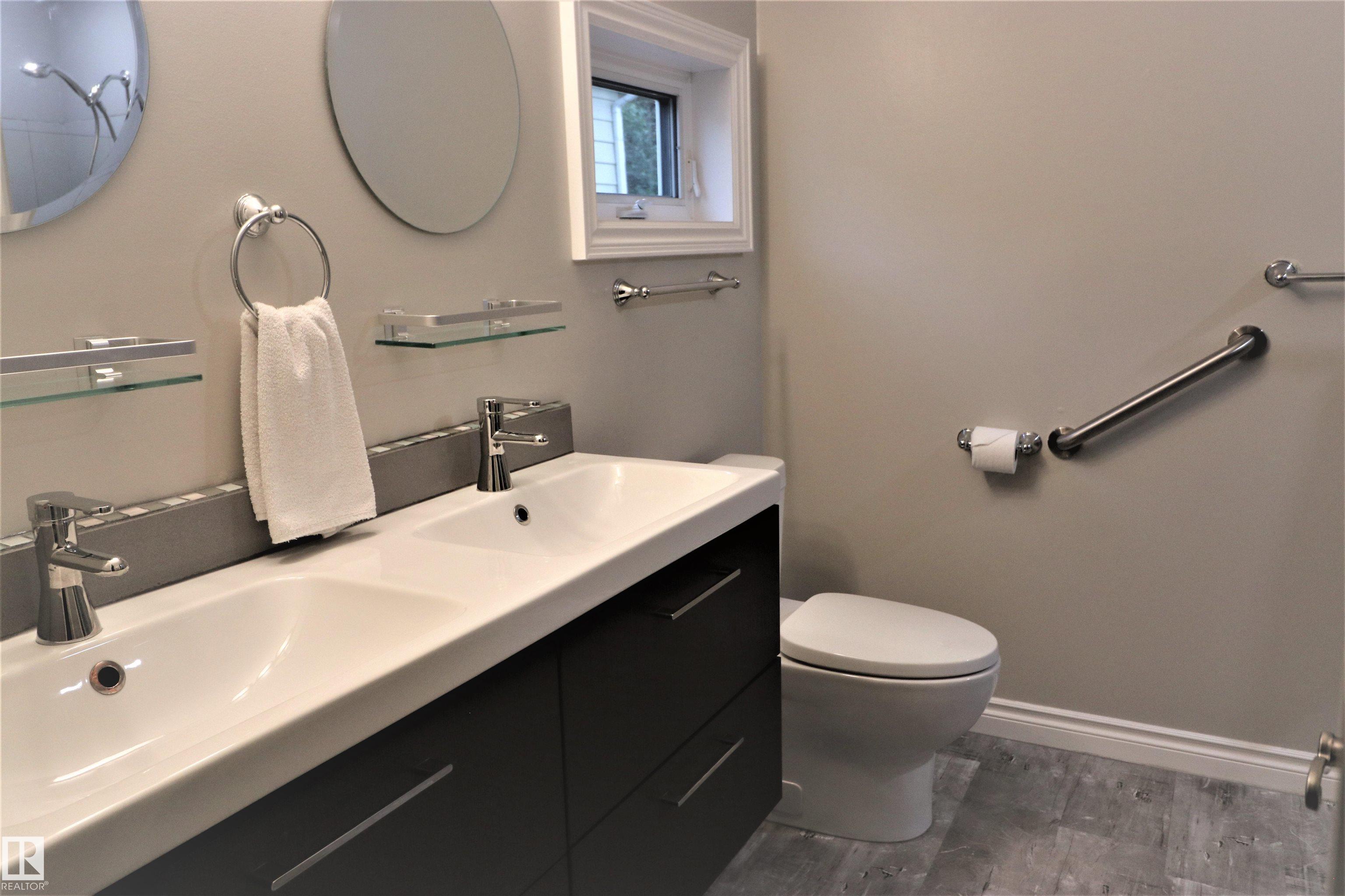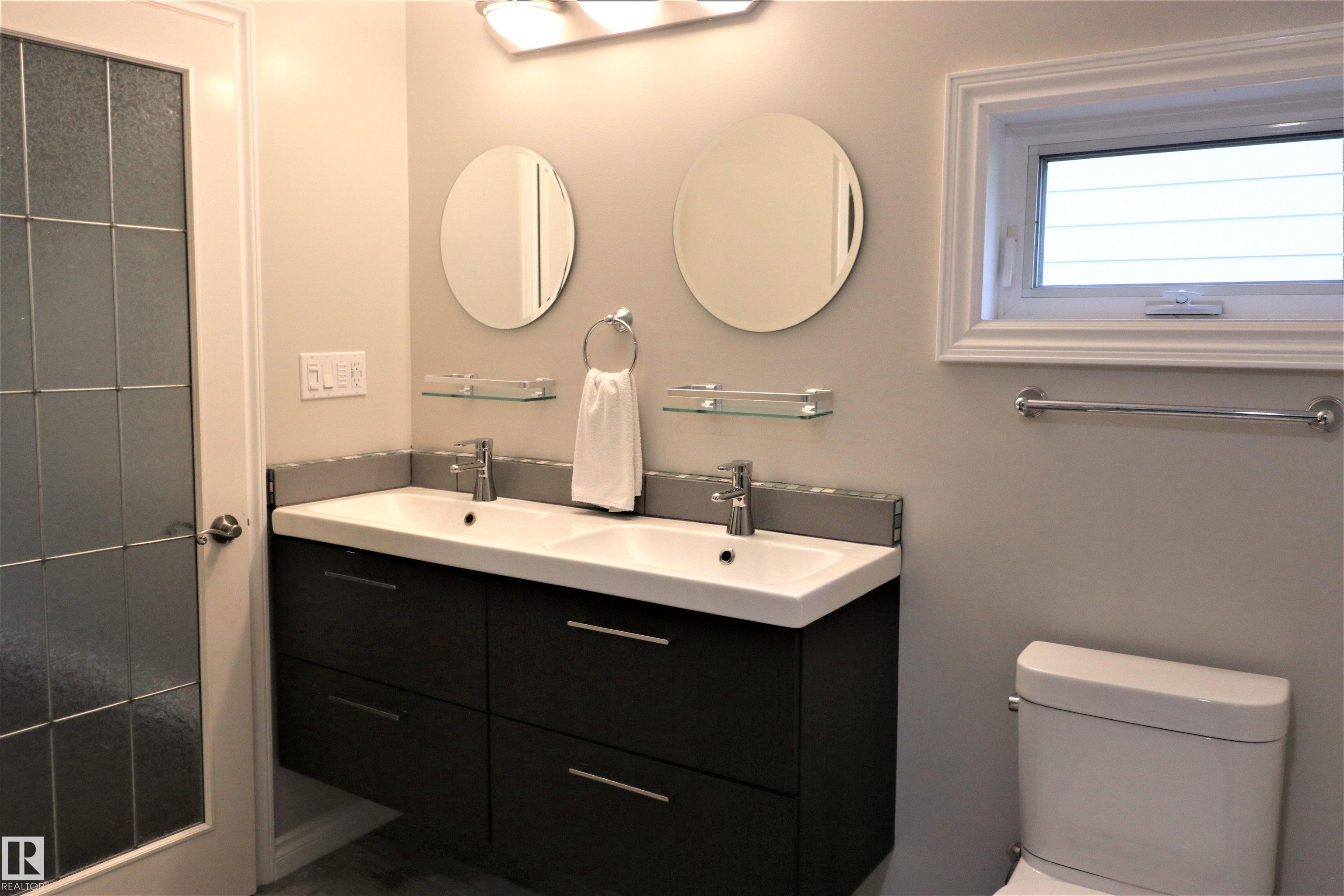 Beautifully finished bungalow. Open concept & fully renovated kitchen with oak cabinets, beautiful countertops, granite floor & stainless steel appliances. Dark hardwood flooring throughout the entire main level. The Master bedroom boasts a grand 4 piece ensuite with his & her sinks, beautiful tiled walk in shower & a well designed walk-in closet. Enjoy a patio door off the master bedroom with steps leading to a private fully fenced & nicely treed back yard. The second bedroom is outfitted for in-suite laundry. A 4 pce. upgraded bath completes the main level. The Basement is freshly renovated, finished with vinyl flooring, new trim, paint & drop ceilings. Enjoy a spacious family room, flex room & 3 pce. bath. Detached powered garage. Newer shingles on buildings, vinyl siding & a large concrete parking pad. In quiet, highly desirable location, centrally located, close to schools & walking distance to everything!