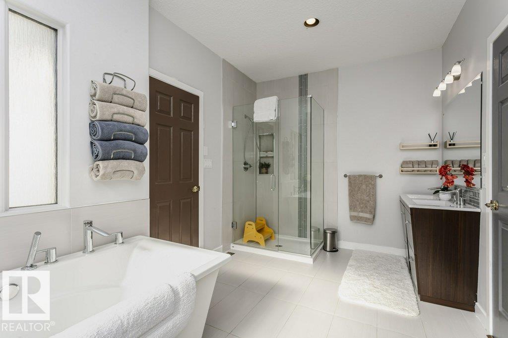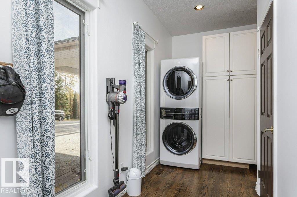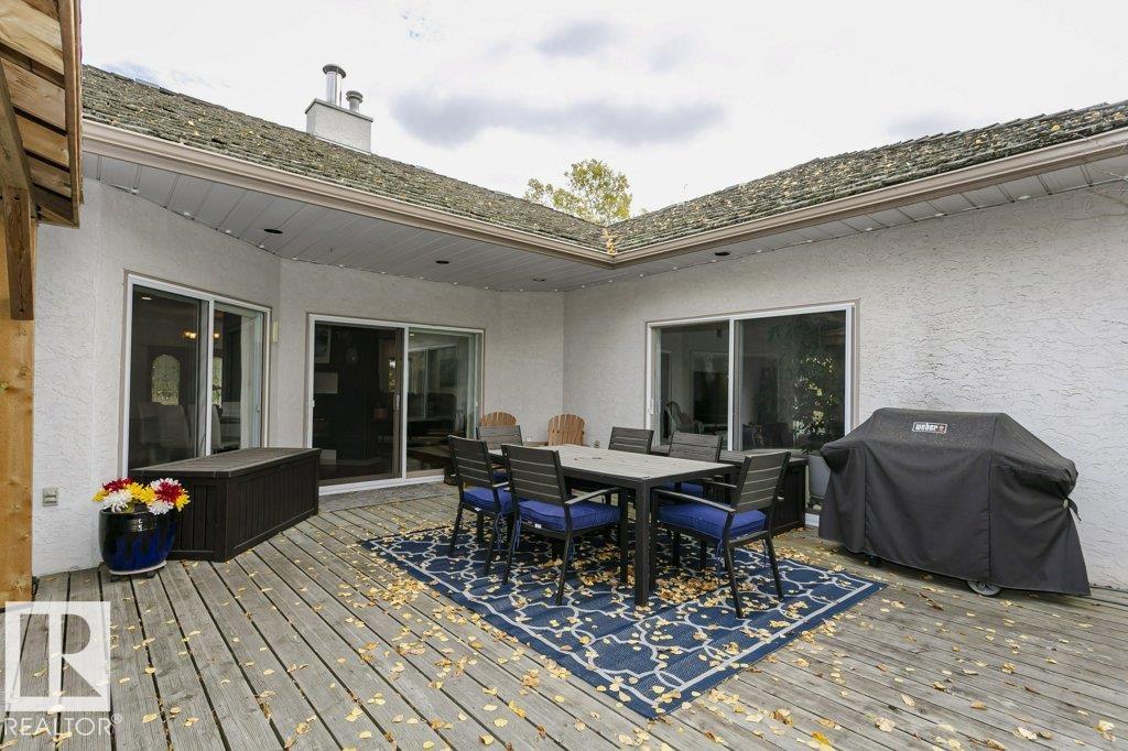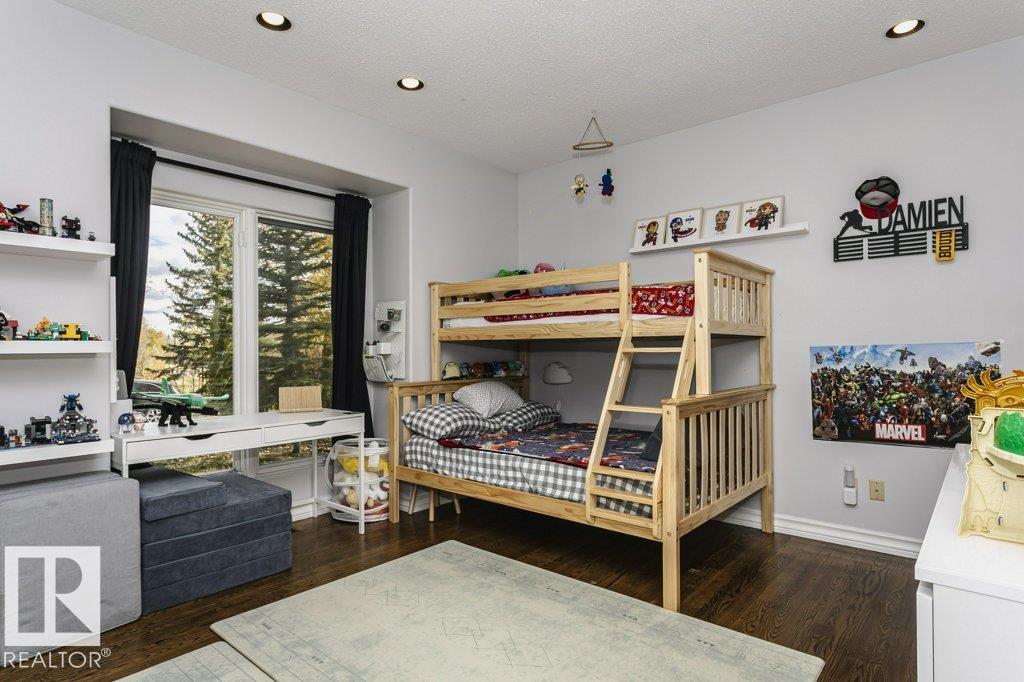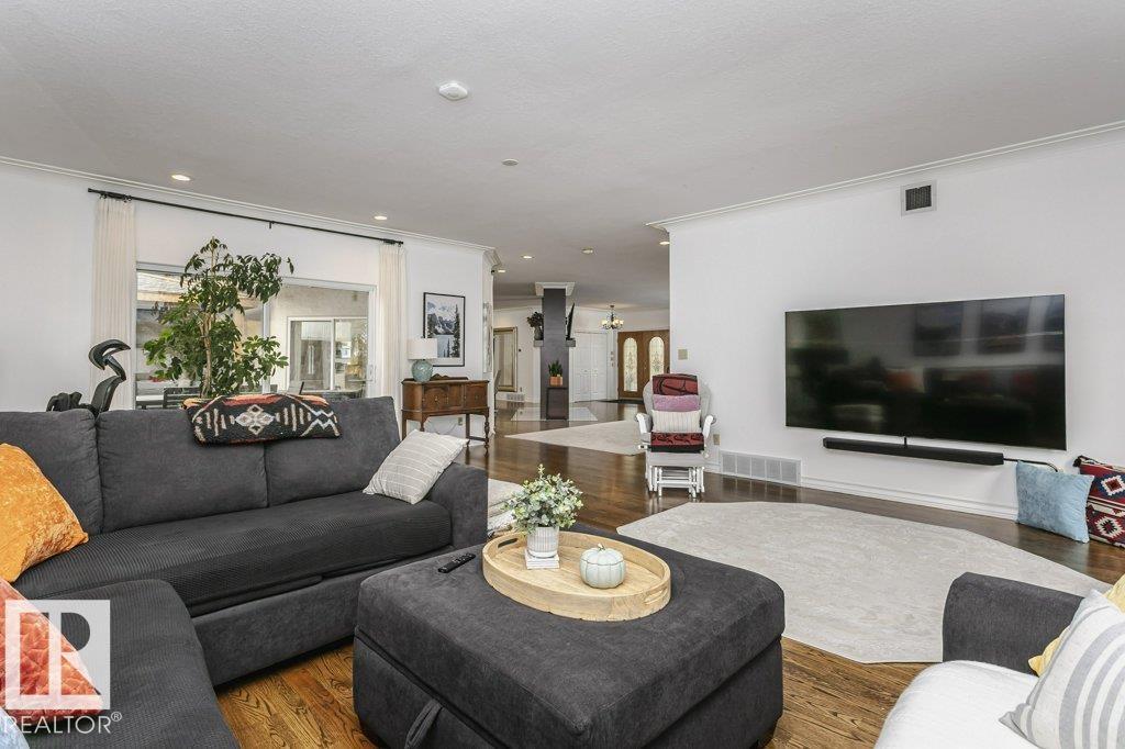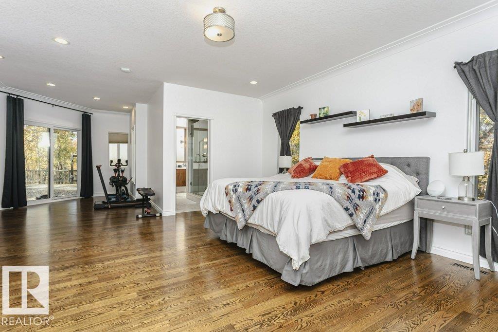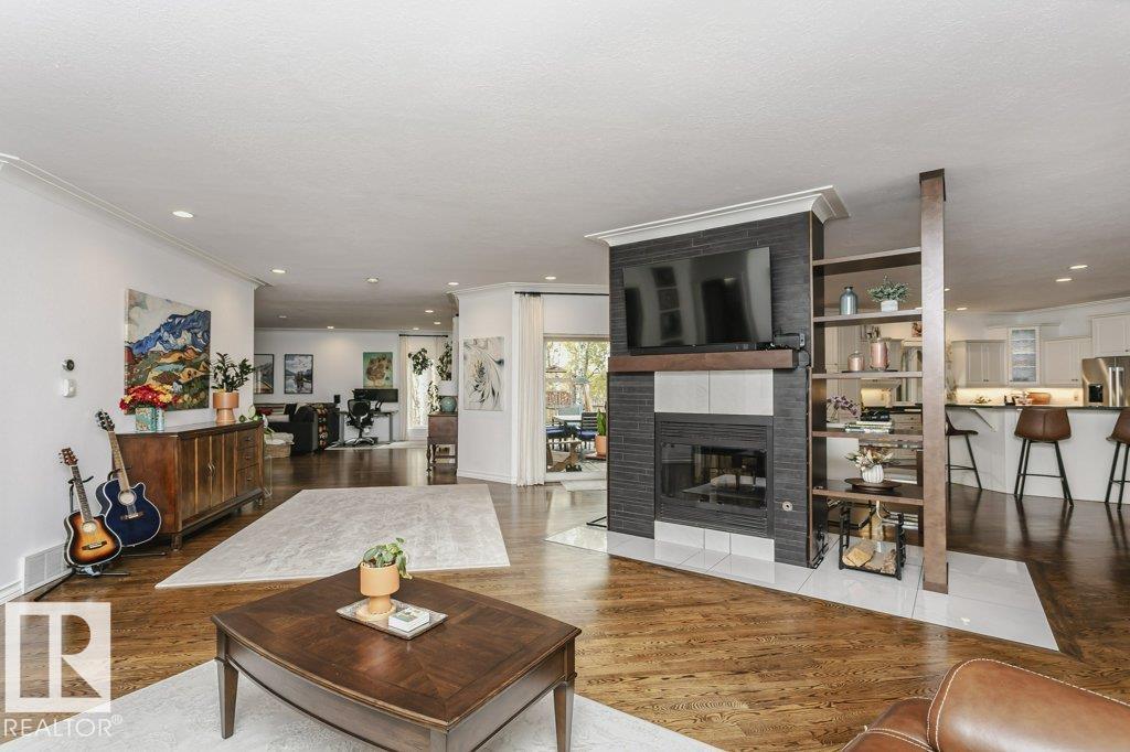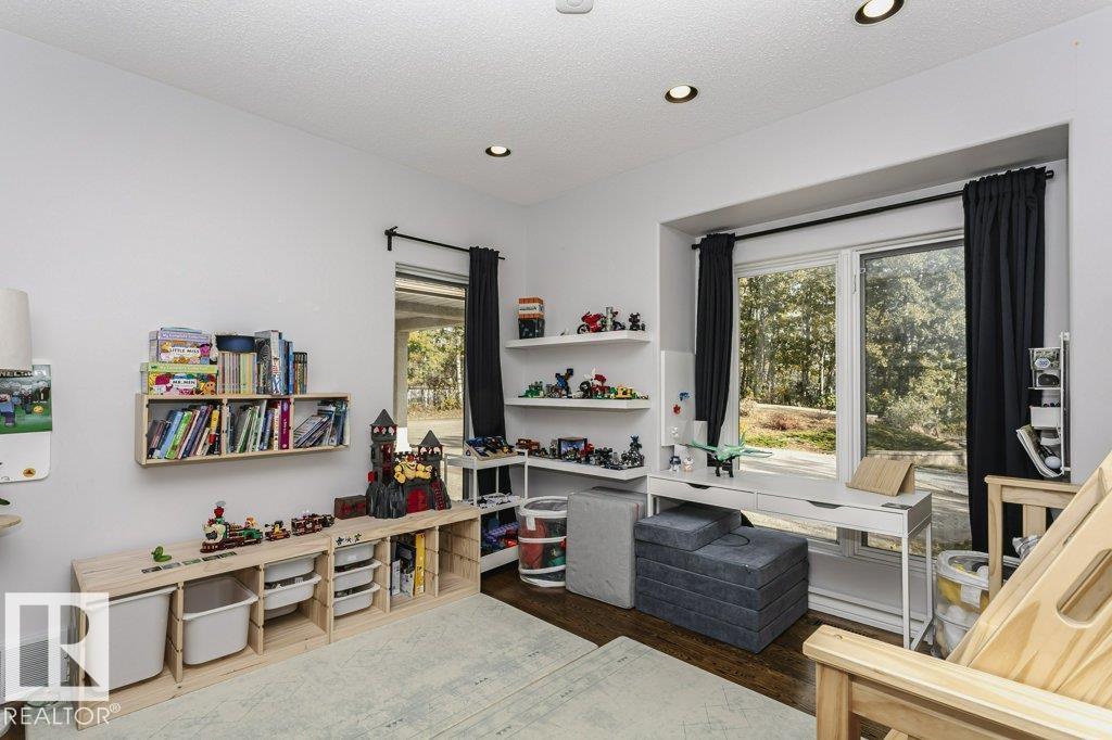 Natural, private setting just minutes from Sherwood Park. Bird watchers delight! This bungalow has an open design with expanses of hardwood flooring and 9 Ft. ceilings throughout. Some of the many upgraded features are the steam shower in the primary bedroom 5 pc. ensuite, with heated tile floor. The primary bedroom is very spacious and also has a walk-in closet. The other 2 bedrooms are on the other end of the house and are large and bright. There's a renovated jack & jill bathroom between them. Enjoy the warmth of a 2-sided fireplace that divides the living room and dining area. The heated triple garage has lots of storage room beside room for 3 full-size vehicles. The deck is massive and includes an area covered by a beautiful gazebo structure. There is are two storage sheds. One has been used as a playhouse. The crawl space foundation is over 5 ft. in height with a concrete floor. No shortage of storage spaces in this lovely home.