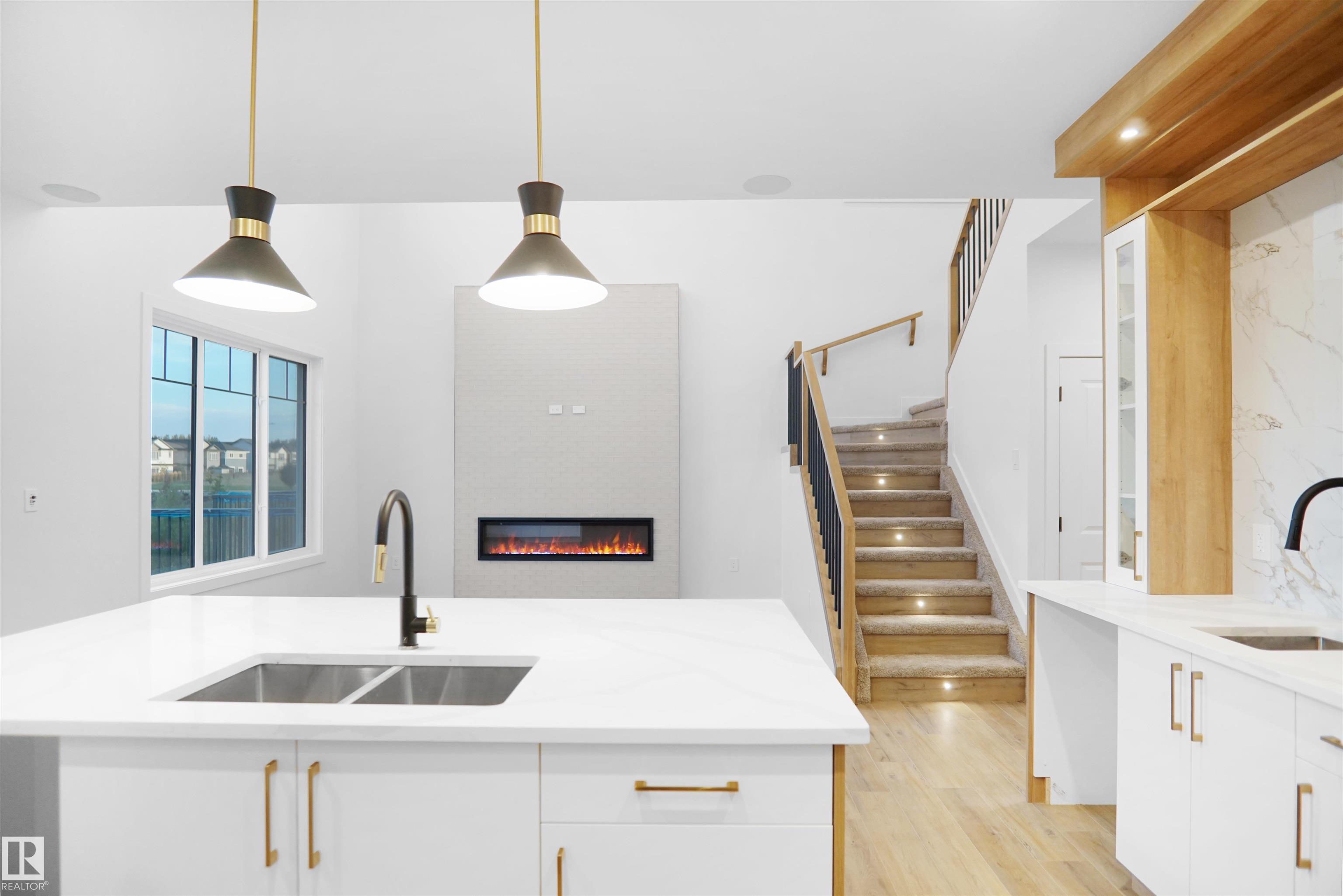 This backing to POND,open to above, WALK OUT home features 4 bedrooms, 3 baths , a bonus room & study table. The main floor boasts luxury vinyl plank flooring, a versatile bedroom/den,a Full Washroom, a spacious family room and cozy fireplace. The modern kitchen is designed for both cooking and entertaining, complete with high-end cabinetry, quartz countertops, a large island, stainless steel appliances, and a pantry. A bright dining area with ample natural light is perfect for gatherings, while a convenient full bath completes this level. IT IS UNDER CONSTRUCTION & PHOTOS ARE FROM SIMILAR HOME.COLOURS MAY VARY. Upstairs, the primary suite offers a 5-piece ensuite and a spacious walk-in closet. Two additional bedrooms,a full bath,study table, a bonus room, and a laundry room provide plenty of space for the whole family. The unfinished WALK OUT basement comes with a separate entrance, offering endless possibilities for customization. Add. Features:Deck,Wireless Bluetooth Speakers,Gas Hookup for BBQ