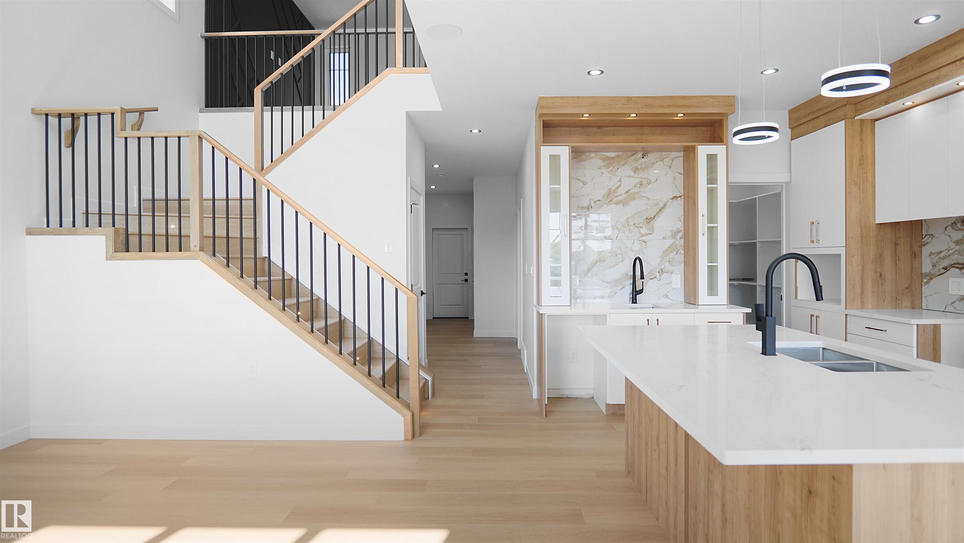 UPGRADED HOME IN THE COMMUNITY OF JESPERDALE!! This home boasts with 4 bedrooms, 3 full baths, bonus room & 9ft ceilings on all three levels. Main floor offers vinyl plank flooring, bedroom/den, family room with 18ft ceiling, fireplace. Kitchen, with modern high cabinetry, quartz countertops, island, wet bar, & walk-in pantry, is made for cooking family meals and entertaining. Spacious dinning area with ample sunlight is perfect for get togethers. The 3 piece bath finishes the main level. Walk up stairs to master bedroom with 5 piece ensuite/spacious walk in closet, 2 bedrooms, full bath, laundry computer station, and bonus room. Unfinished basement with separate entrance and roughed in bathroom is waiting for creative ideas. Public transit to Edmonton, & more than 40 km of trails, your dream home home awaits. Includes:TRIPLE PANE WINDOWS/ WIRELESS SPEAKERS/ GAS HOOKUP ON DECK.Photos are representative.