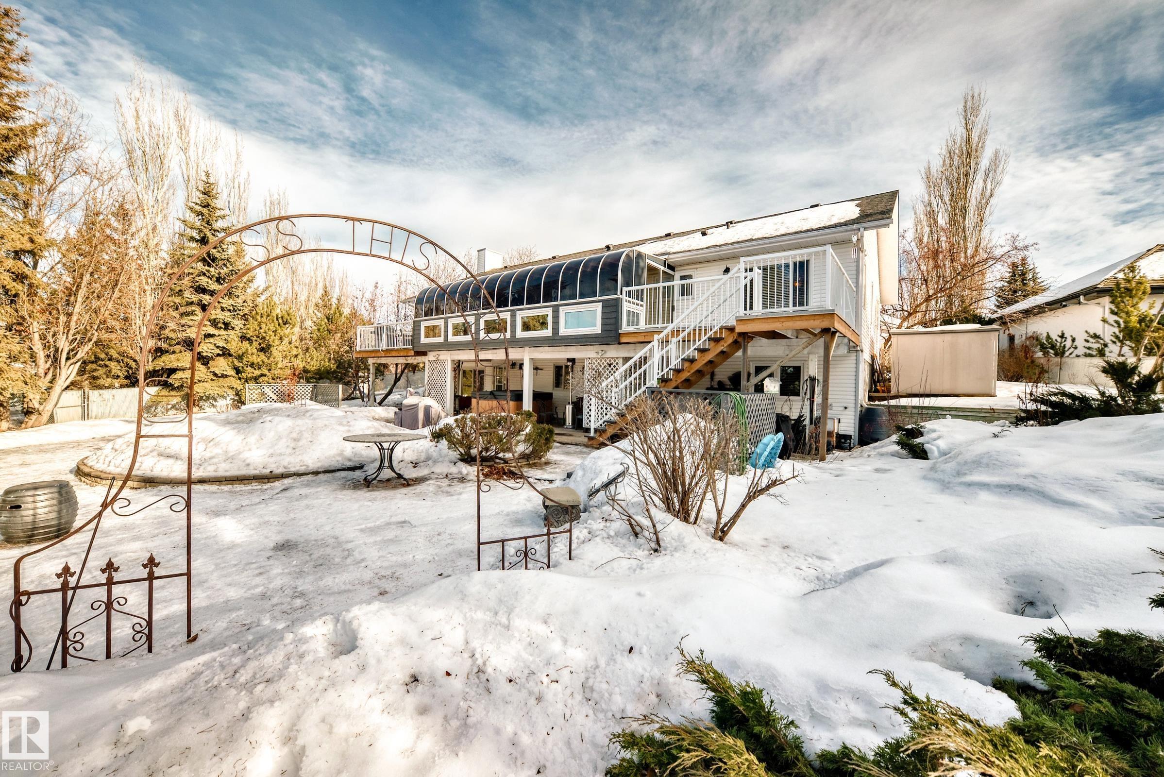 This is it! You can have the best of both worlds while living in Sturgeon Valley amongst miles of bike trails and numerous golf courses while only 5 mins from St. Albert and it's many amenities. This walkout bungalow is easy to call home once you see the yard completely fenced and treed offering the privacy you could only dream of. Relax in the 3 season sun room adding another 286 sq. ft. of living space to the main floor. Recent upgrades incl. kitchen & bath renovations, appliances, Hot water tank, 2 New Furnaces Feb'24 and 35 yr shingles Oct'18. The triple garage has epoxy floor & blue tooth garage door openers with cameras and Mastercraft Maximum cabinets in the garage that can stay with the house.