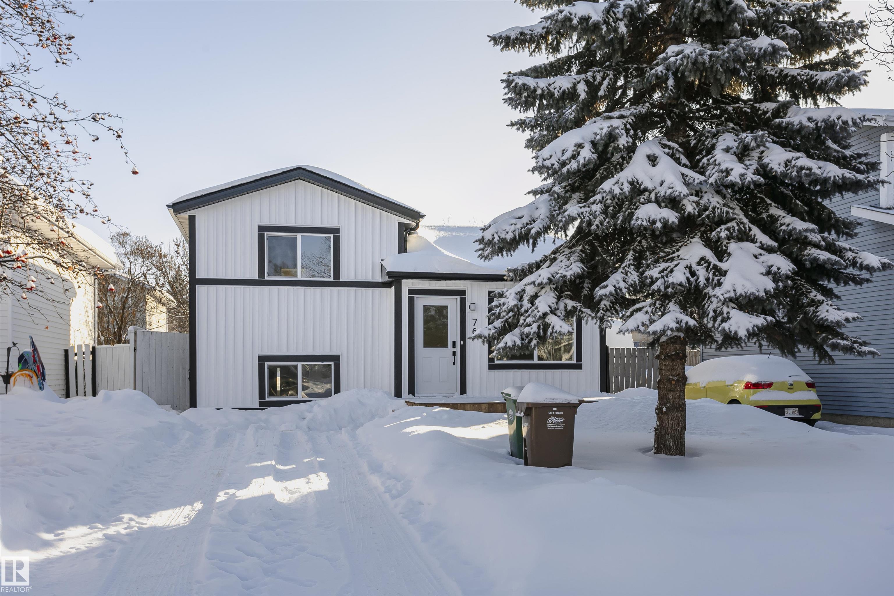 DESIRABLE DEER RIDGE LIVING! Located on a quiet, family-friendly crescent in one of St.Albert's most sought-after communities, this fully renovated 3-bedroom, 1.5-bath home has been completely reimagined from top to bottom. The sun-filled open main level features LVP flooring, updated lighting, & a chef-inspired kitchen W/ seamless QUARTZ counters & backsplash, shaker cabinetry, soft-close drawers, oversized uppers, pot lights, & NEW SS appliances. A CUSTOM MAPLE railing guides you upstairs to the primary retreat fit for a king bed, another spacious bedroom, & a sleek full bath. The first lower level is centred around a cozy electric fireplace/media wall, a comfortable 3rd bedroom, & a 2 PC bath. The fully finished basement adds a spacious rec room & laundry W/ BUILT-IN cabinets, NEW washer/dryer. Outside, enjoy standout curb appeal & a low-maintenance yard W/ NEW deck, PREMIUM siding, shingles, windows, roofline system & more. Steps to parks, schools, shopping--refined living, ready to be experienced!