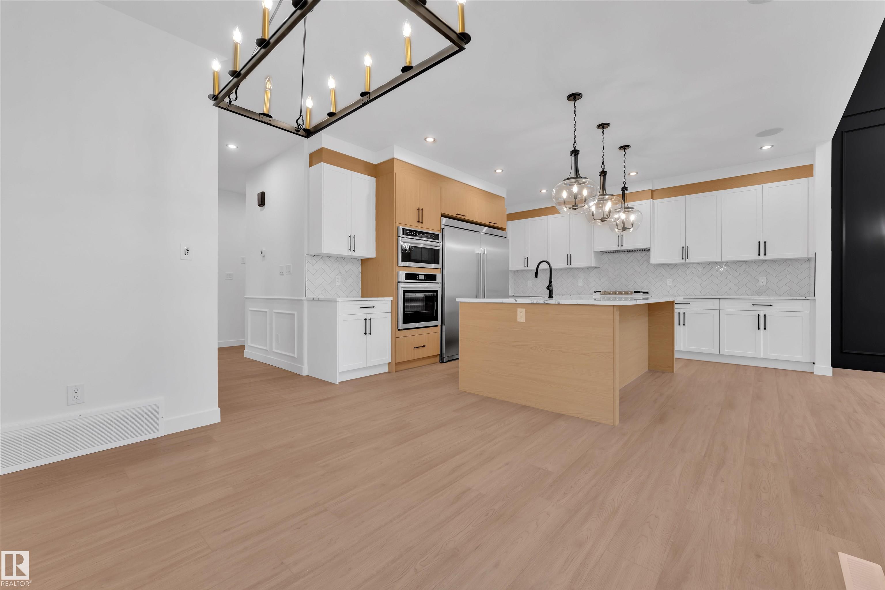 Triple Car Garage || Stunning home with luxury and functionality for modern family living. Open-to-above living room with lot of windows, fireplace & beautiful feature wall. A convenient main-floor bedroom with a full bathroom is perfect for guests or extended family. The heart of the home is its modern kitchen, flowing into a dining area and expansive deck, ideal for summer gatherings. Upstairs beautiful bonus room with fireplace & feature wall, perfect for family entertainment, along with a private office/gym. The spacious primary suite with stunning ceiling & wall design offers a custom ensuite with a soaking tub, dual vanities, and a walk-in closet. Two additional bedrooms share a full bath. An upper balcony adds a peaceful retreat for morning coffee or evening relaxation. Every corner of this home has been thoughtfully designed, checking all the boxes for style, comfort, luxury and convenience.