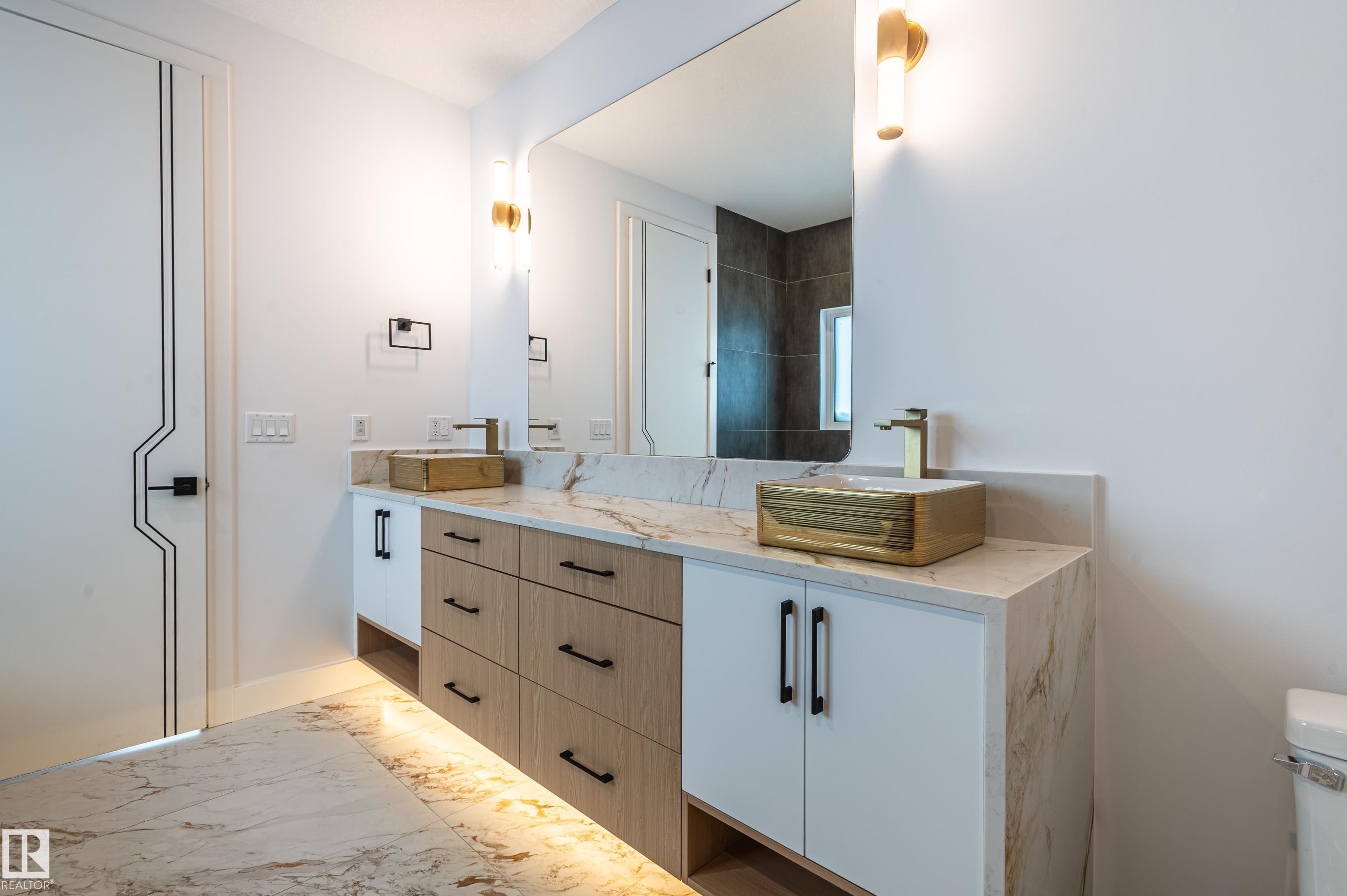 Oh wow. Just WOW! You won't believe your eyes when you experience this amazing 2 story home. Main floor den, magnificent kitchen design with an exceptional walk through butler's pantry, and cathedral ceilings with a fireplace that you just have to see in person to believe. The mudroom has built-ins that will make organizing your family easy. Upstairs you'll be treated to 3 large bedrooms, including 2 ensuite bathrooms. Of course there's upstairs laundry, done properly with granite counters, loads of storage, and a sink. The owner's suite is gorgeous, with amazing details in the coved ceiling and a bathroom ensuite that will make you go to sleep with contentment and awaken each day with a smile on your face. There's a side entrance for a potential basement suite, if that's what you choose to do. All of this is wrapped up in a quality new home with bright natural light and attention to every detail. You will love living here.