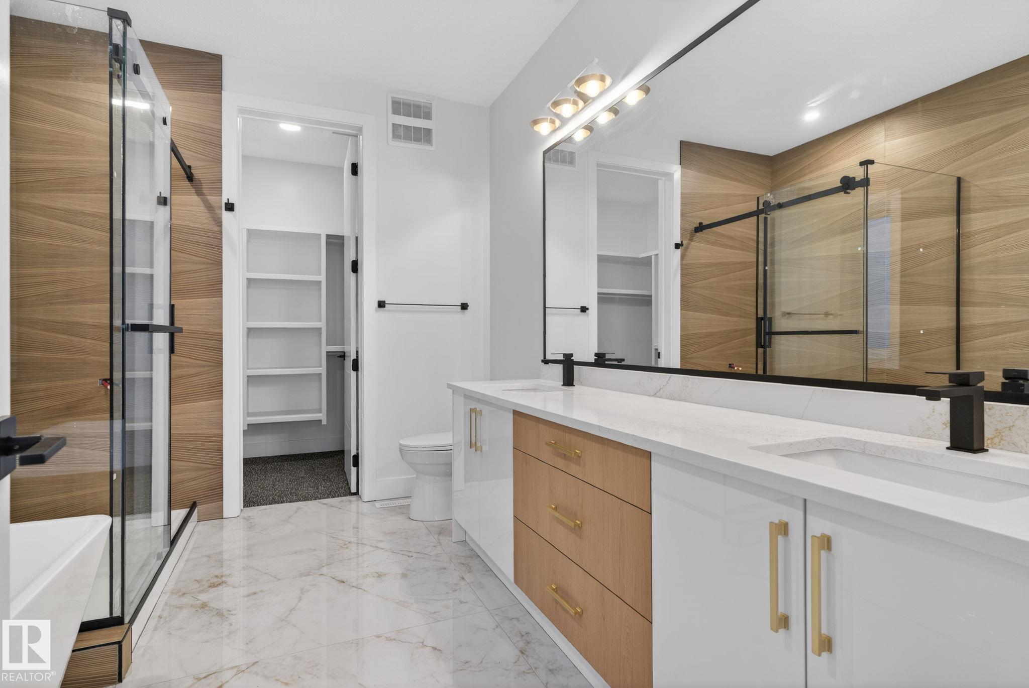 Fully upgraded brand new home that backs on to a walking trail right beside the pond. This 2300+sqft home features a main floor bed/den with window, closet and full bath. Mudroom will have a built-out bench with hooks which leads to a massive extended kitchen with built in appliances, double door fridge/freezer and huge island. Main floor is finished with an open to above living room with a fireplace feature wall. On the 2nd floor you have a bonus room with indented ceiling, a spacious primary bedroom with vaulted ceilings and a stunning 5-piece bathroom and walk-in closet. The 2nd bedroom also features a walk-in closet with it's own private en-suite. The 2nd level is finished with another full bedroom with walk-in closet and additional full bath, and laundry room with a sink. Tons of upgrades throughout like 8ft doors, feature walls, indent ceilings, strip lights, glass railing, etc.