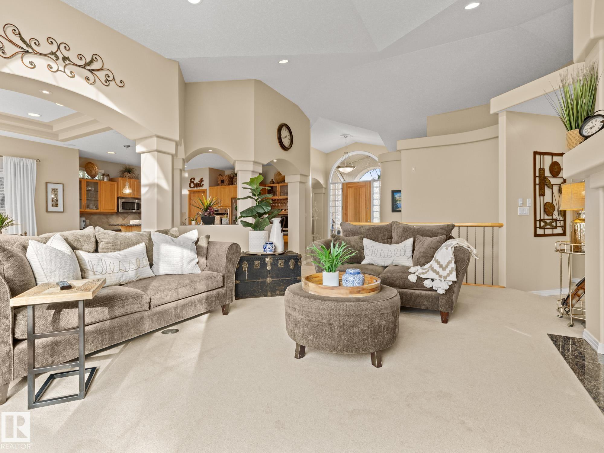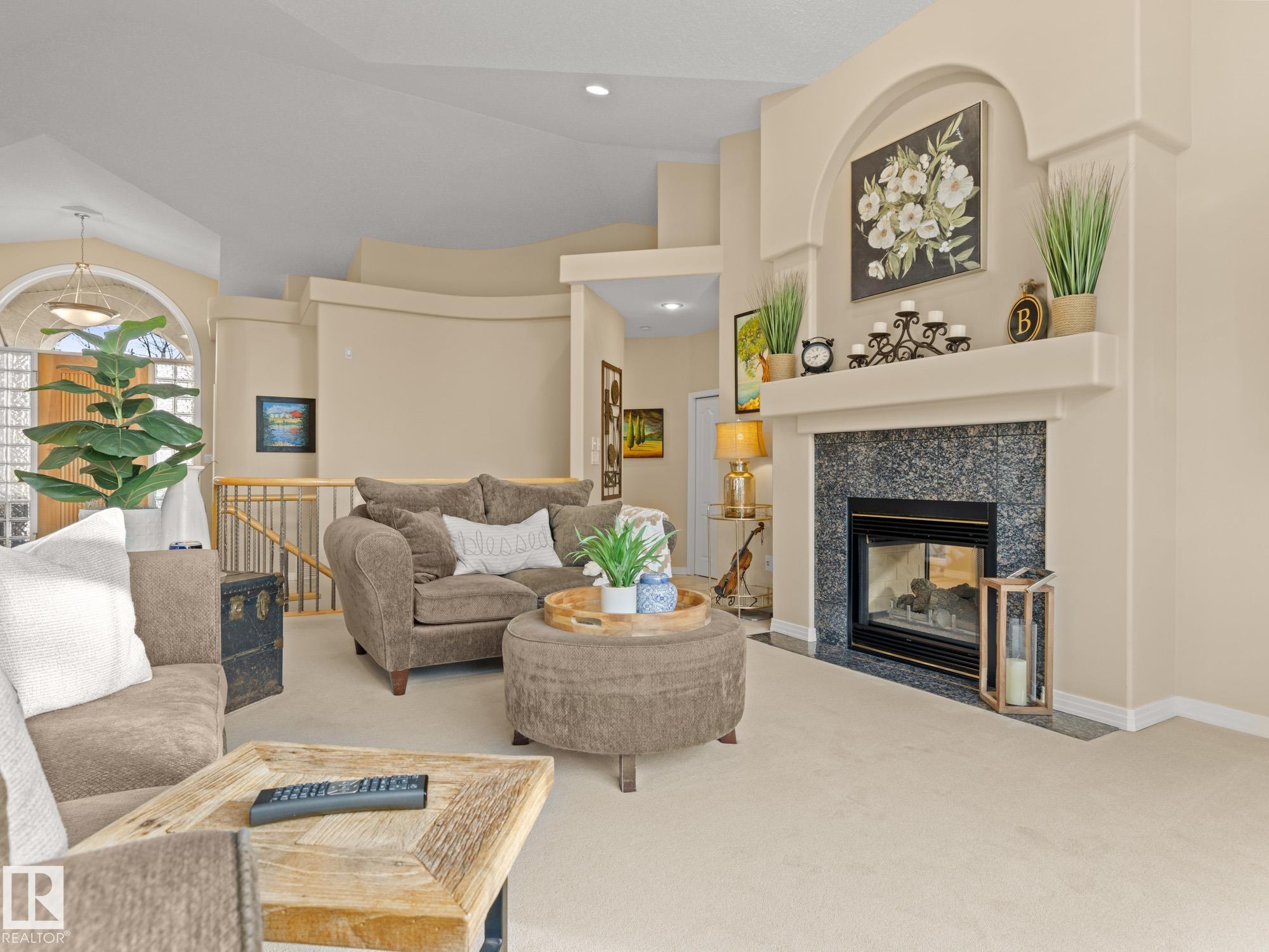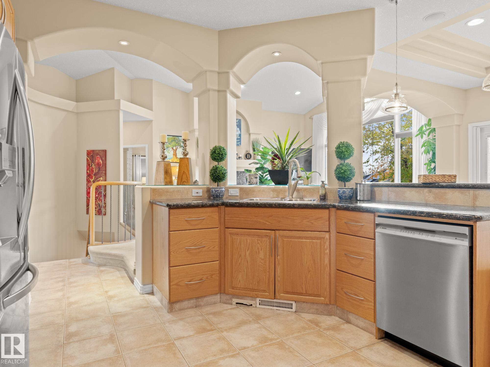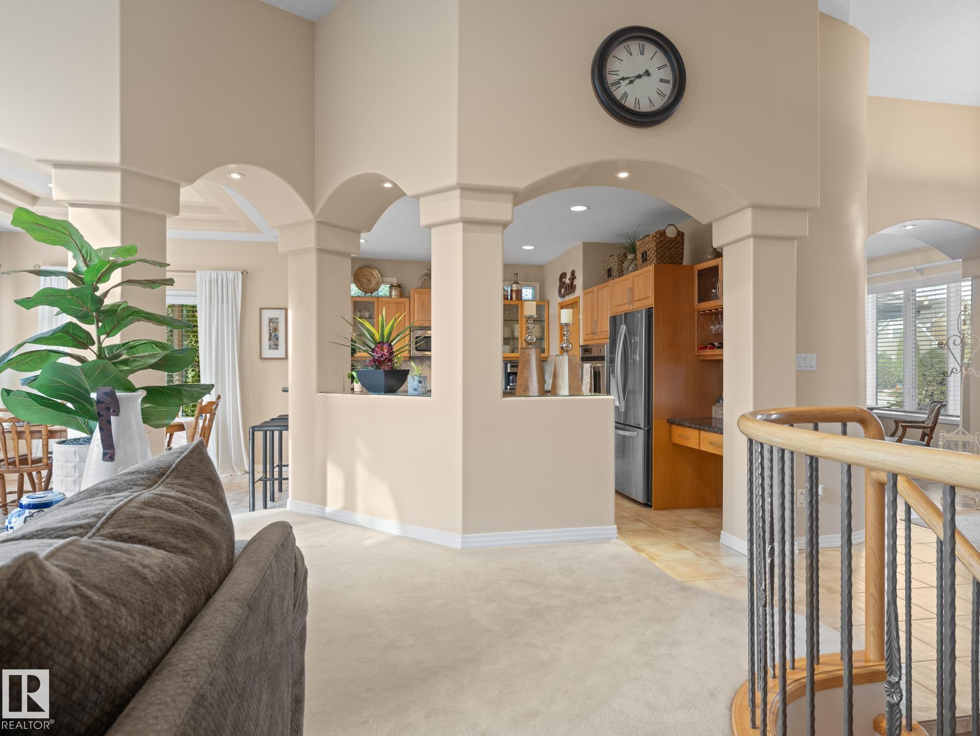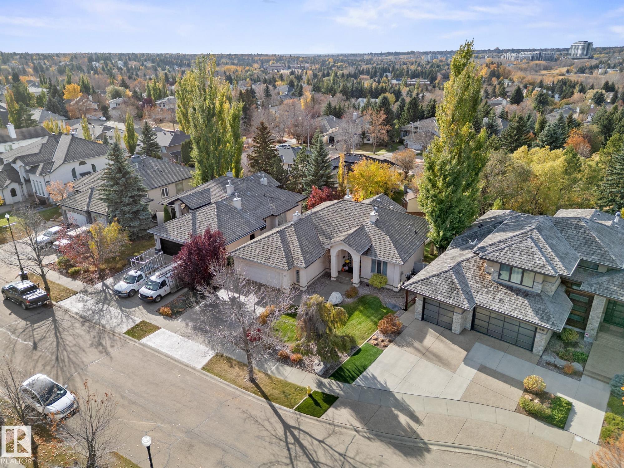 LOVELY FORMER SHOWHOME. This executive bungalow is located on one of St. Albert's most prestigious crescents with view of nature in back. Highly coveted location. 1750 sq. ft. on main floor with a fully developed walkout basement in total 3400 sq. ft. Your family will love this elegant home built by Design Innovations. Main floor has an open concept with kitchen overlooking living room and large eating nook. Warm oak cabinets with granite counter tops, large island, and walk-in pantry. Vaulted ceilings. Entertain in style with this large formal dining room. Primary bedroom is large with beautiful ensuite. Natural light throughout home. IN FLOOR HEATING on main flr tile. WALKOUT basement w. family room, 4 piece bathroom, and two large bedrooms and IN FLOOR HEATING. A/C ('14), Newer Furnace and 1 h.w. tank is newer ('20), Fresh Paint. Gorgeous landscaping complete with paving stones and flowers. Enjoy the view of nature from your main floor. Walk to RiverLot 56 for X-skiing, Botanical Gardens, Golf.