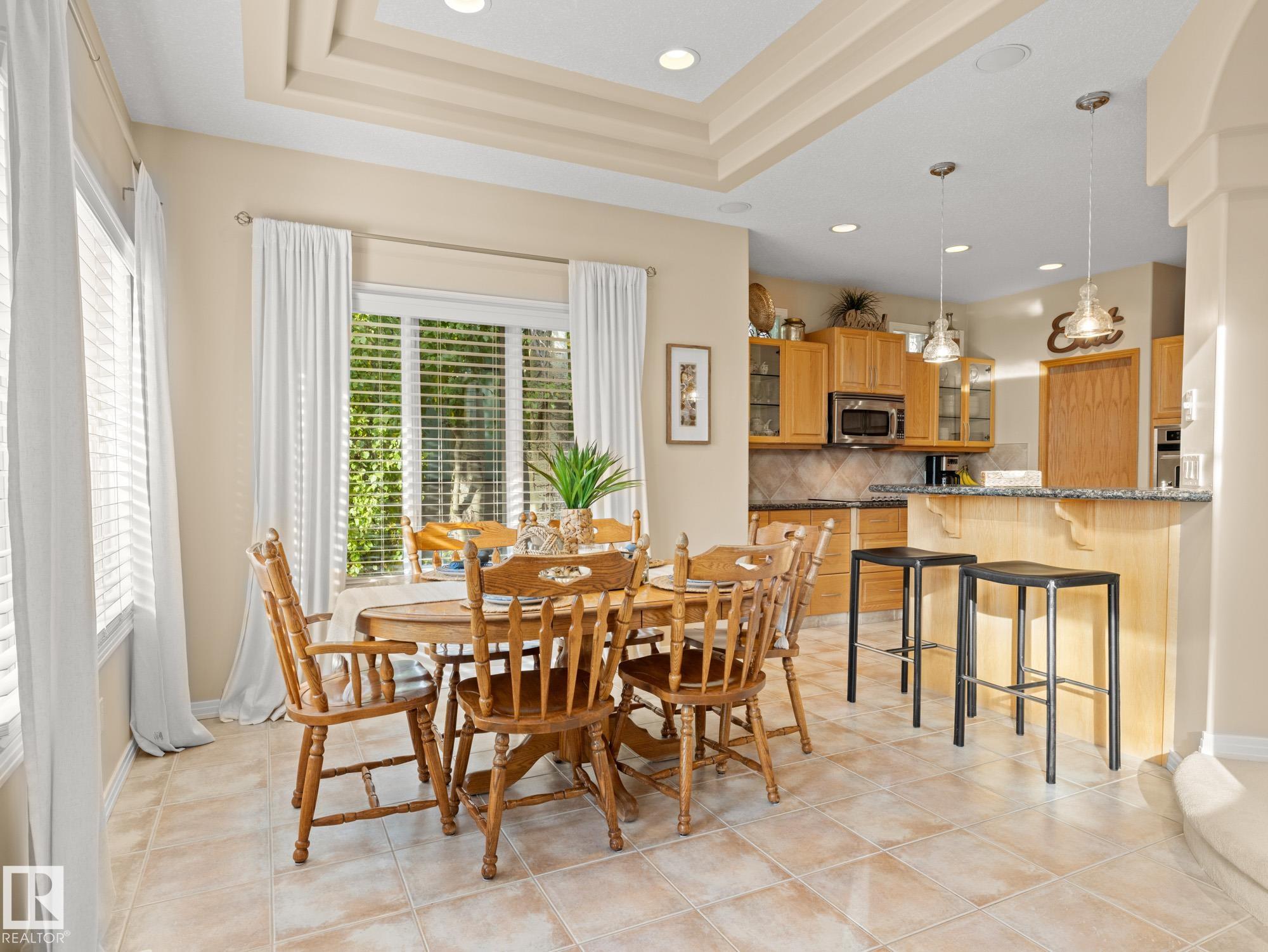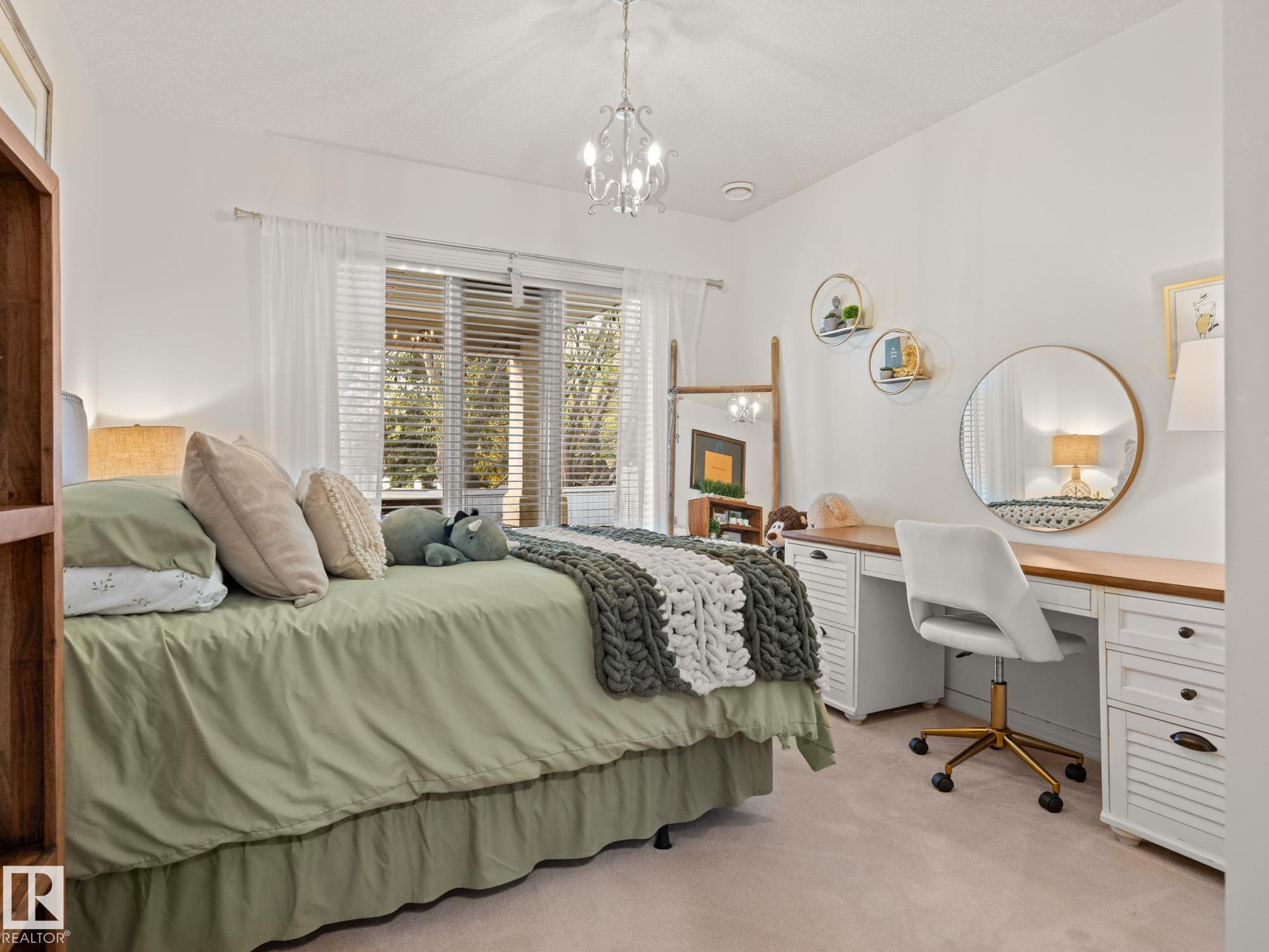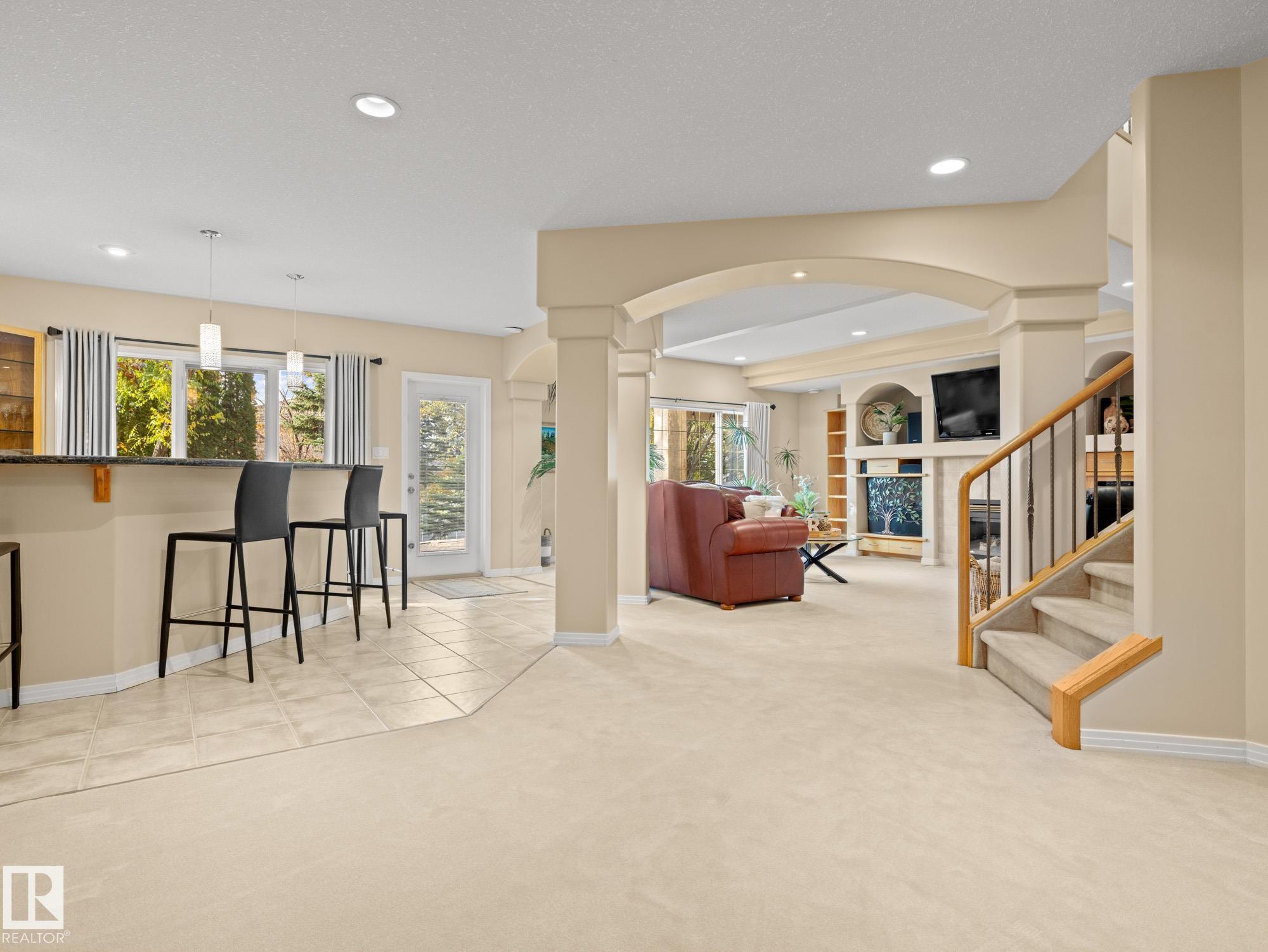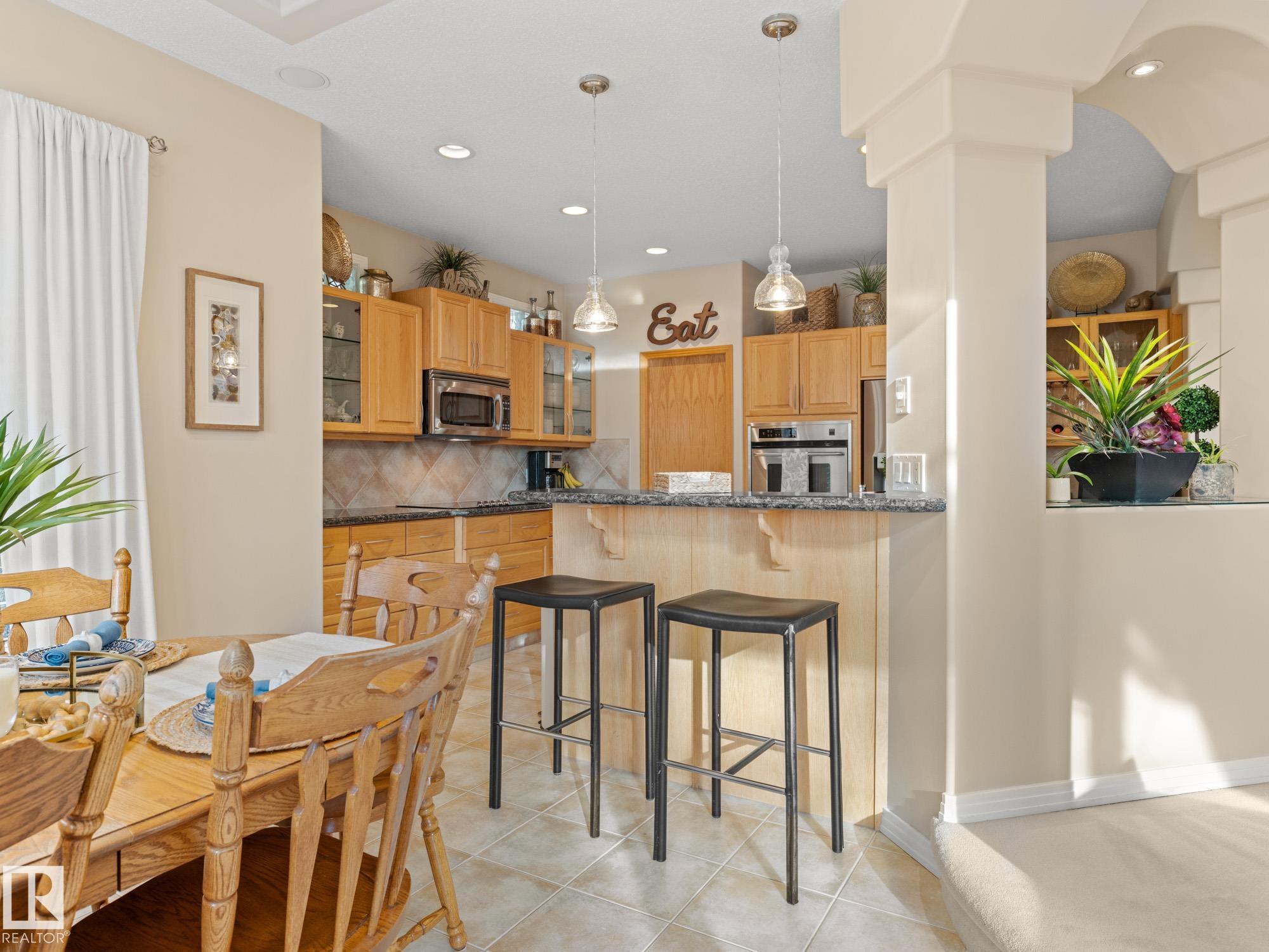 LOVELY FORMER SHOWHOME. This executive bungalow is located on one of St. Albert's most prestigious crescents with view of nature in back. Highly coveted location. 1750 sq. ft. on main floor with a fully developed walkout basement in total 3400 sq. ft. Your family will love this elegant home built by Design Innovations. Main floor has an open concept with kitchen overlooking living room and large eating nook. Warm oak cabinets with granite counter tops, large island, and walk-in pantry. Vaulted ceilings. Entertain in style with this large formal dining room. Primary bedroom is large with beautiful ensuite. Natural light throughout home. IN FLOOR HEATING on main flr tile. WALKOUT basement w. family room, 4 piece bathroom, and two large bedrooms and IN FLOOR HEATING. A/C ('14), Newer Furnace and 1 h.w. tank is newer ('20), Fresh Paint. Gorgeous landscaping complete with paving stones and flowers. Enjoy the view of nature from your main floor. Walk to RiverLot 56 for X-skiing, Botanical Gardens, Golf.