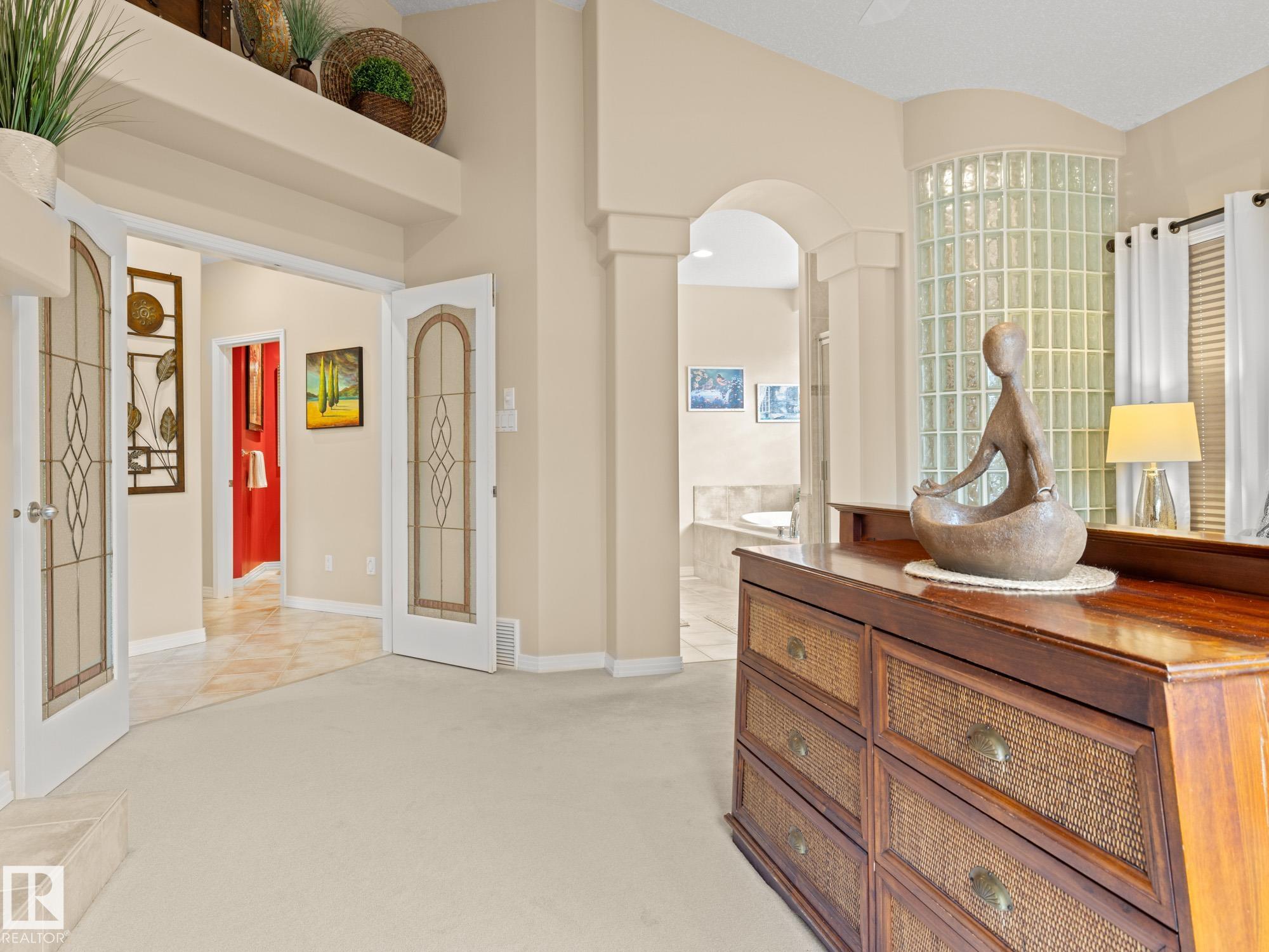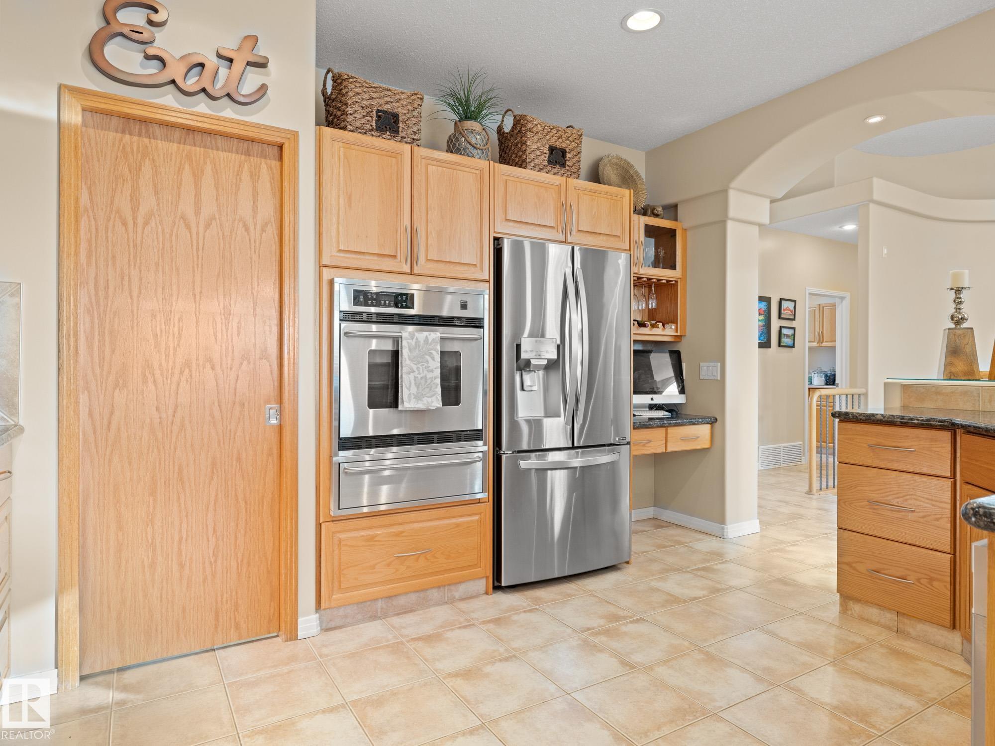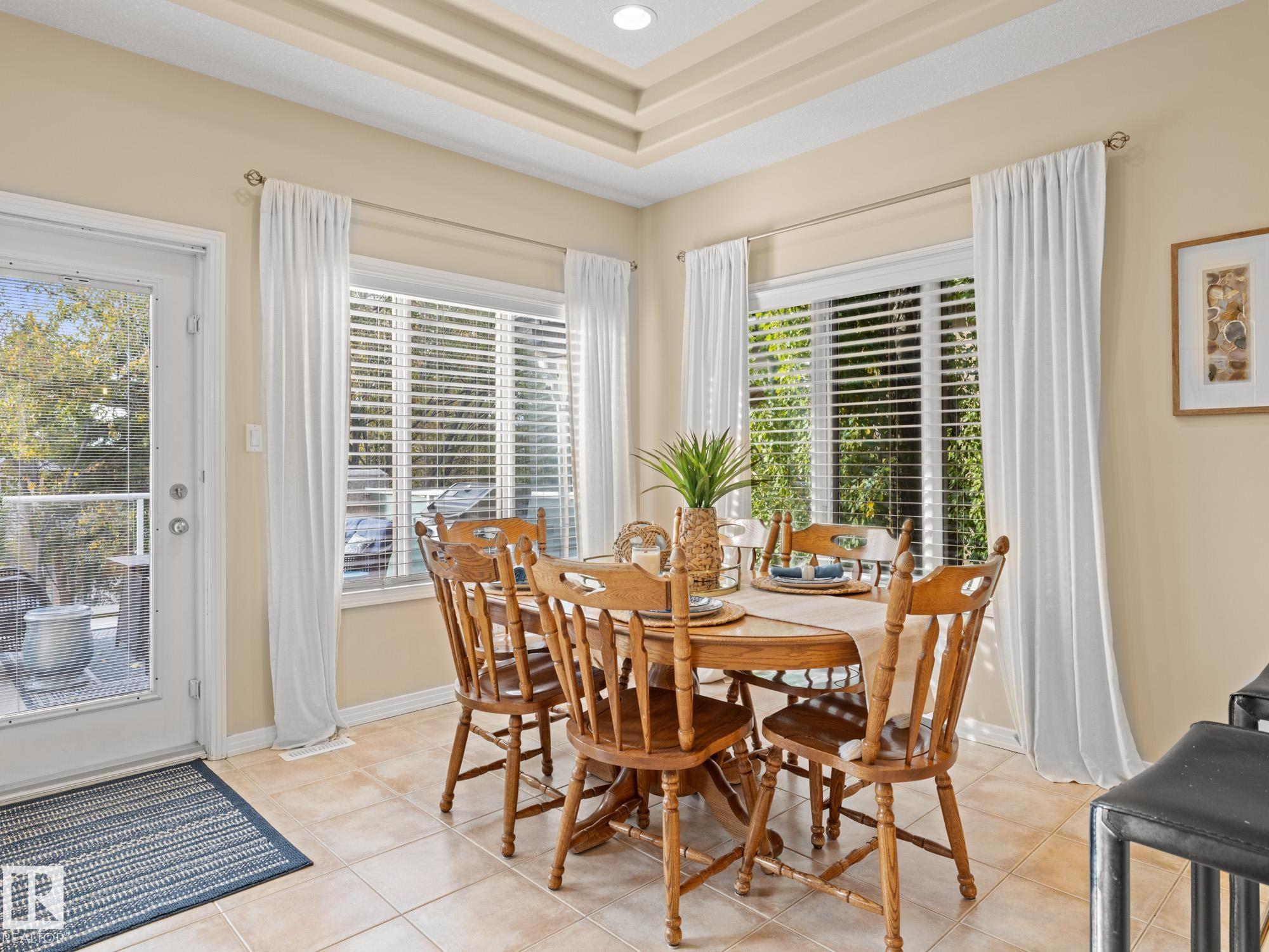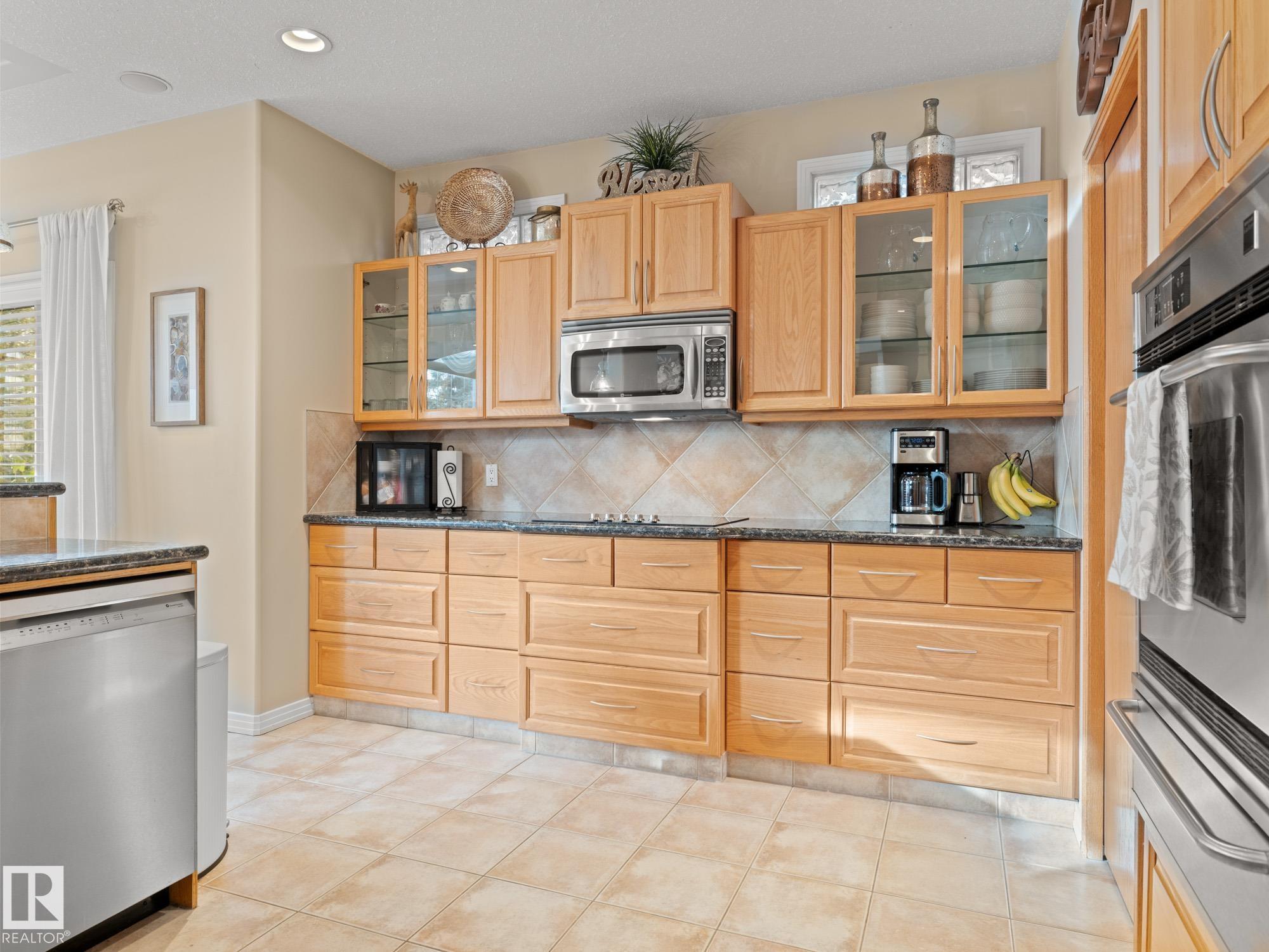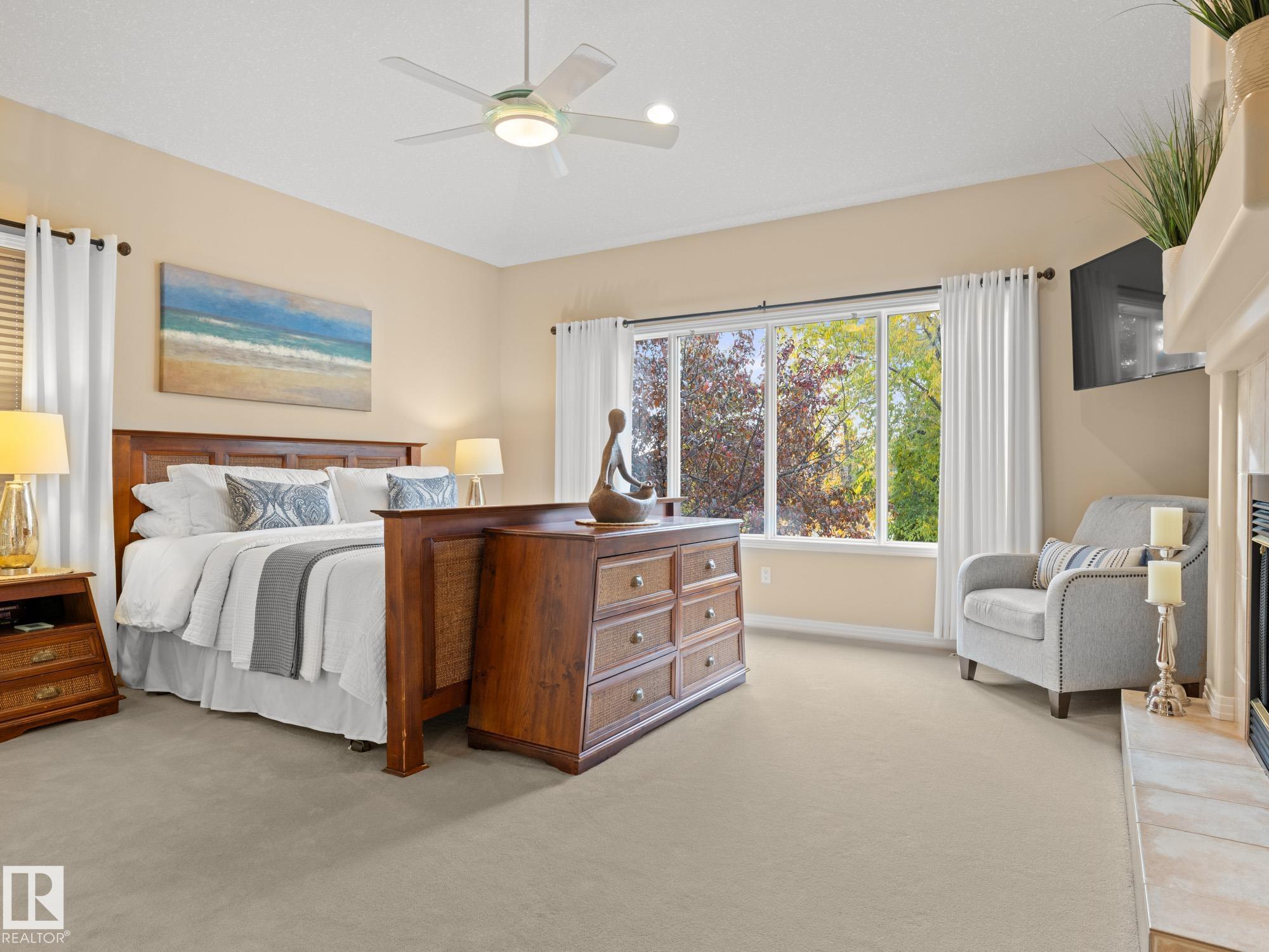 LOVELY FORMER SHOWHOME. This executive bungalow is located on one of St. Albert's most prestigious crescents with view of nature in back. Highly coveted location. 1750 sq. ft. on main floor with a fully developed walkout basement in total 3400 sq. ft. Your family will love this elegant home built by Design Innovations. Main floor has an open concept with kitchen overlooking living room and large eating nook. Warm oak cabinets with granite counter tops, large island, and walk-in pantry. Vaulted ceilings. Entertain in style with this large formal dining room. Primary bedroom is large with beautiful ensuite. Natural light throughout home. IN FLOOR HEATING on main flr tile. WALKOUT basement w. family room, 4 piece bathroom, and two large bedrooms and IN FLOOR HEATING. A/C ('14), Newer Furnace and 1 h.w. tank is newer ('20), Fresh Paint. Gorgeous landscaping complete with paving stones and flowers. Enjoy the view of nature from your main floor. Walk to RiverLot 56 for X-skiing, Botanical Gardens, Golf.