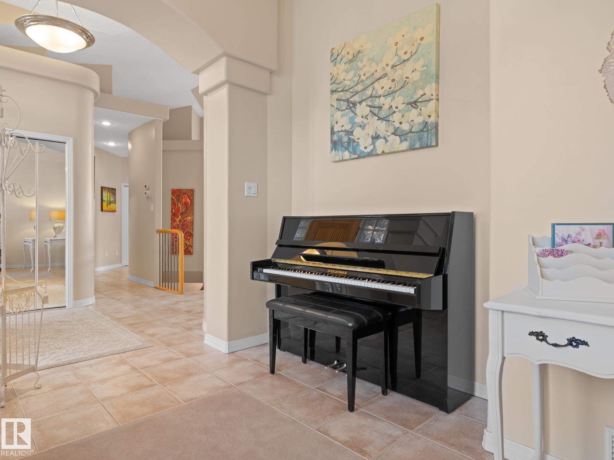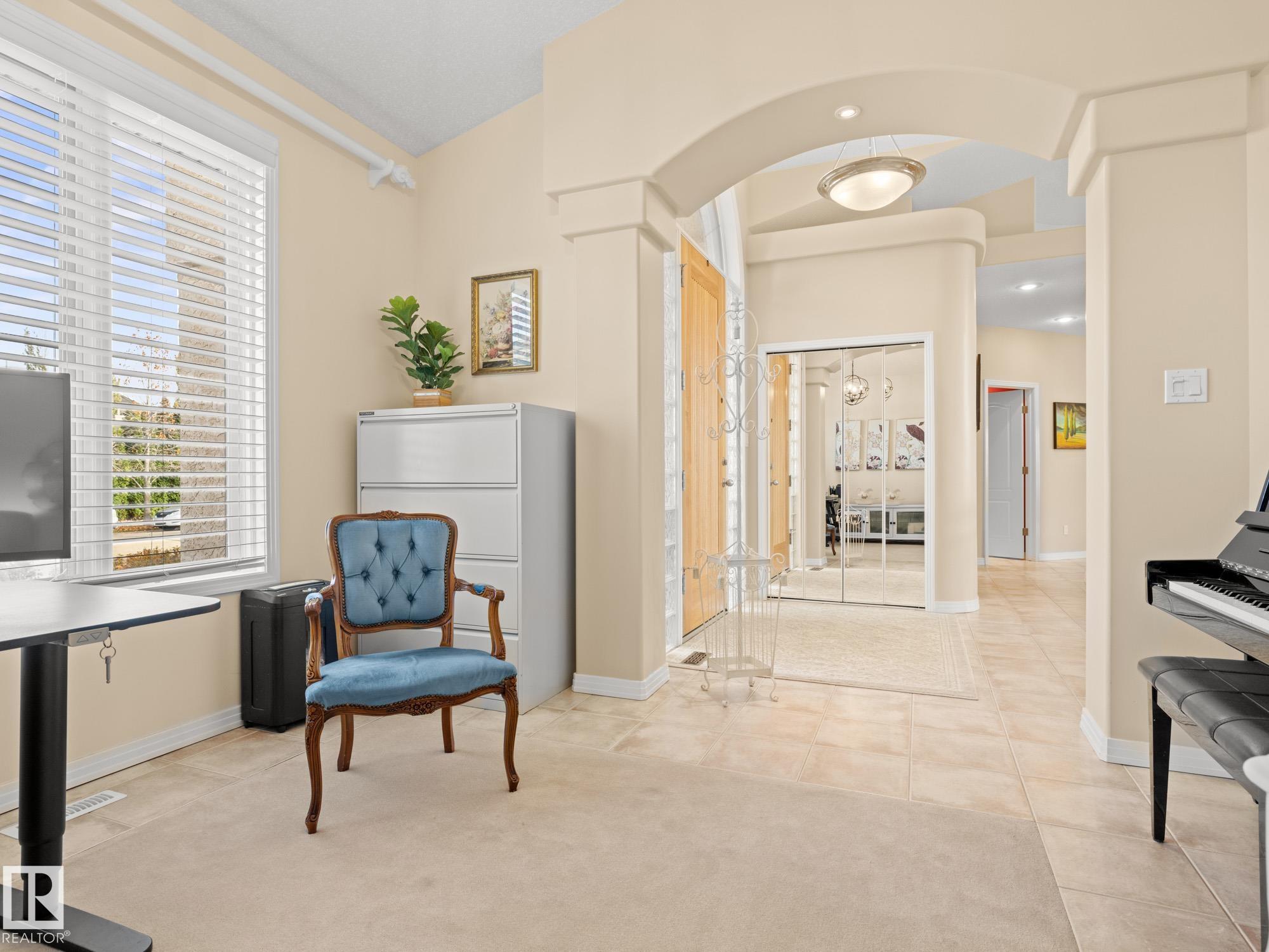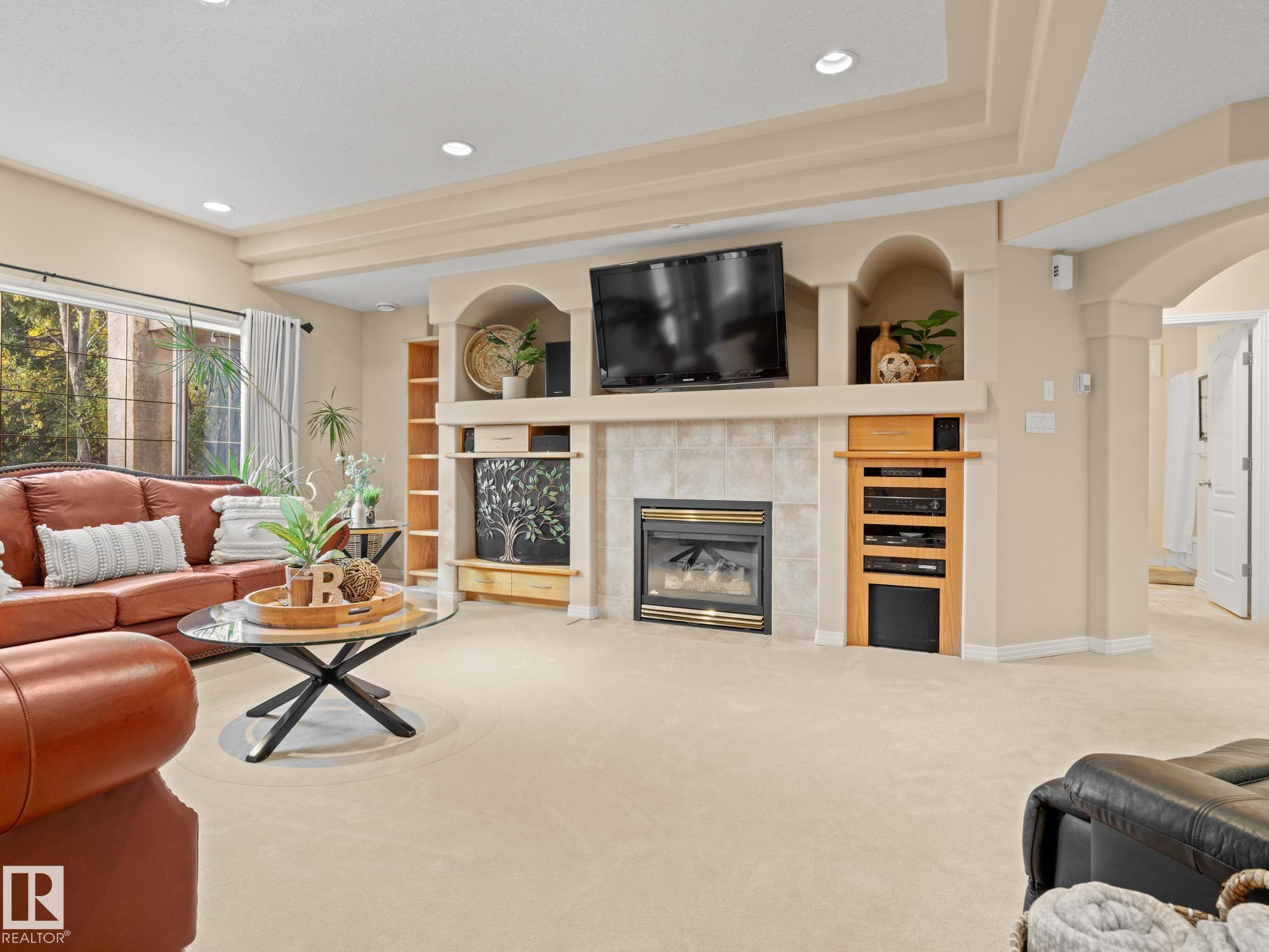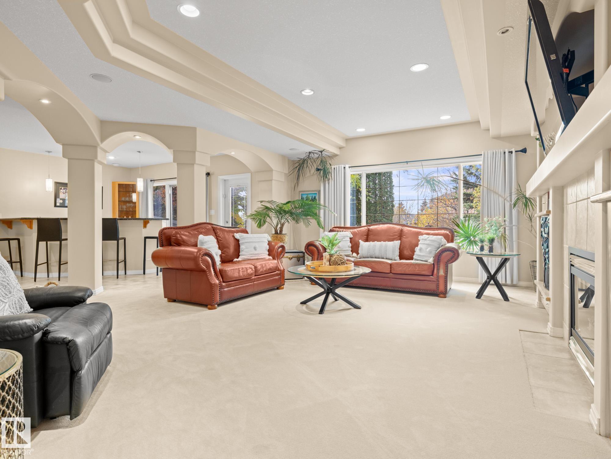 LOVELY FORMER SHOWHOME. This executive bungalow is located on one of St. Albert's most prestigious crescents with view of nature in back. Highly coveted location. 1750 sq. ft. on main floor with a fully developed walkout basement in total 3400 sq. ft. Your family will love this elegant home built by Design Innovations. Main floor has an open concept with kitchen overlooking living room and large eating nook. Warm oak cabinets with granite counter tops, large island, and walk-in pantry. Vaulted ceilings. Entertain in style with this large formal dining room. Primary bedroom is large with beautiful ensuite. Natural light throughout home. IN FLOOR HEATING on main flr tile. WALKOUT basement w. family room, 4 piece bathroom, and two large bedrooms and IN FLOOR HEATING. A/C ('14), Newer Furnace and 1 h.w. tank is newer ('20), Fresh Paint. Gorgeous landscaping complete with paving stones and flowers. Enjoy the view of nature from your main floor. Walk to RiverLot 56 for X-skiing, Botanical Gardens, Golf.