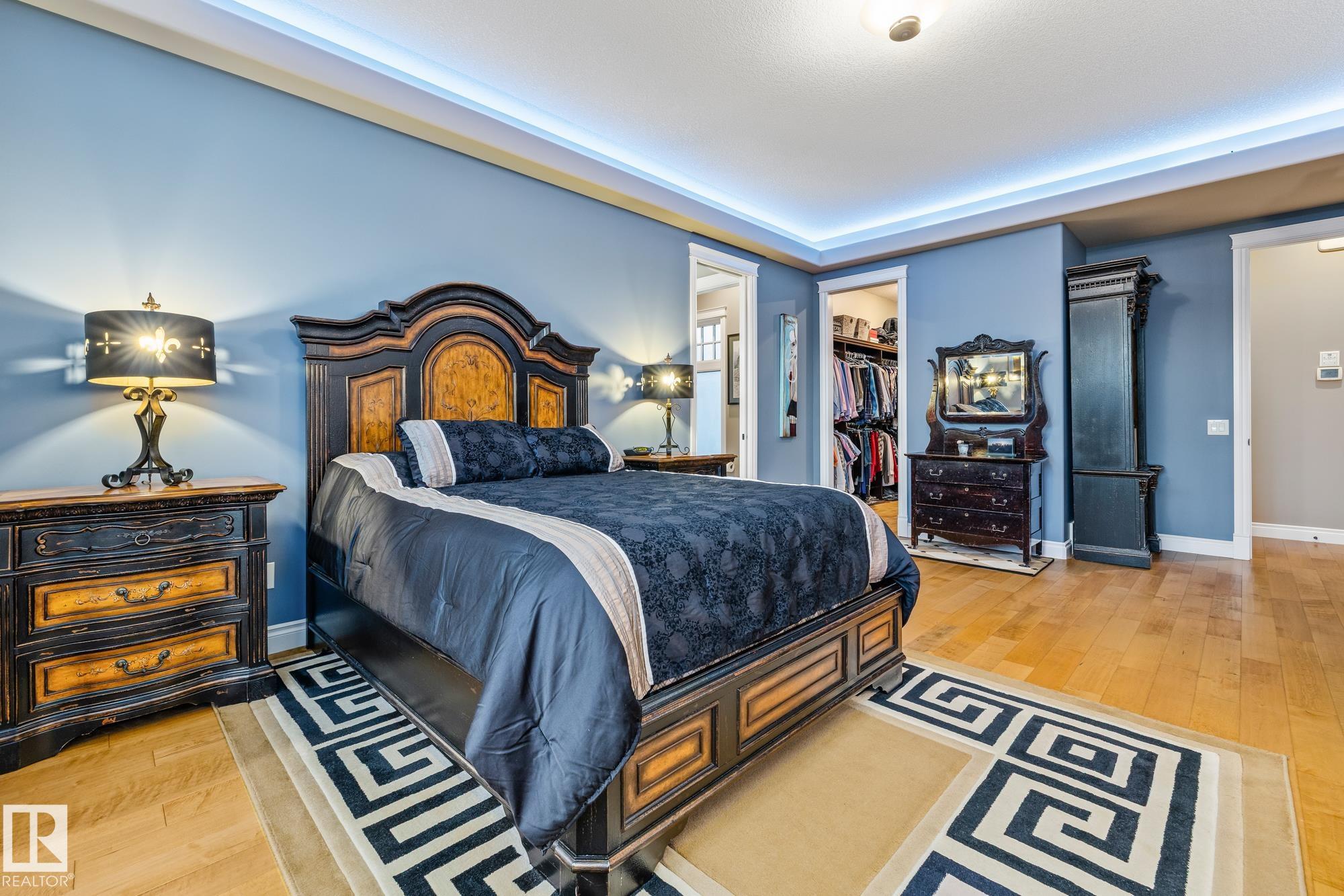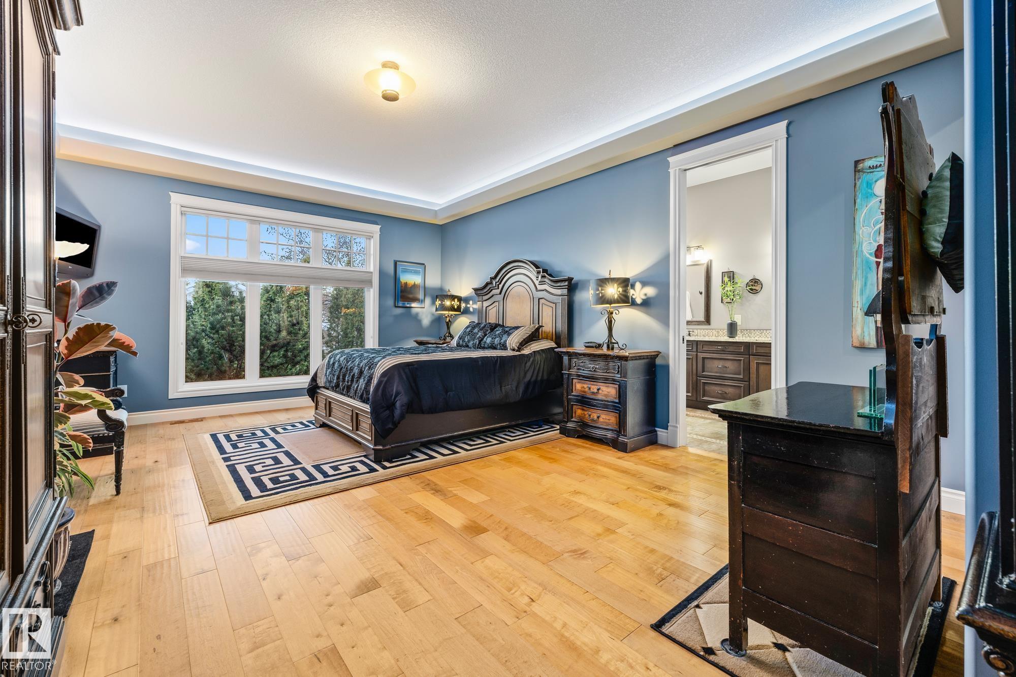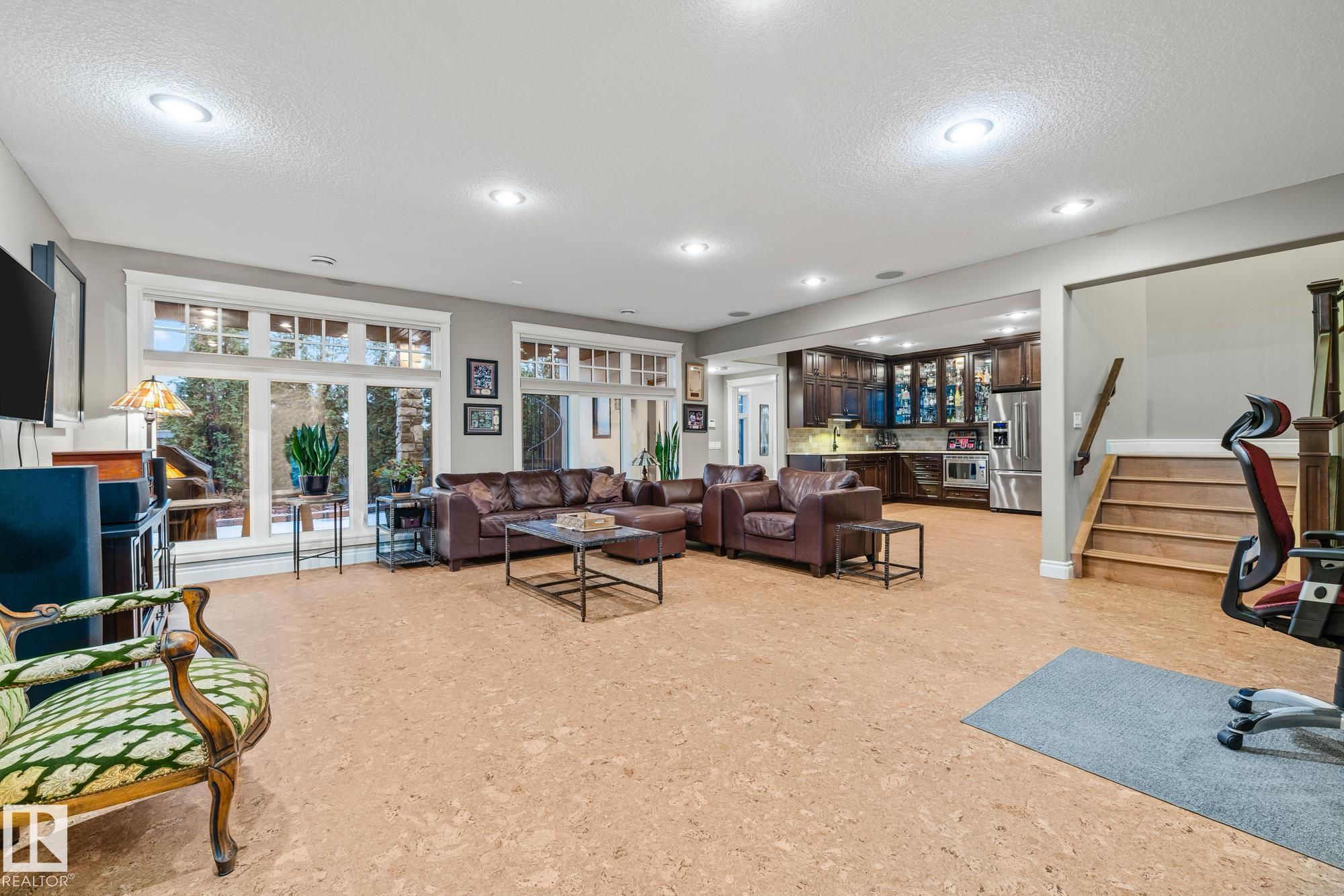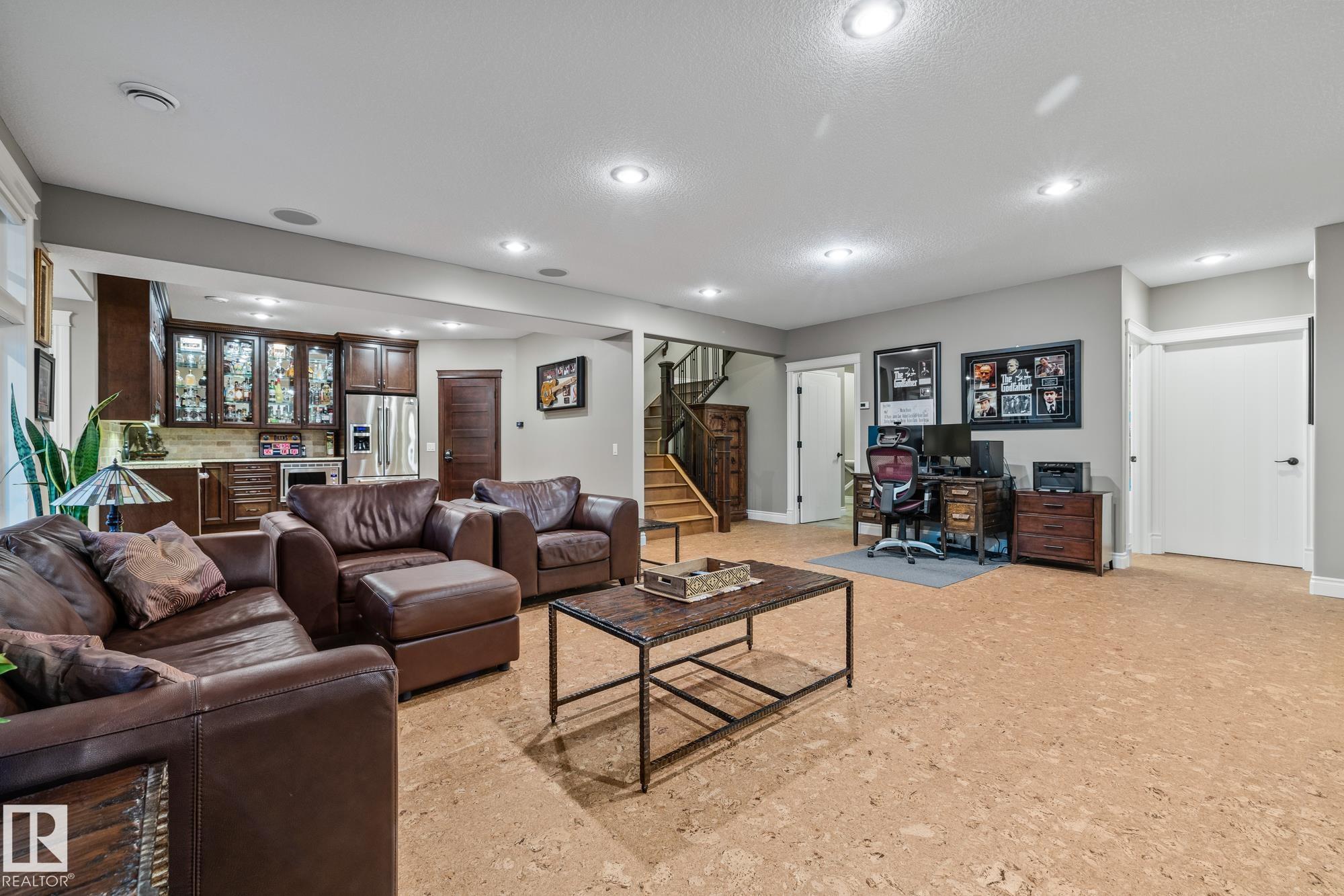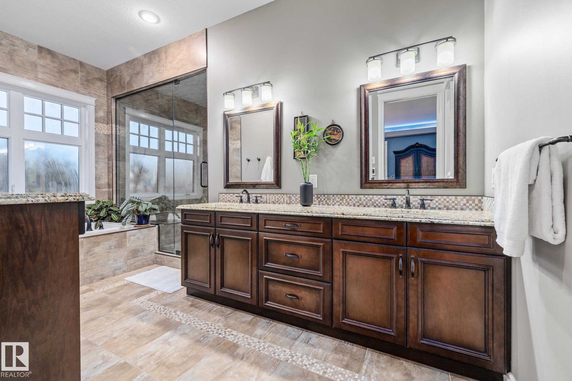 Experience unmatched luxury in this executive custom-built walkout bungalow in Kingswood. With over 4,440 sq ft of living space, this home offers 10 ft ceilings, travertine tile, scraped hardwood, coffered detailing and a full stone fireplace that anchors the main living area. The chef's kitchen features JennAir appliances, granite counters, a huge island, custom cabinetry, walk-through pantry that leads to an oversized mudroom with custom lockers and den on the main. The private primary suite includes a large walk-in closet and a spa-inspired ensuite with heated floors, dual sinks, jetted tub and a walk-in double steam shower. The walkout basement is built for entertaining with heated floors, wet bar, 4 large bedrooms, two full baths, a spacious laundry room and a temperature-controlled walk-in wine cellar. Outside, enjoy a low maintenance landscaped yard with privacy trees, stone patio, composite deck. A heated oversized garage with a lift accommodates 3 indoor stalls. An exceptional Kingswood home.