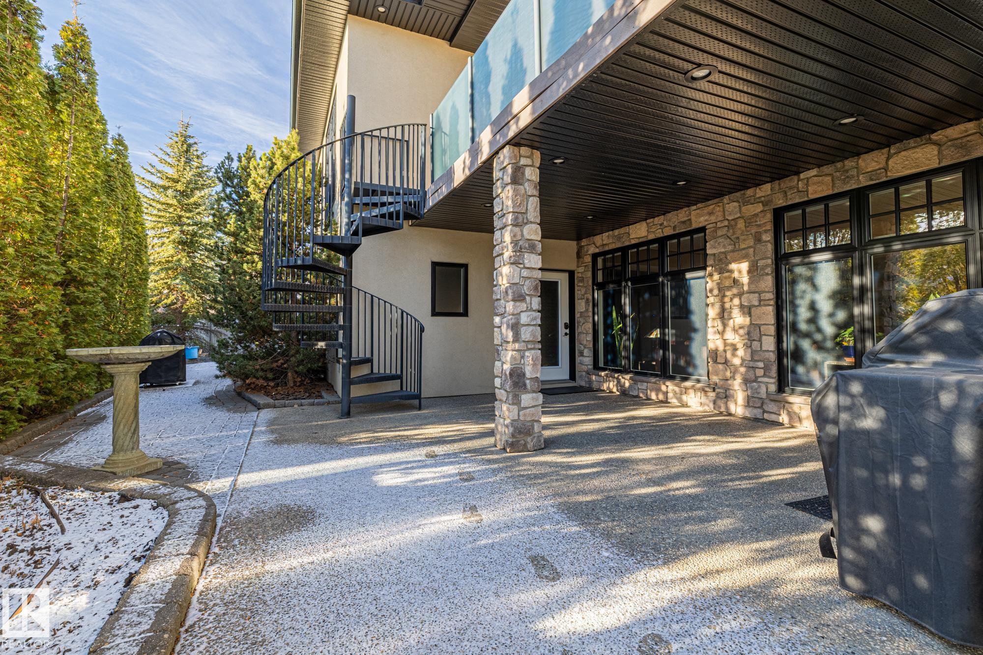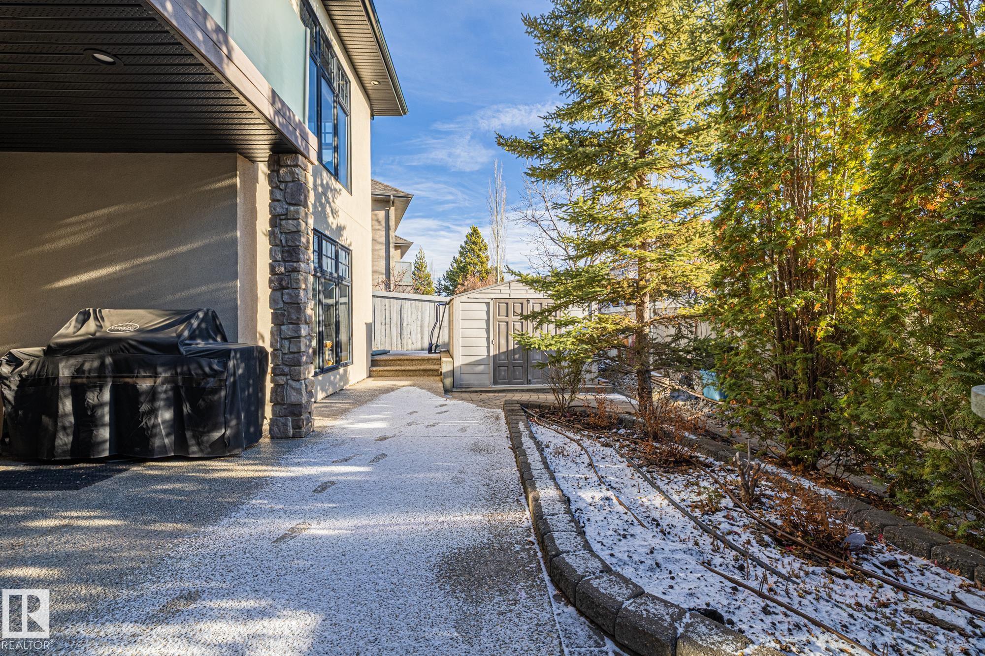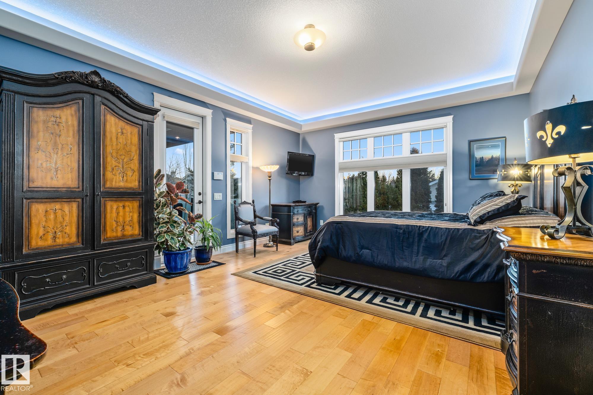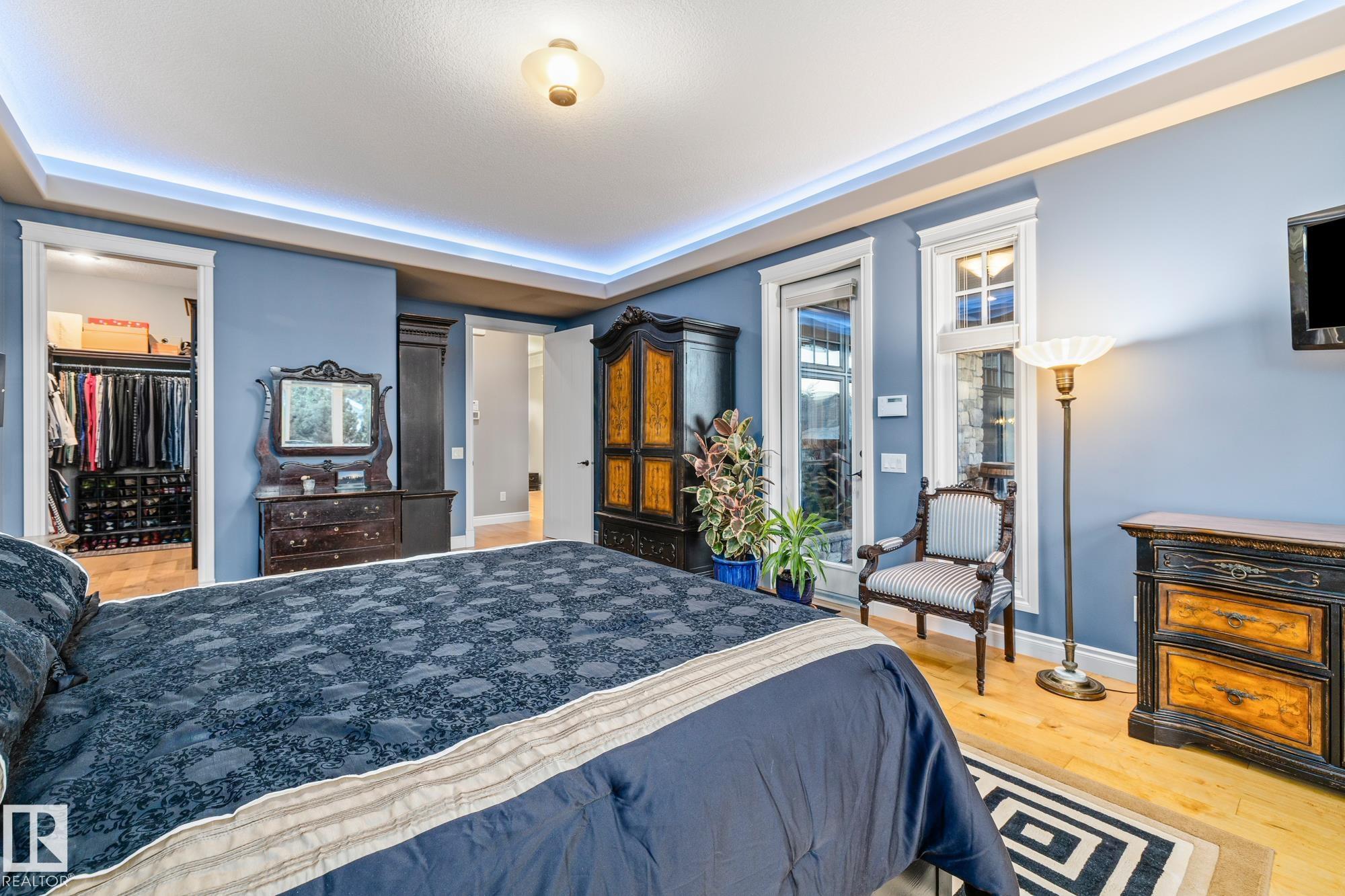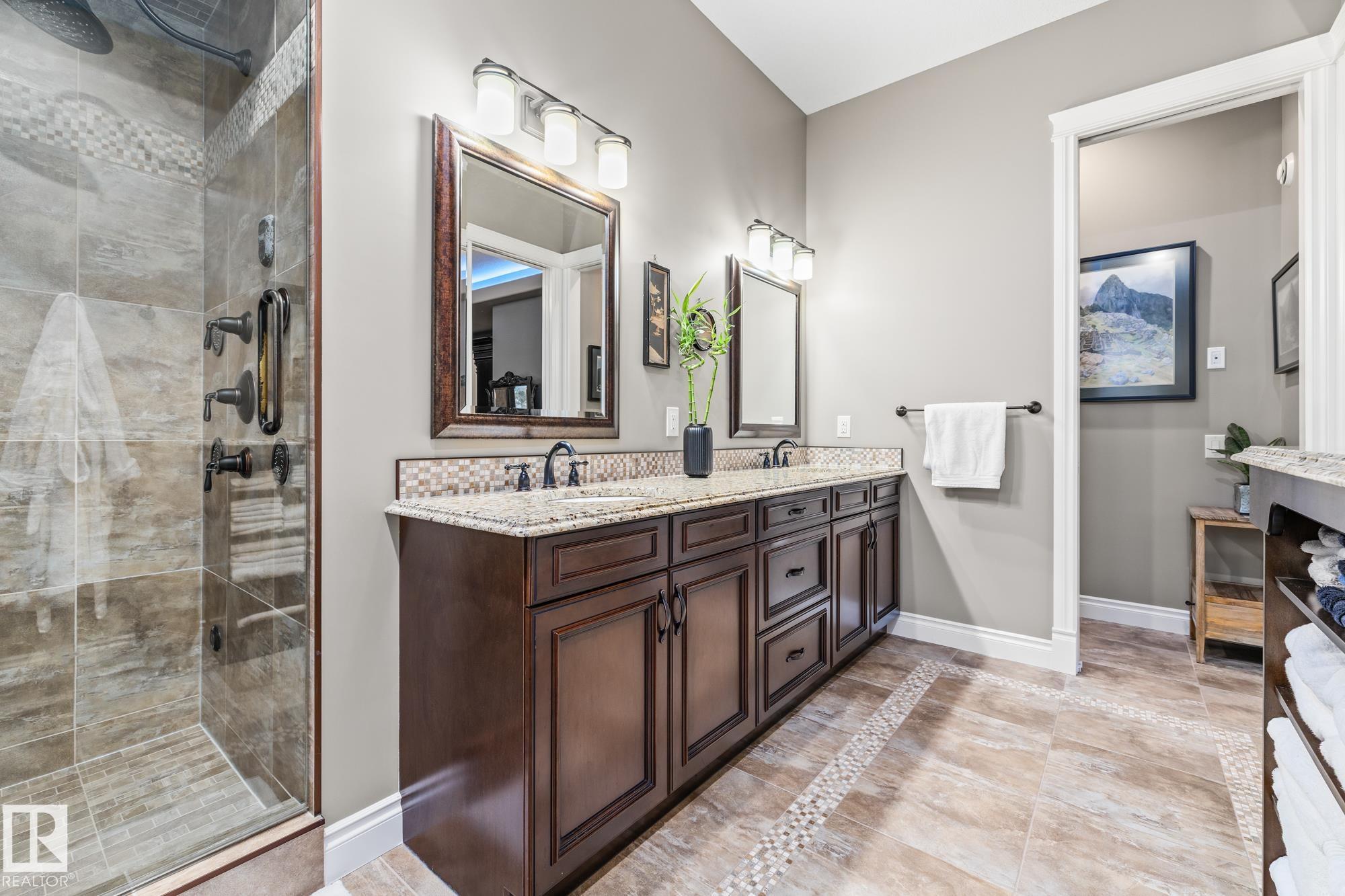 Experience unmatched luxury in this executive custom-built walkout bungalow in Kingswood. With over 4,440 sq ft of living space, this home offers 10 ft ceilings, travertine tile, scraped hardwood, coffered detailing and a full stone fireplace that anchors the main living area. The chef's kitchen features JennAir appliances, granite counters, a huge island, custom cabinetry, walk-through pantry that leads to an oversized mudroom with custom lockers and den on the main. The private primary suite includes a large walk-in closet and a spa-inspired ensuite with heated floors, dual sinks, jetted tub and a walk-in double steam shower. The walkout basement is built for entertaining with heated floors, wet bar, 4 large bedrooms, two full baths, a spacious laundry room and a temperature-controlled walk-in wine cellar. Outside, enjoy a low maintenance landscaped yard with privacy trees, stone patio, composite deck. A heated oversized garage with a lift accommodates 3 indoor stalls. An exceptional Kingswood home.
