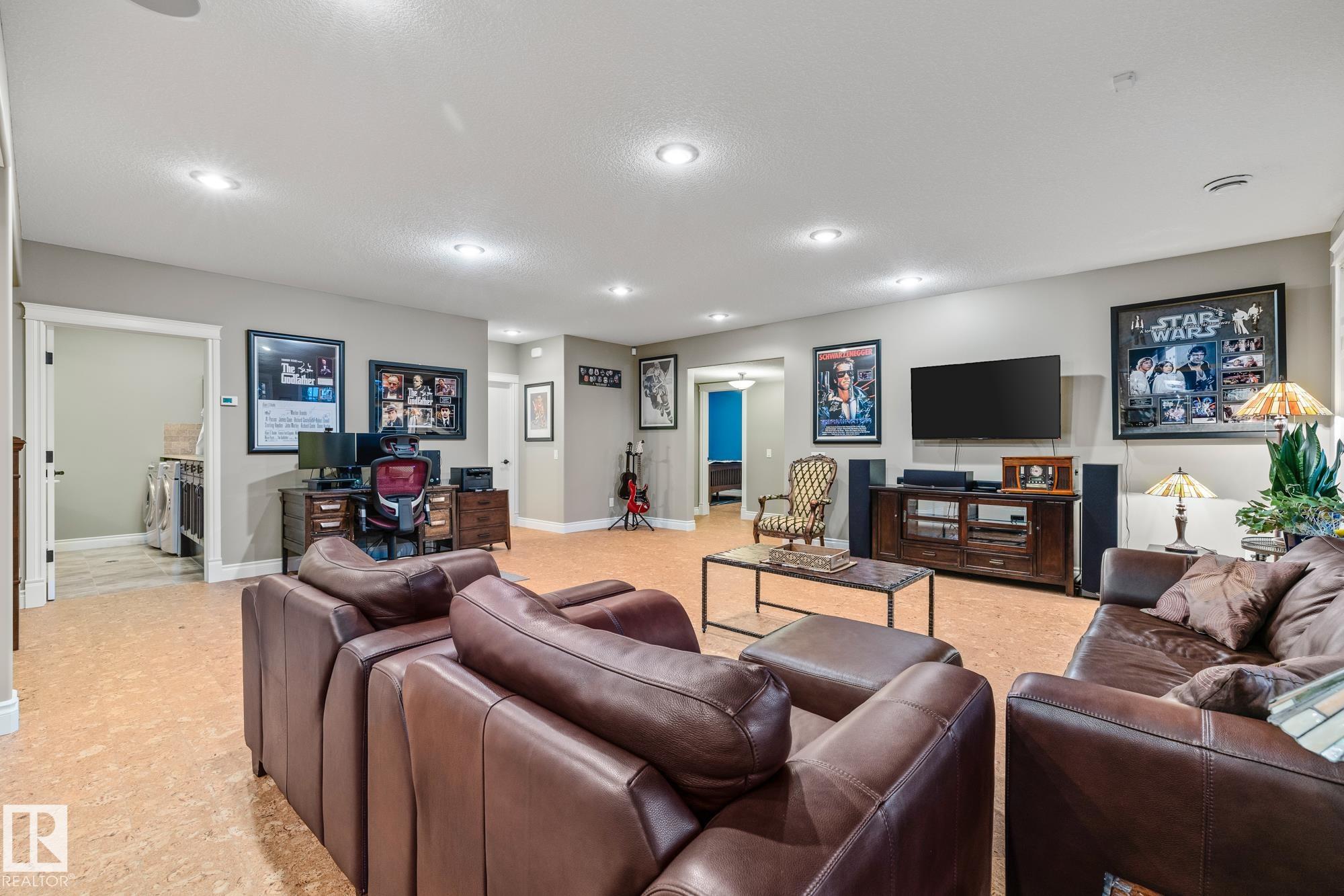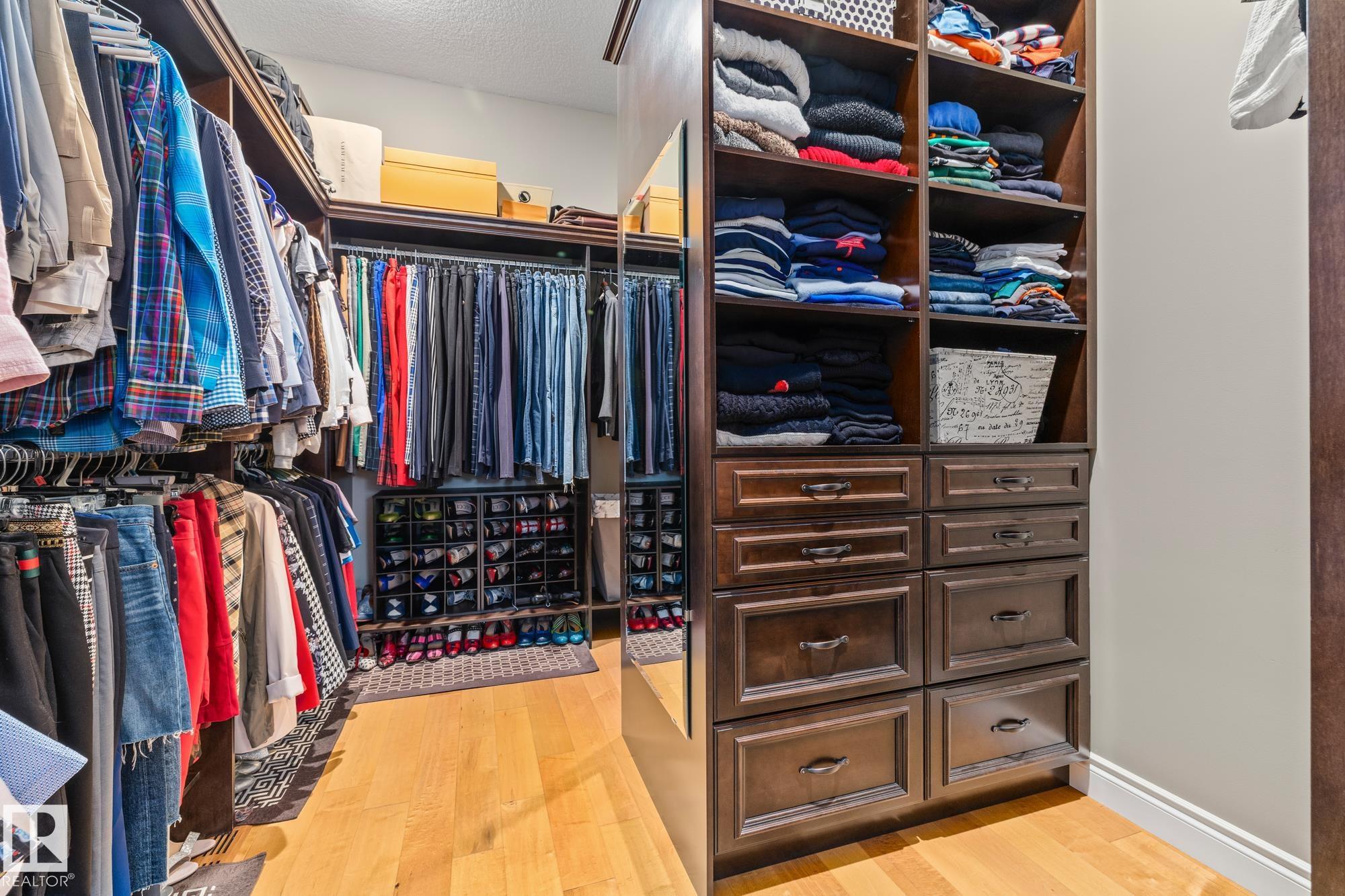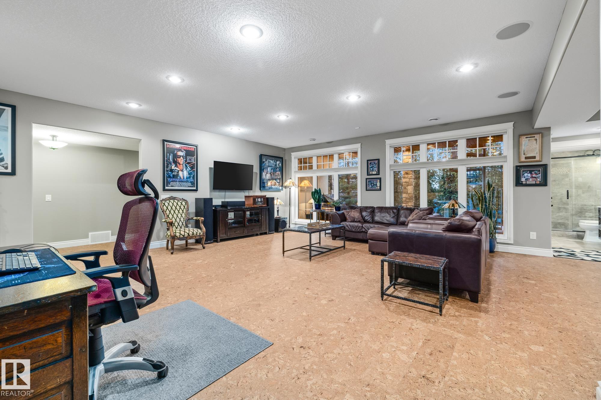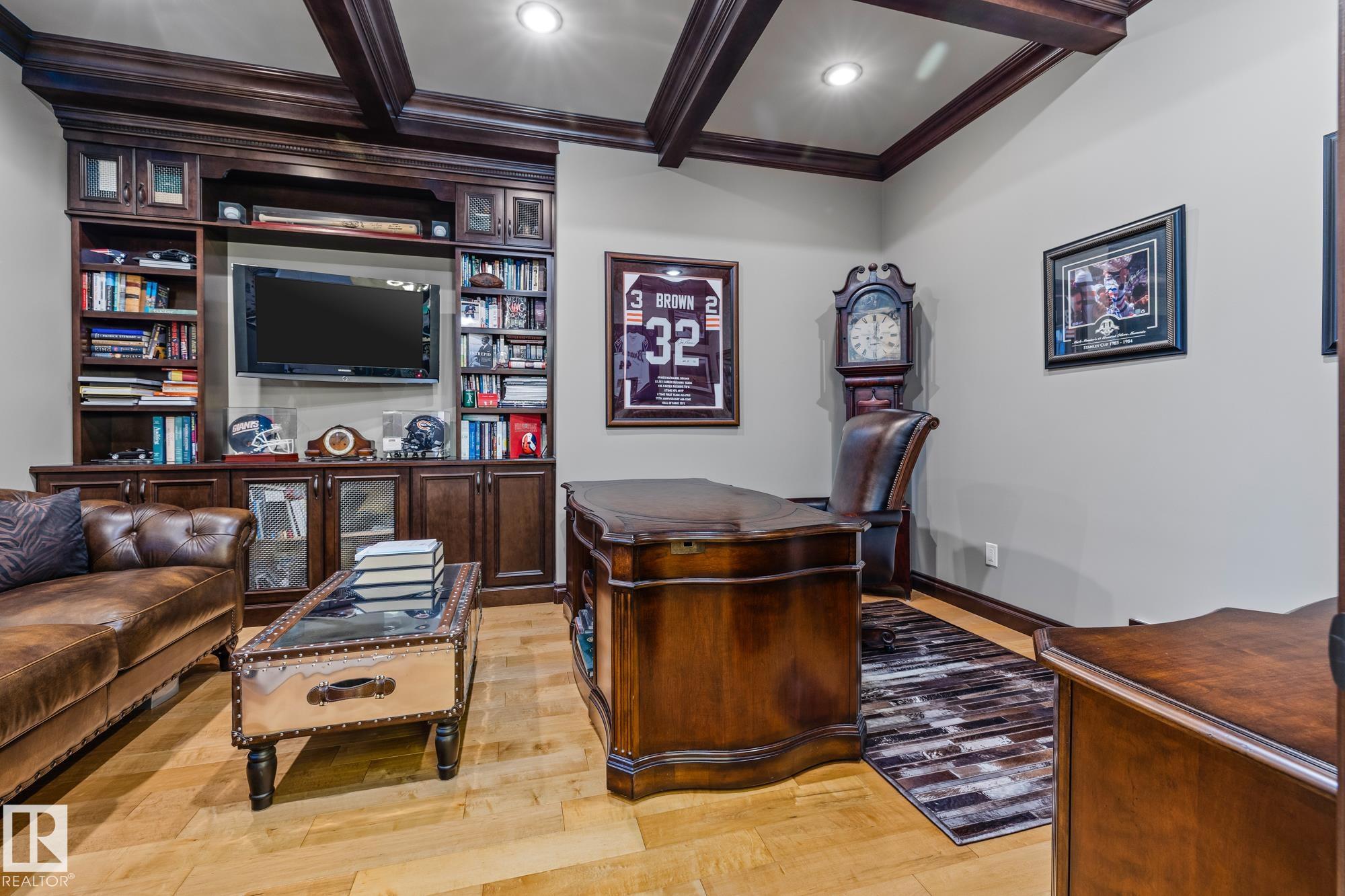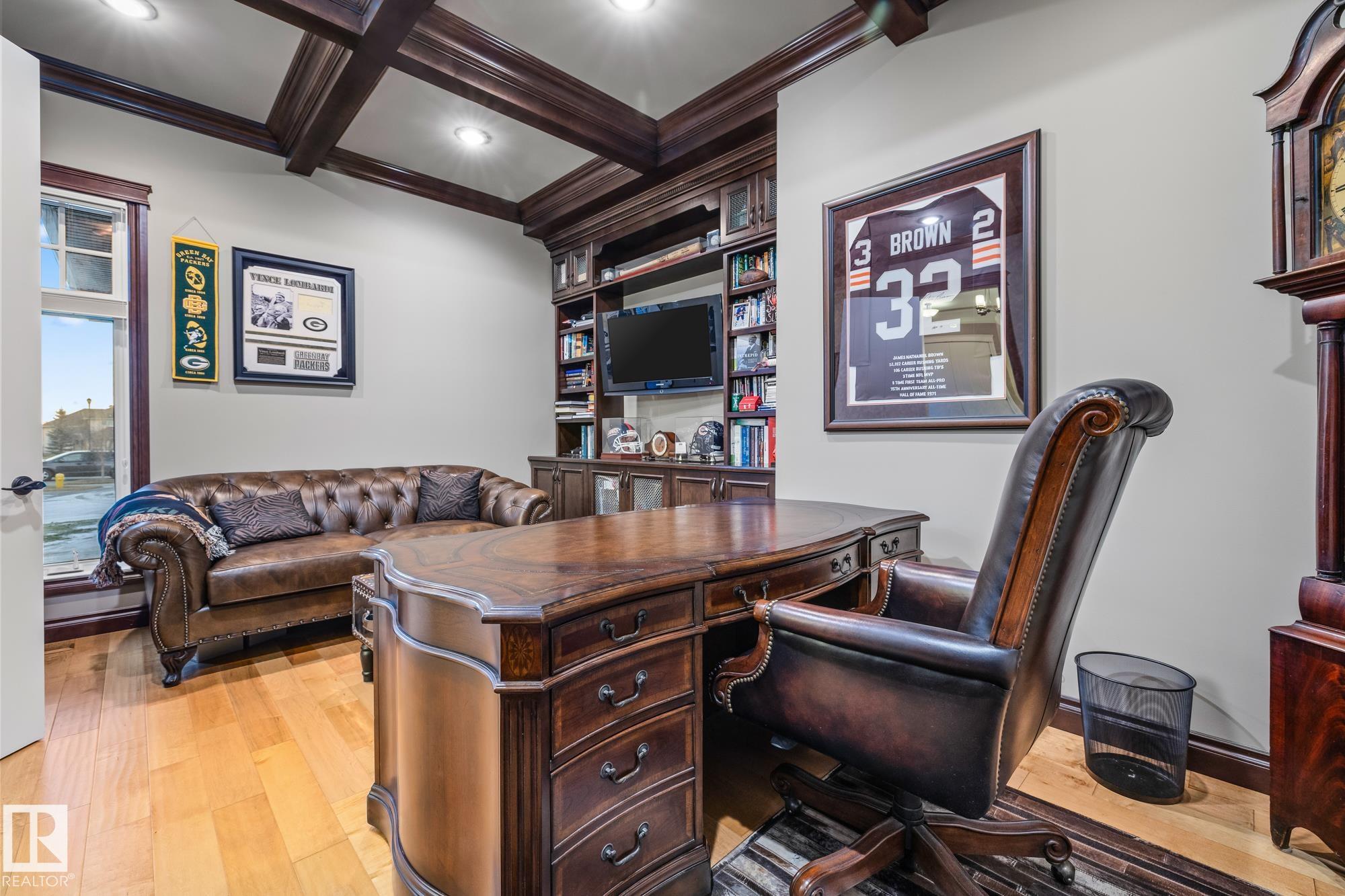 Experience unmatched luxury in this executive custom-built walkout bungalow in Kingswood. With over 4,440 sq ft of living space, this home offers 10 ft ceilings, travertine tile, scraped hardwood, coffered detailing and a full stone fireplace that anchors the main living area. The chef's kitchen features JennAir appliances, granite counters, a huge island, custom cabinetry, walk-through pantry that leads to an oversized mudroom with custom lockers and den on the main. The private primary suite includes a large walk-in closet and a spa-inspired ensuite with heated floors, dual sinks, jetted tub and a walk-in double steam shower. The walkout basement is built for entertaining with heated floors, wet bar, 4 large bedrooms, two full baths, a spacious laundry room and a temperature-controlled walk-in wine cellar. Outside, enjoy a low maintenance landscaped yard with privacy trees, stone patio, composite deck. A heated oversized garage with a lift accommodates 3 indoor stalls. An exceptional Kingswood home.